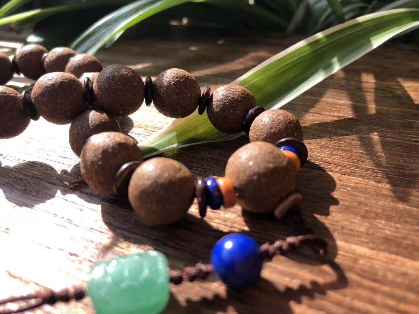 此款手持主珠用十几种纯天然香材,以纯手工精制而成,配方有檀香、丁香、茅香、木香、藿香、白芷等。