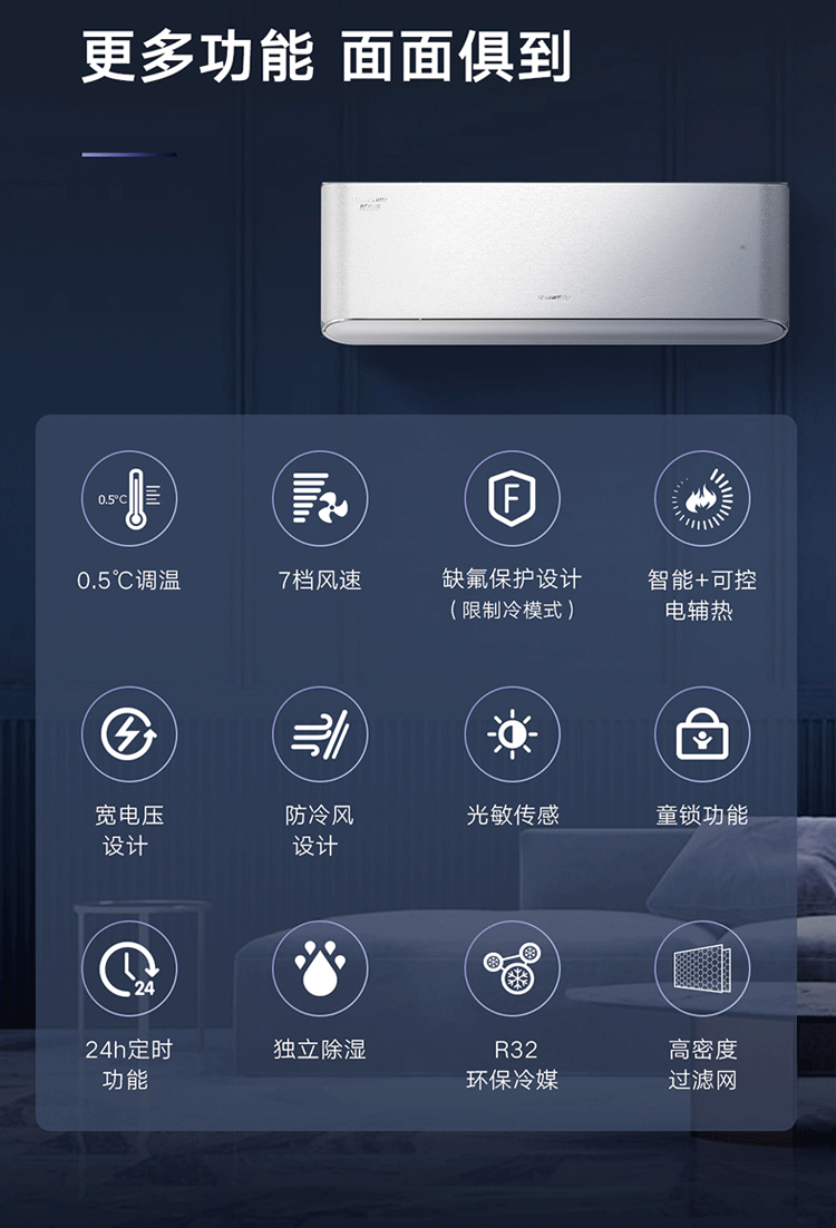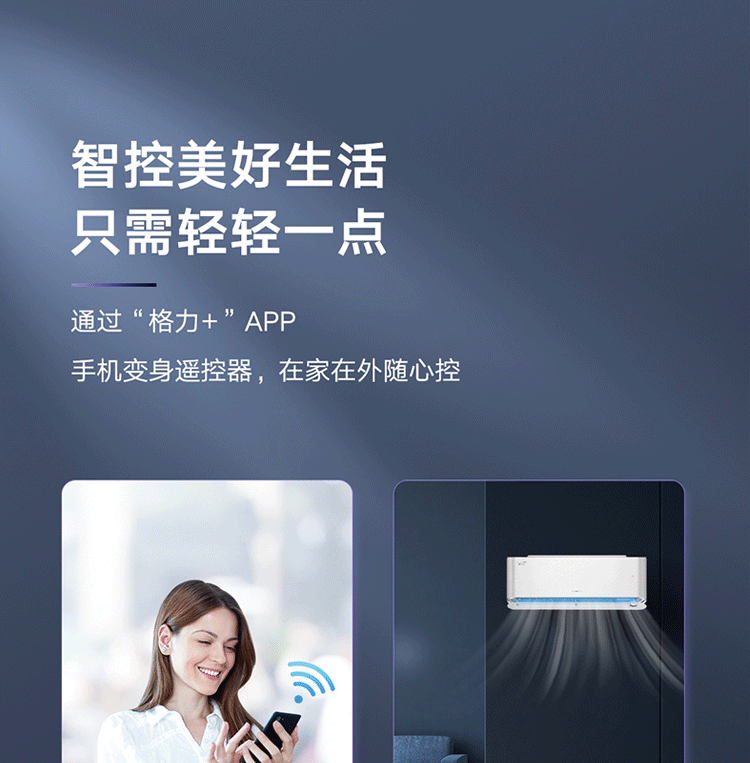 格力/空调/KFR-26GW/(26516)FNhAa-B1(WIFI)(含管)(钛空银)/空调 时光序系列 含管 新1级冷暖变频 全域防直吹 除尘杀菌 仿布纹 格力壁挂式挂机空调 WIFI智控