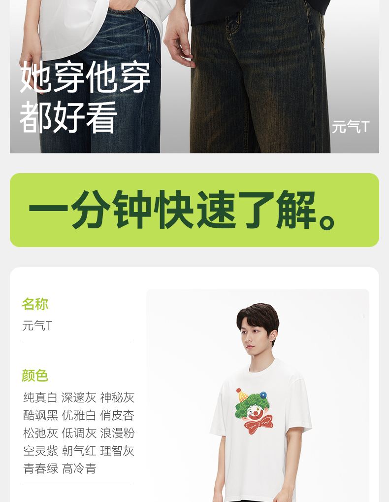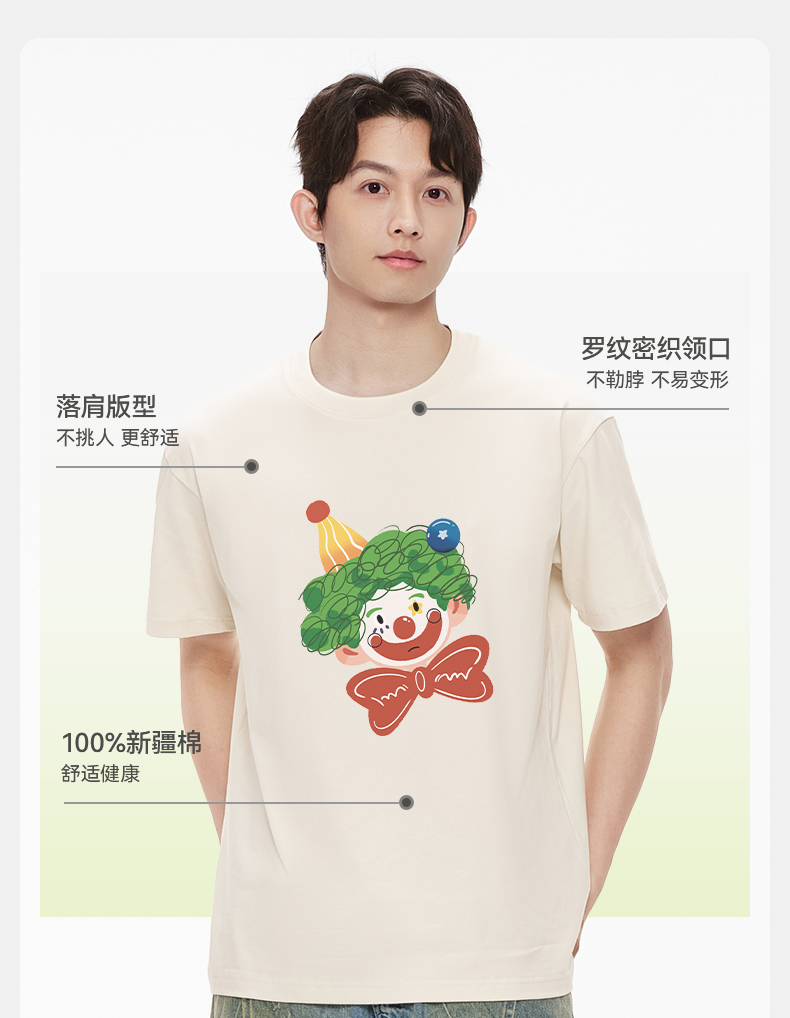 「棉的美学」纯棉质感宽松圆领短袖T恤百搭趣味印花个性上衣男装