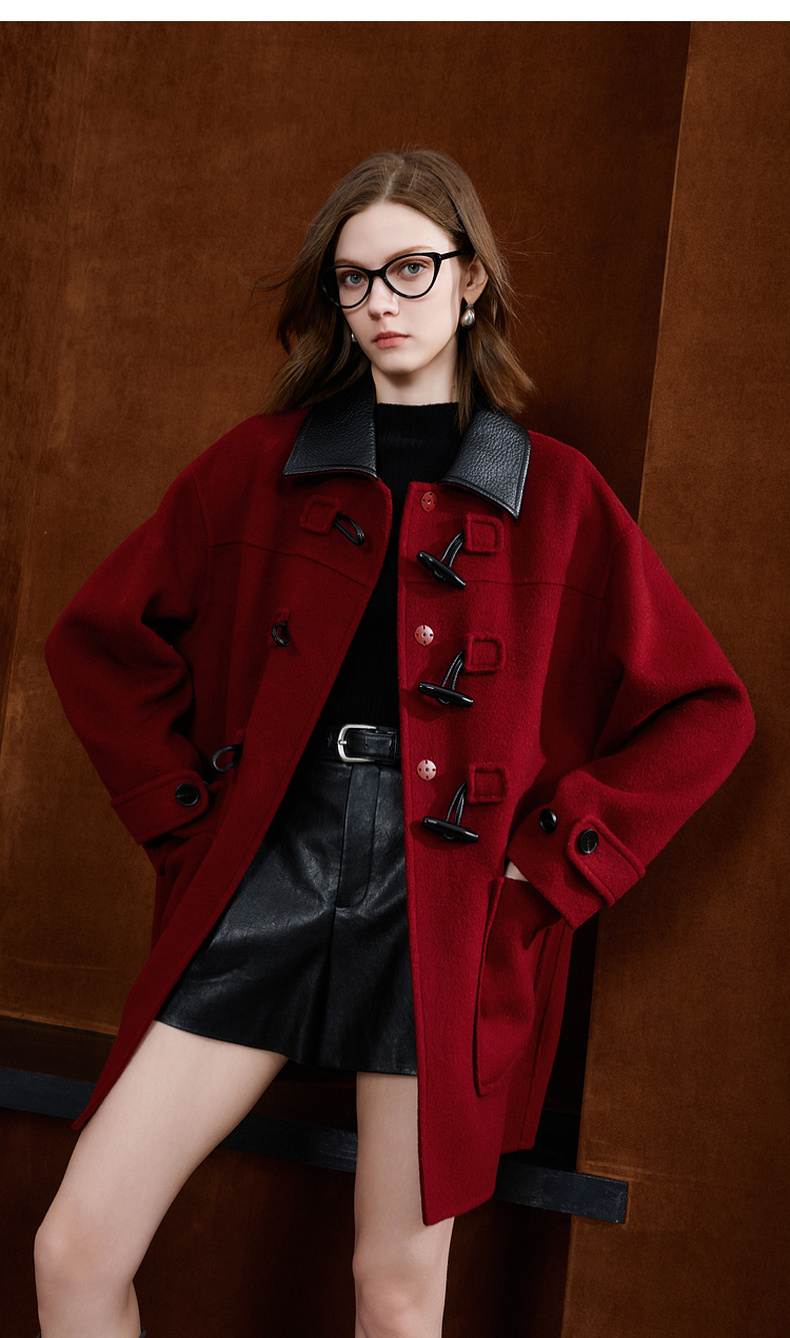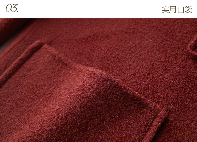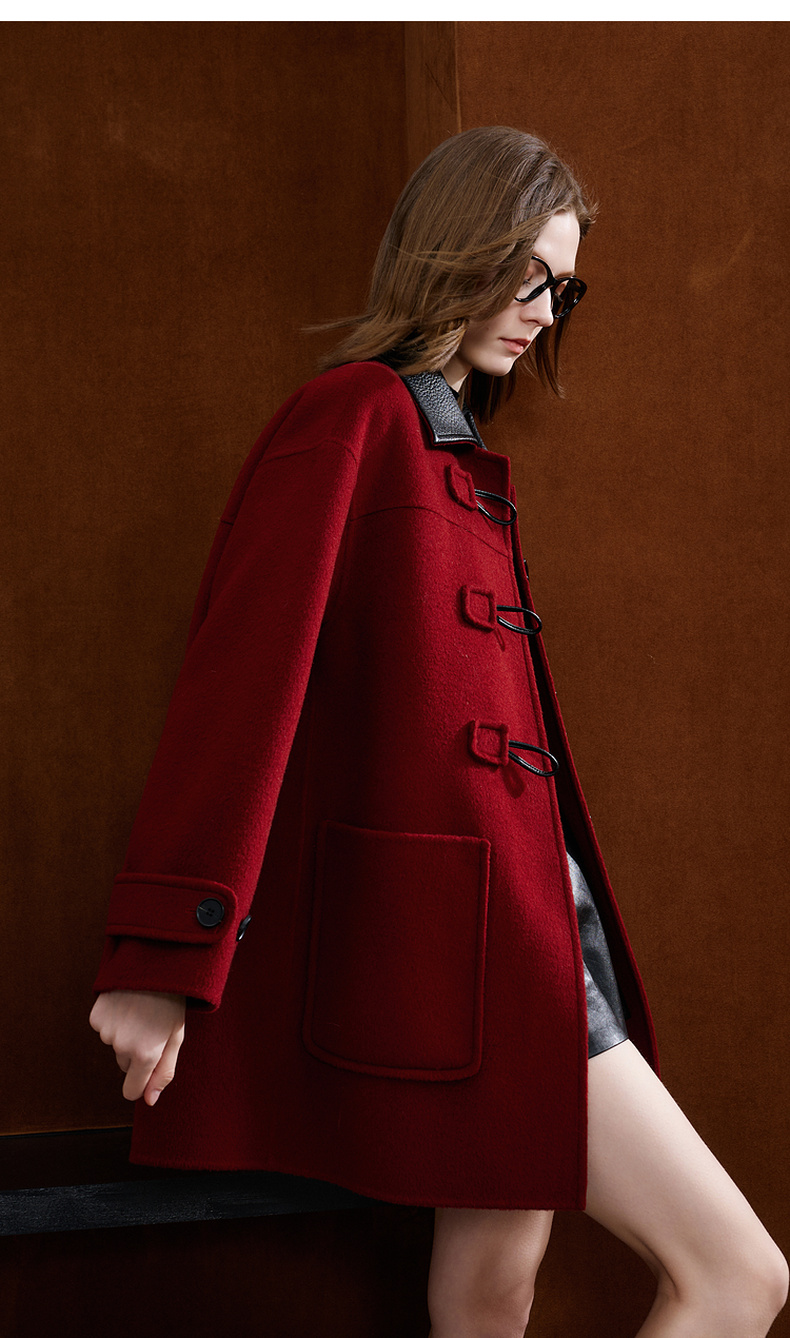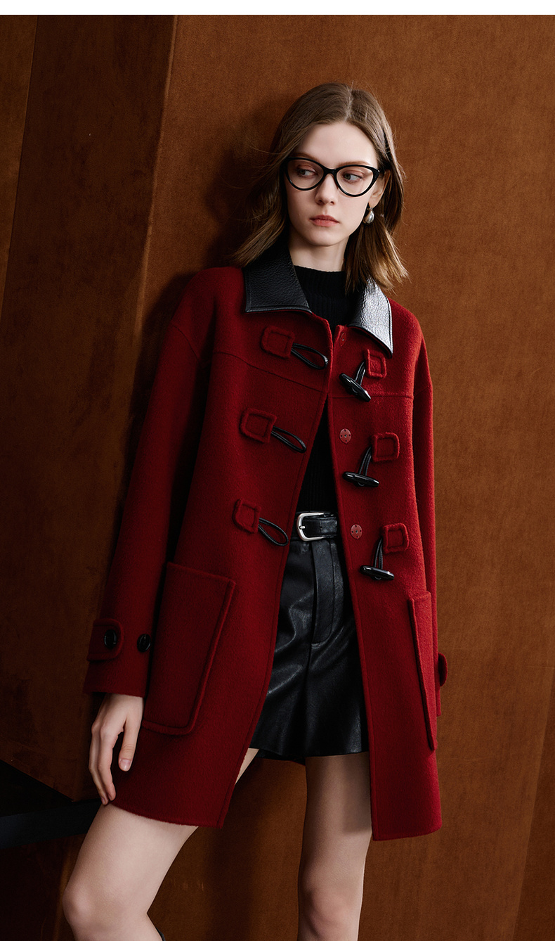 【100绵羊毛】三彩2025冬季新款牛角扣双面呢大衣中长外套M