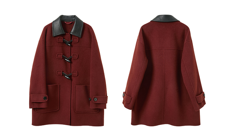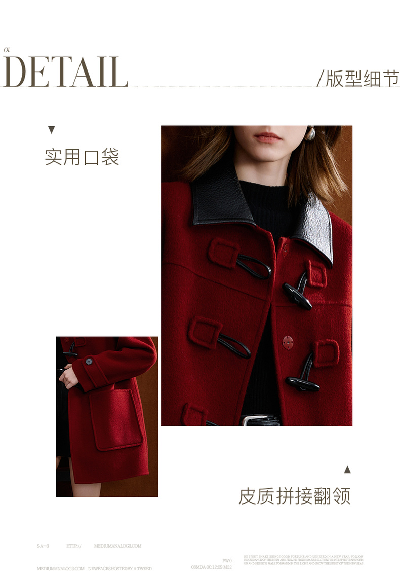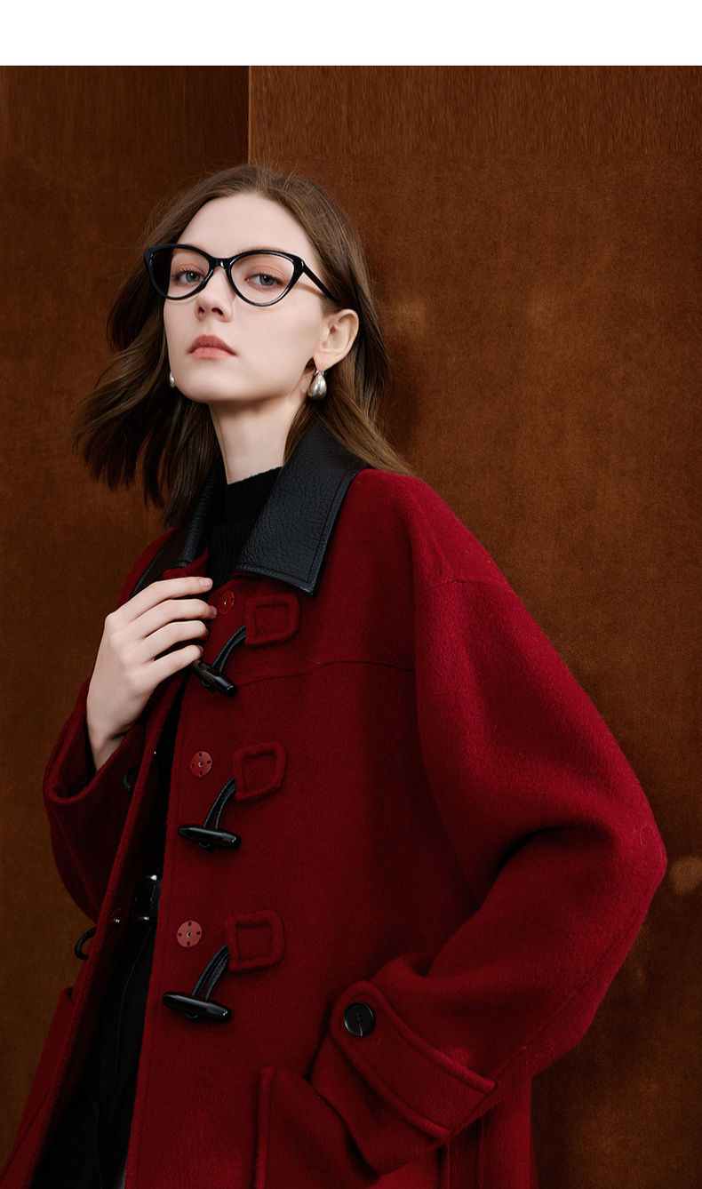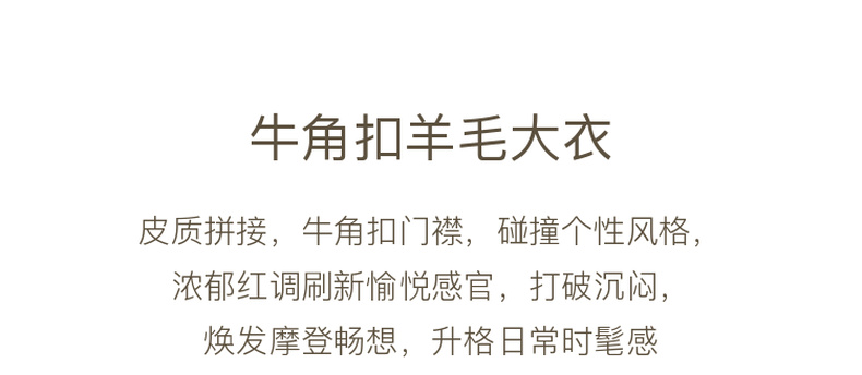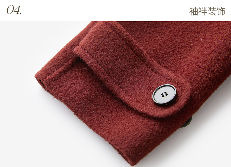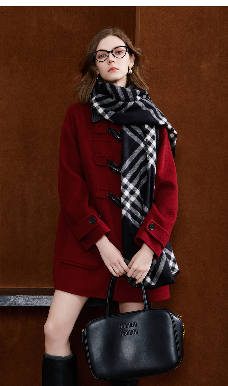 【100绵羊毛】三彩2025冬季新款牛角扣双面呢大衣中长外套M
