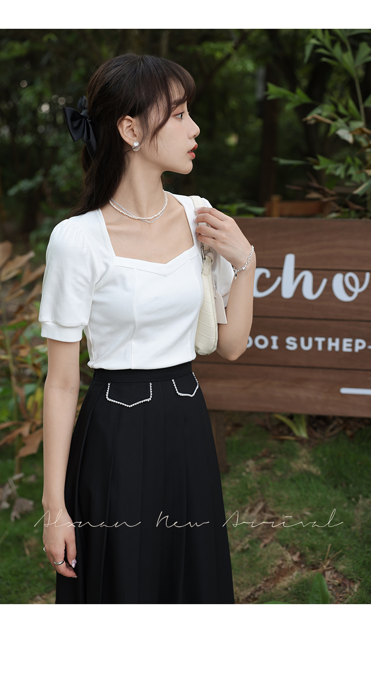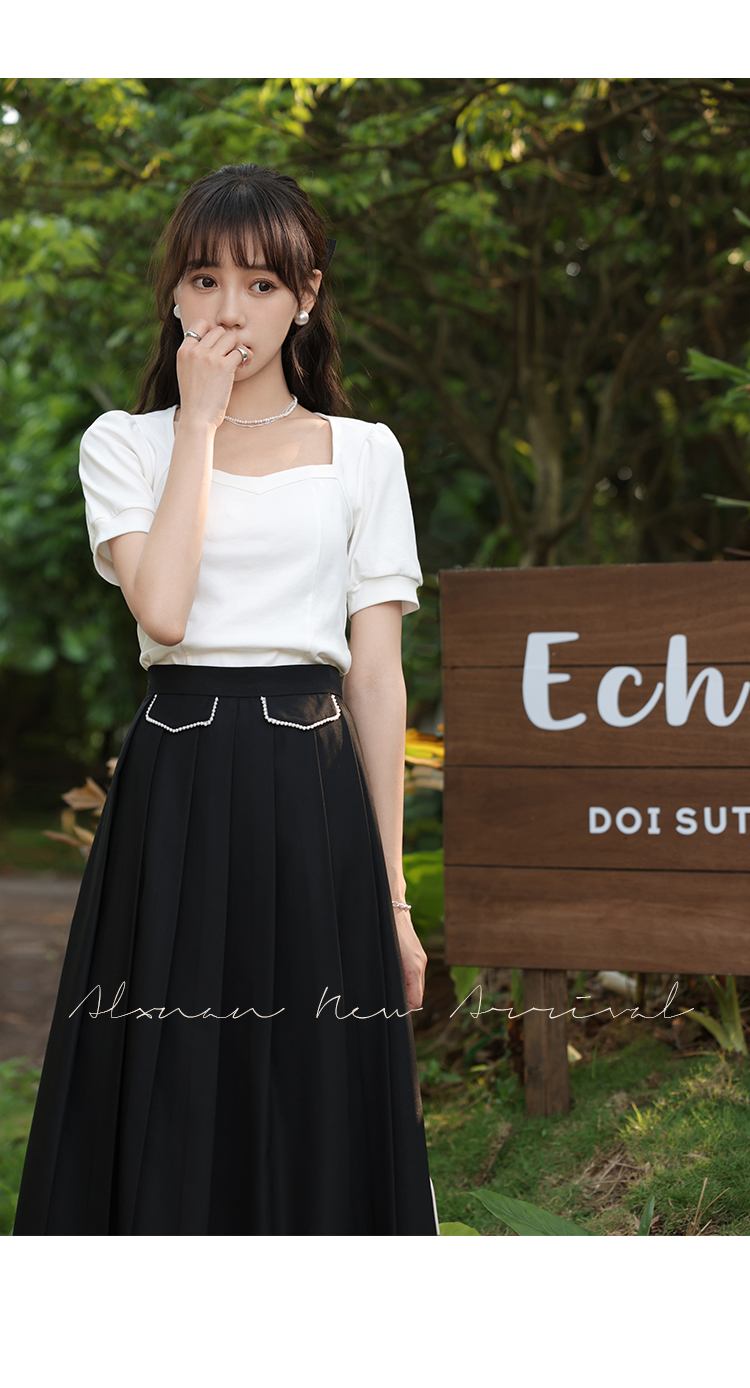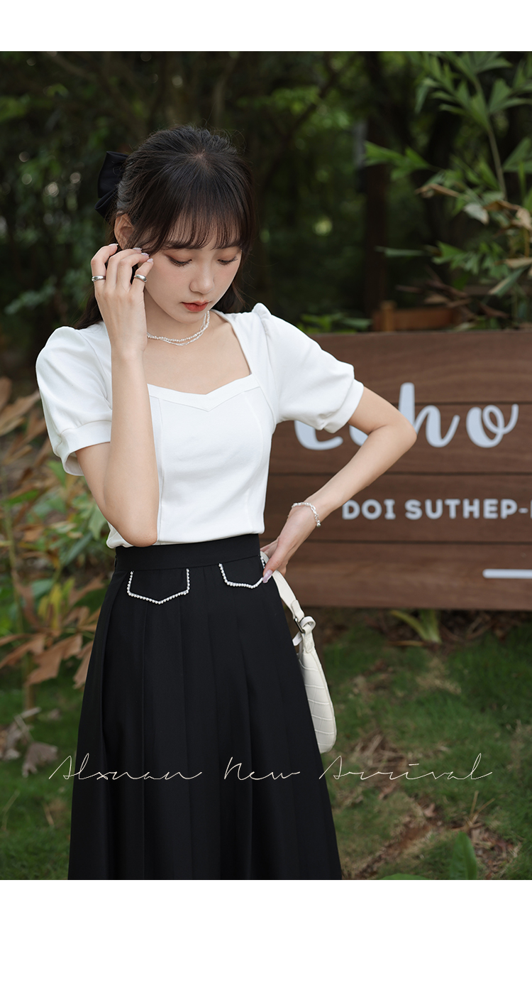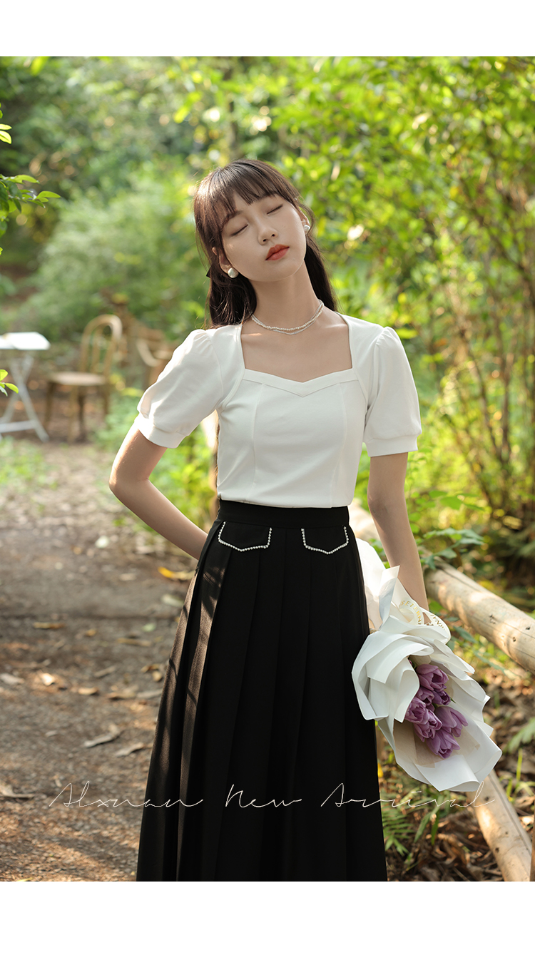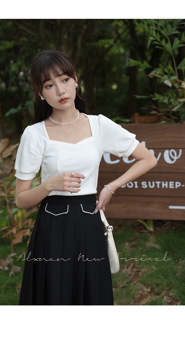 自带优雅赫本feel的复古T恤整件上衣散发出迷人的浪漫气息~适当露肤的复古方领hin显锁骨还能修饰肩颈比例 灰常显脸小建议溜肩和后肩膀粗手臂的姐妹yi定要入手试试 立马改变肩型手臂纤细 再加上微微泡泡袖将宫廷风设计的恰到好处 增添了复古韵味优雅法式少女的日常 上身气质up!简约的版型和基础bai搭的色系是我一直能穿下去的理由 上身氛围感man分 ~PS:长袖款式为了方便秋冬内搭搭配 我们的领边做了小细节~ | ||