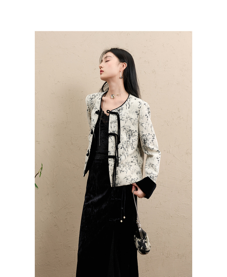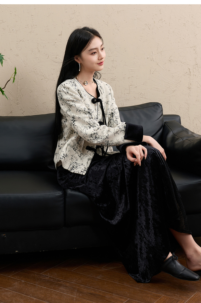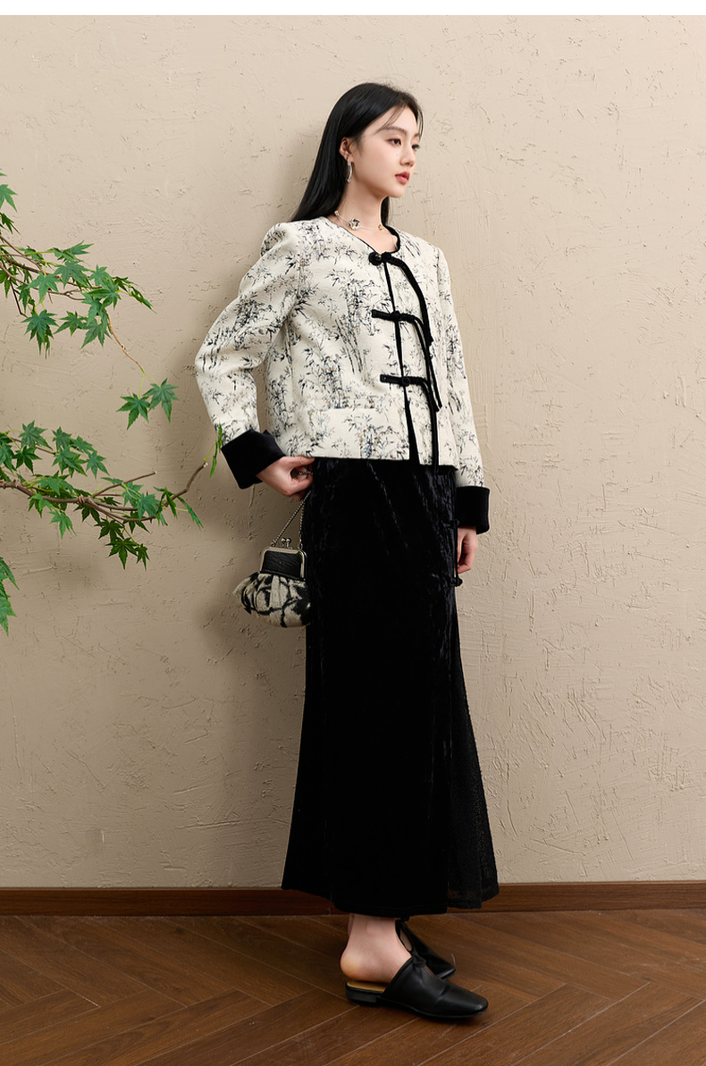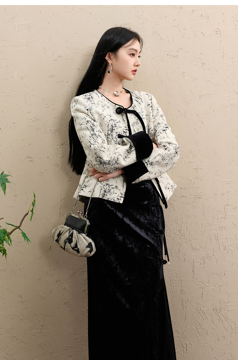 【社群秒杀】三彩【竹摇清影】2025冬季新款蓄热保暖棉外套提花圆领盘扣开衫C