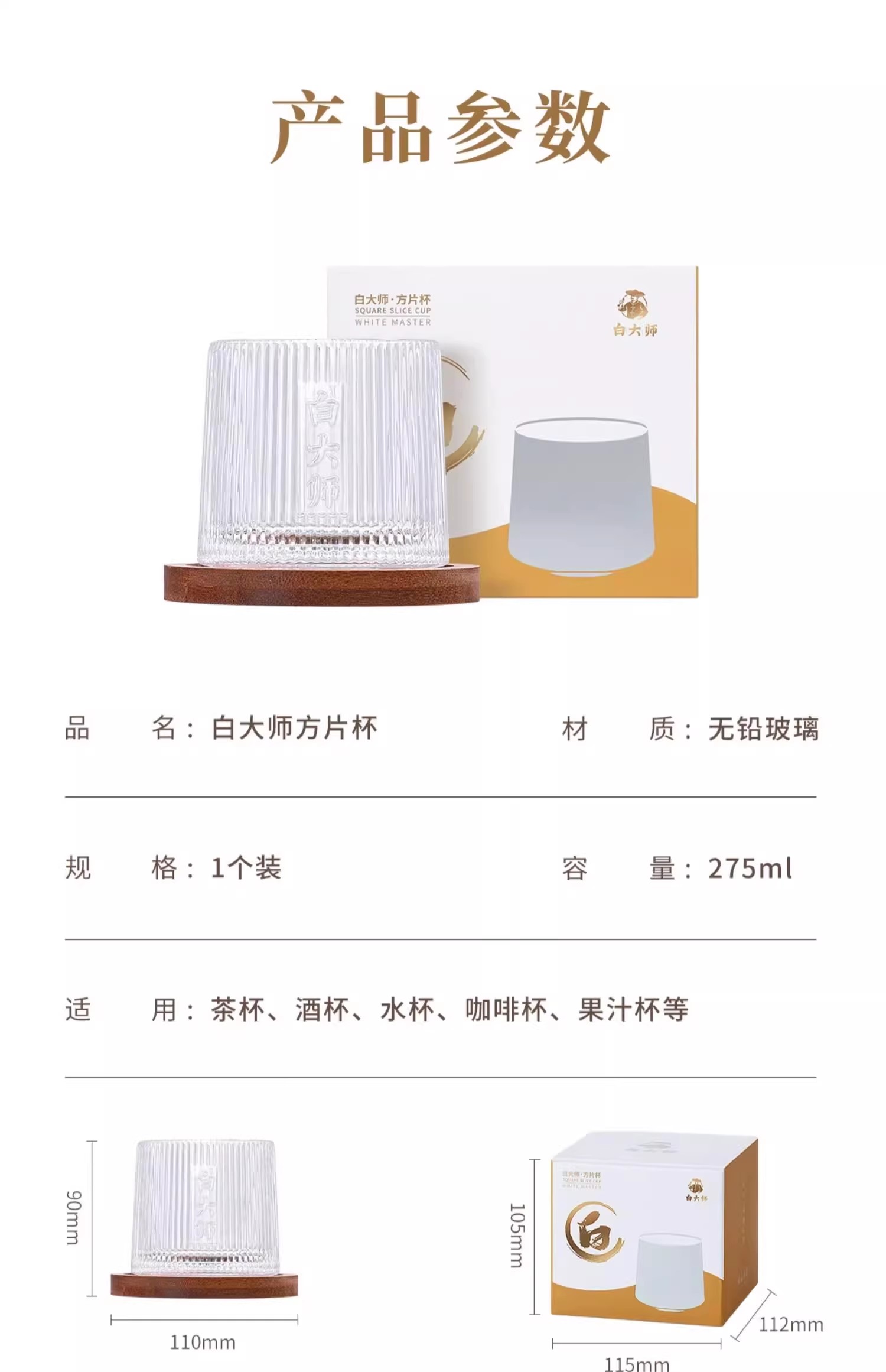 白大师方片解压杯子高颜值茶杯玻璃杯水晶杯275ml