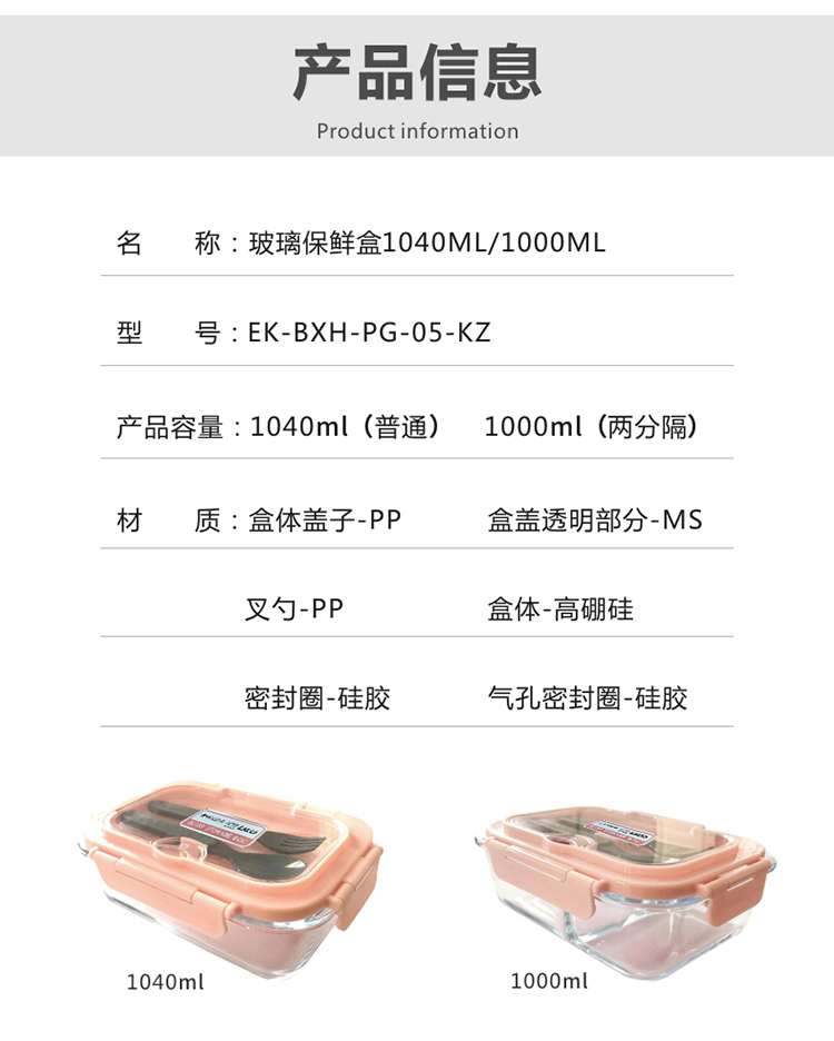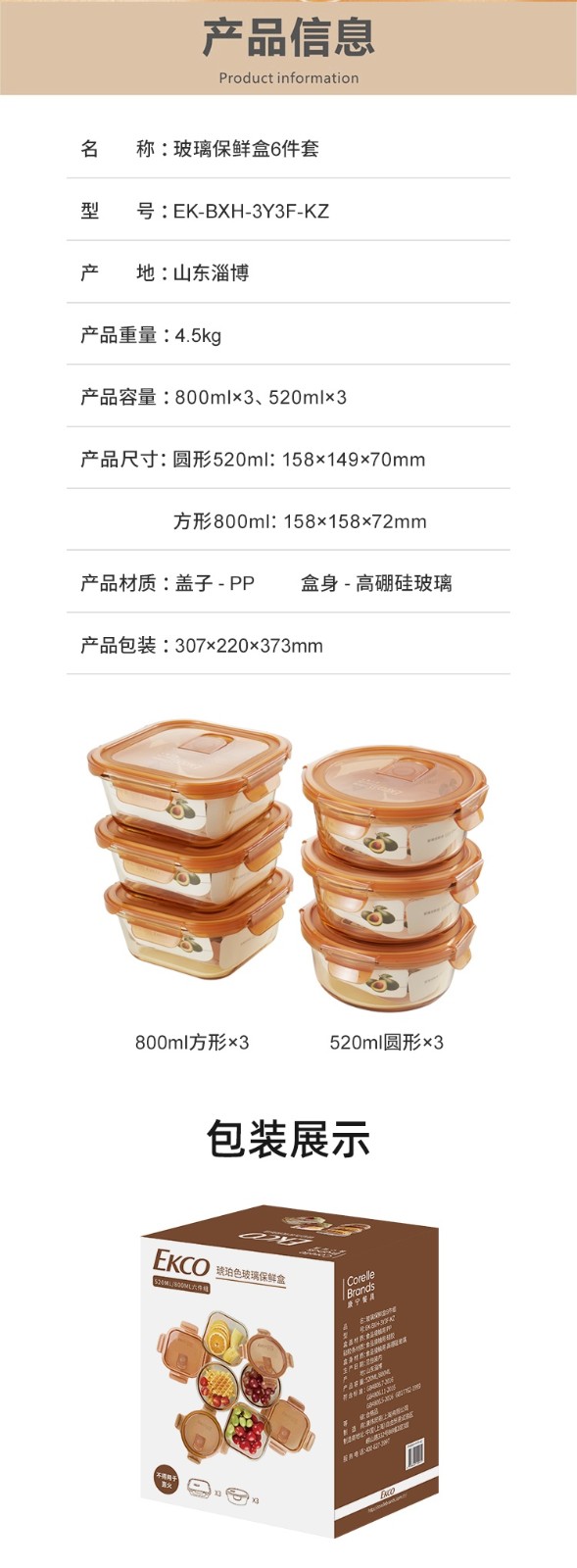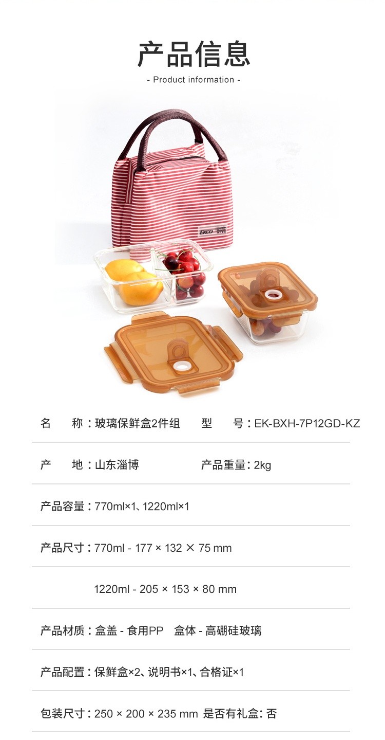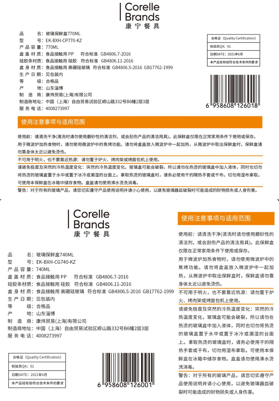 美国康宁玻璃饭盒玻璃保鲜盒便携饭盒 玻璃保鲜盒740ML/770ML(带保温袋)