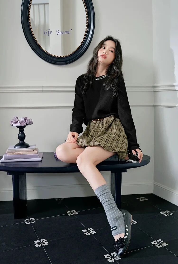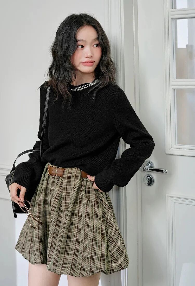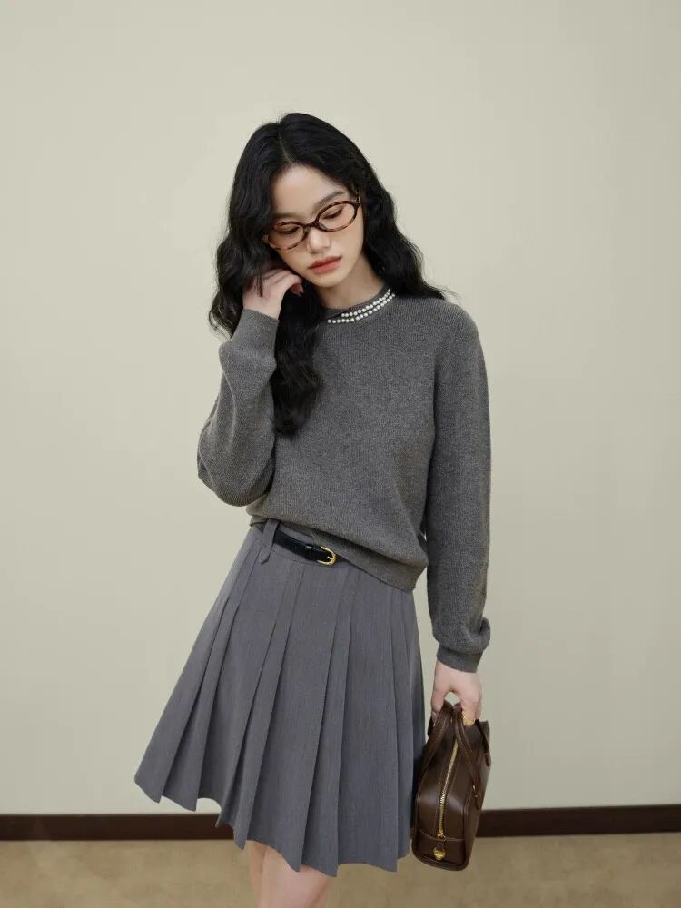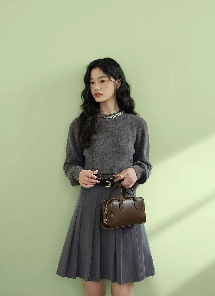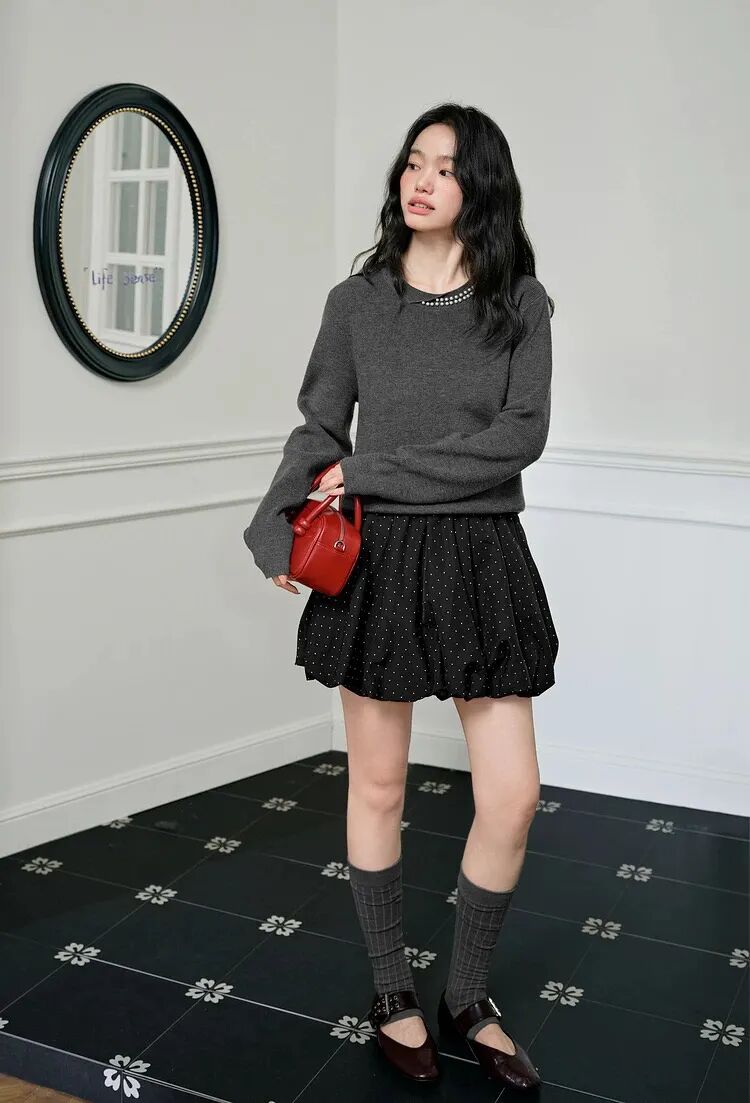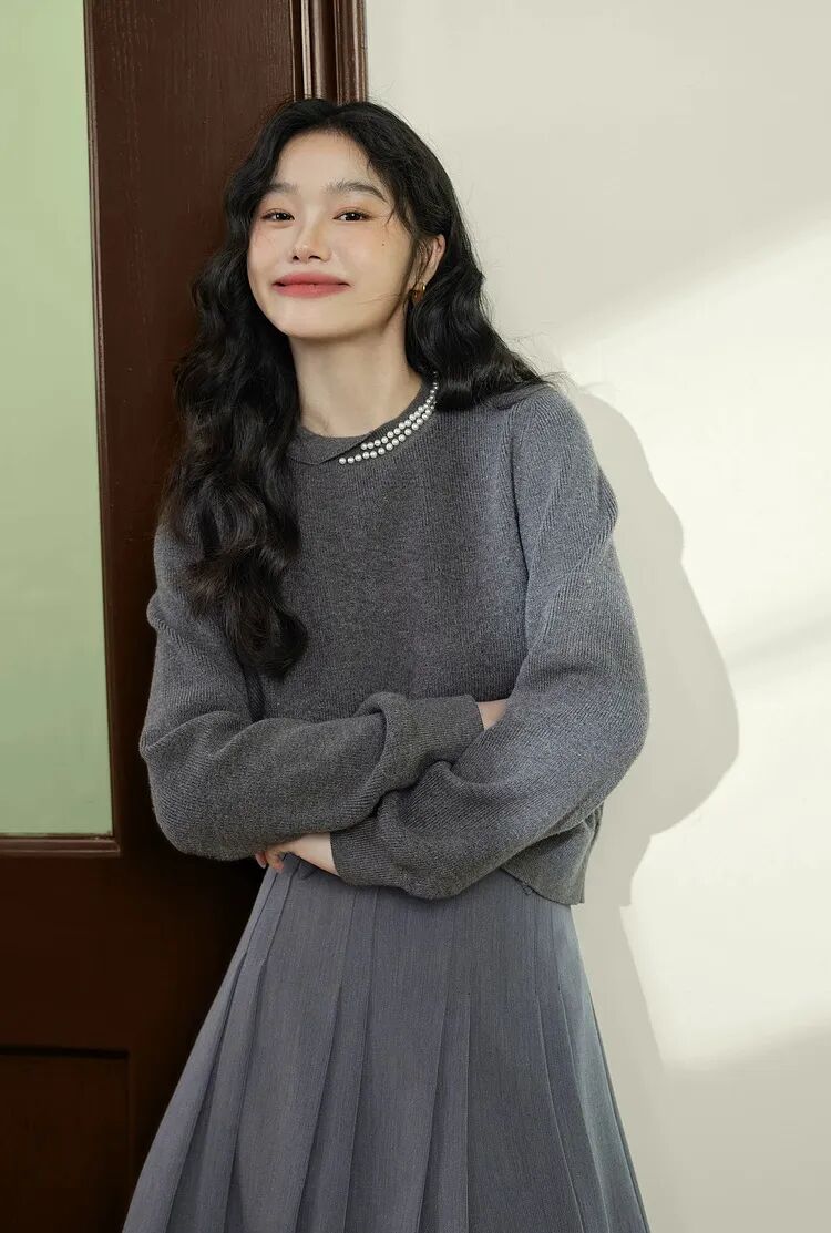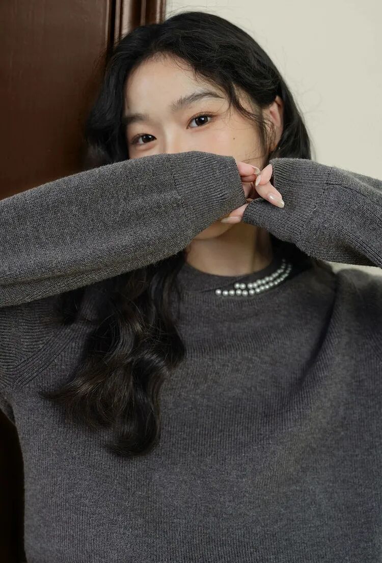 软糯慵懒的毛衣配上珠圆玉润的珍珠装饰,