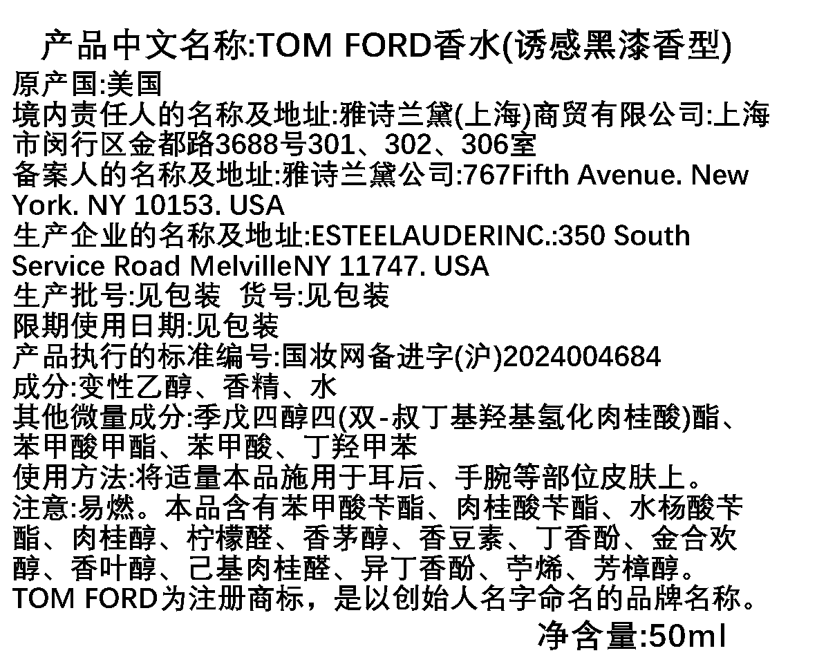 Tom ford汤姆福特/TF BLACK LACQUER/诱感黑漆香水