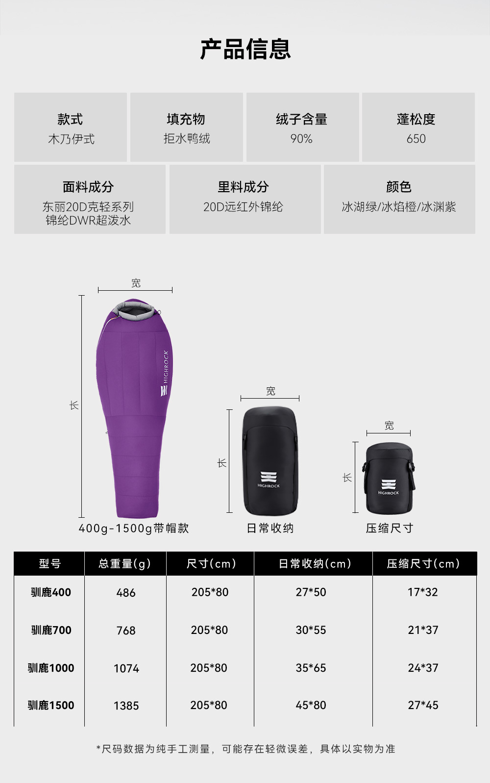 天石睡袋户外成人防寒木乃伊式鸭绒睡袋旅行登山轻量化驯鹿2.0