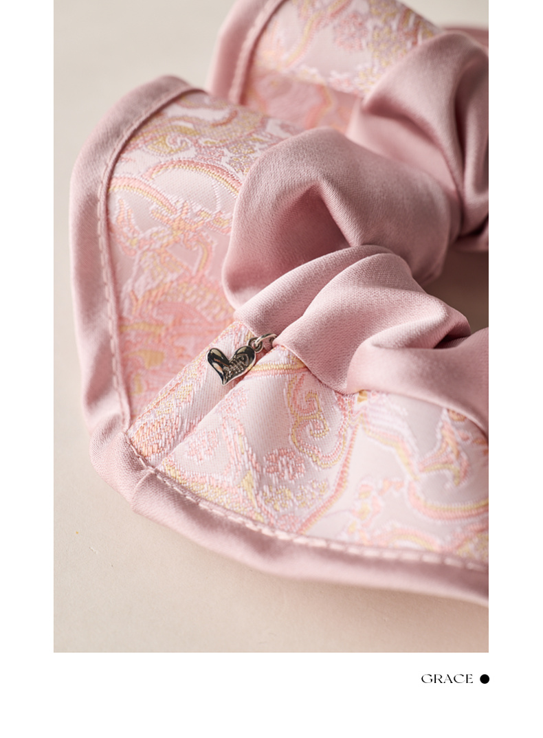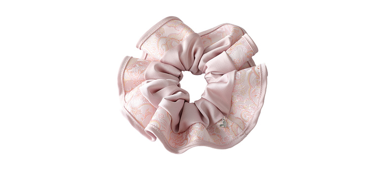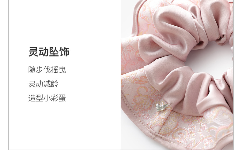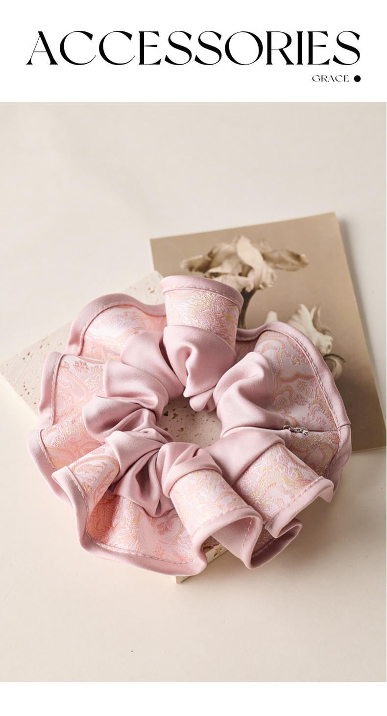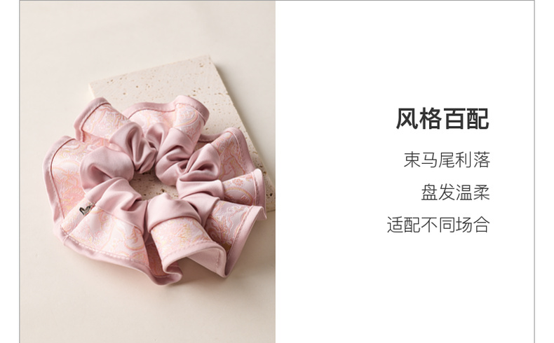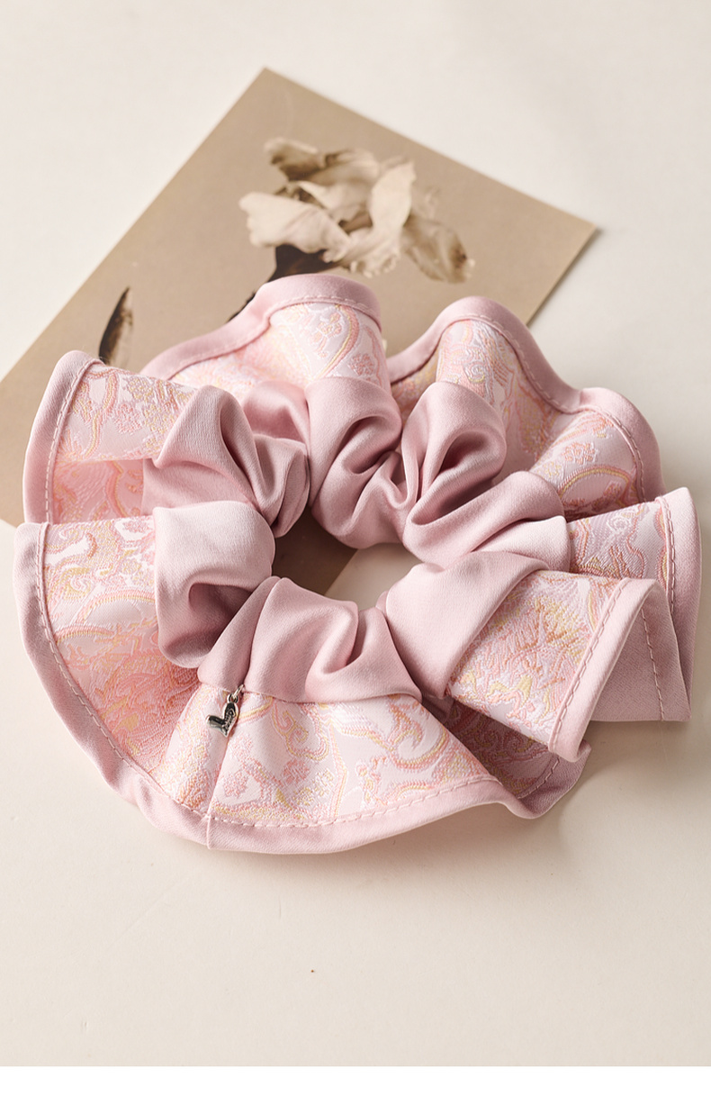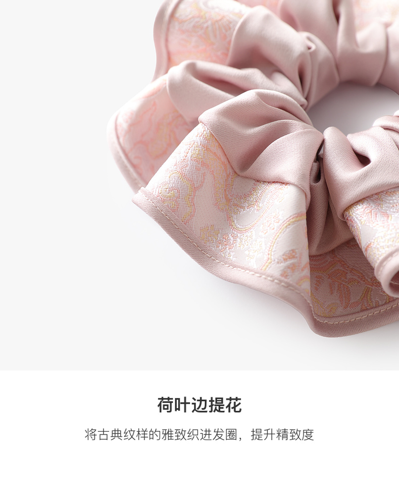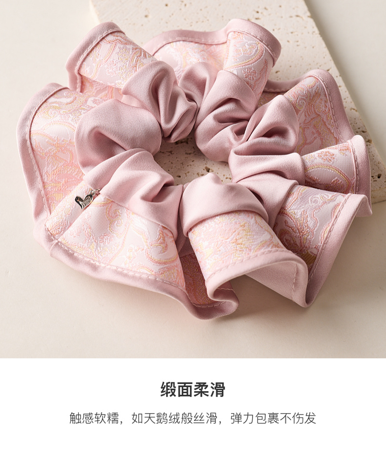 三彩2025新款国风缎面发圈通勤荷叶边提花拼接约会头饰氛围感女