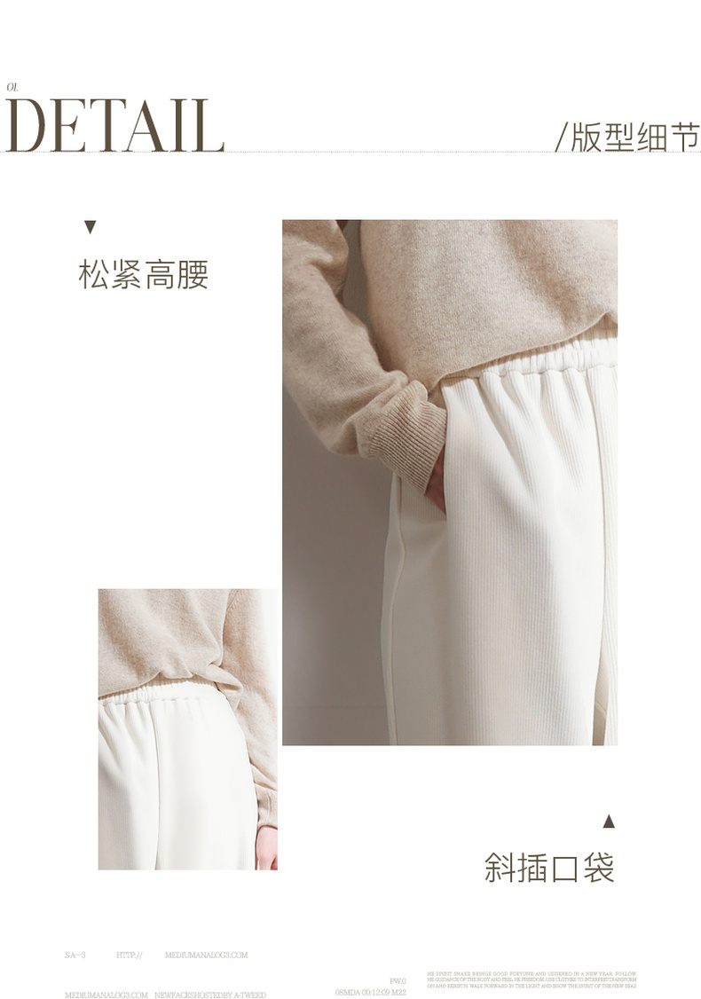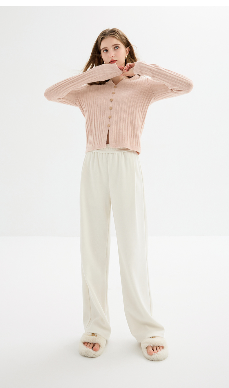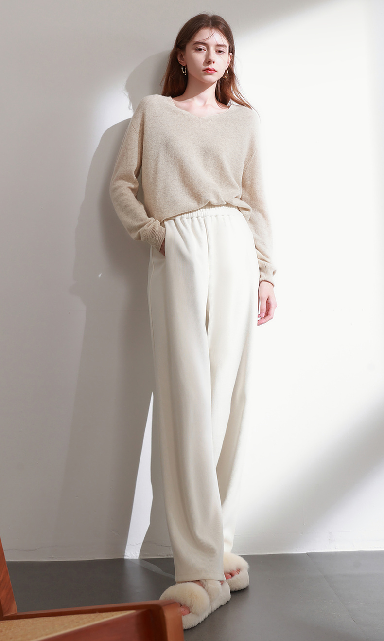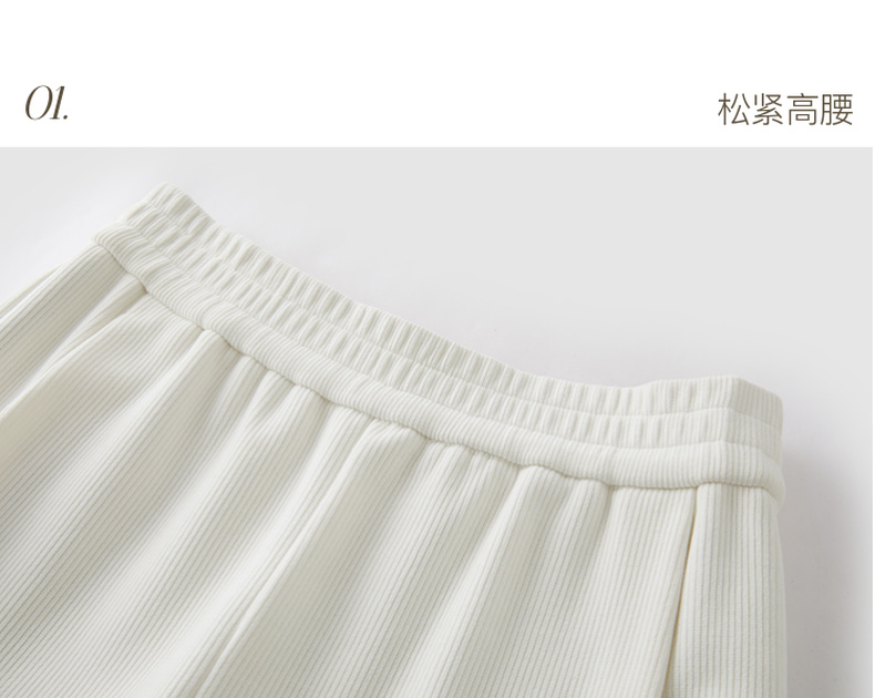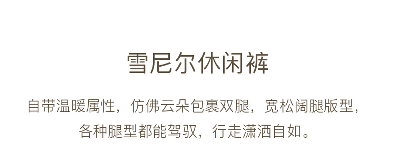 三彩2026春季新款雪尼尔休闲长裤高腰松紧直筒阔腿裤宽松简约M