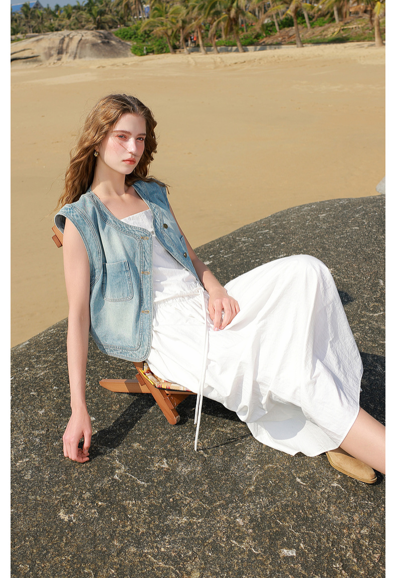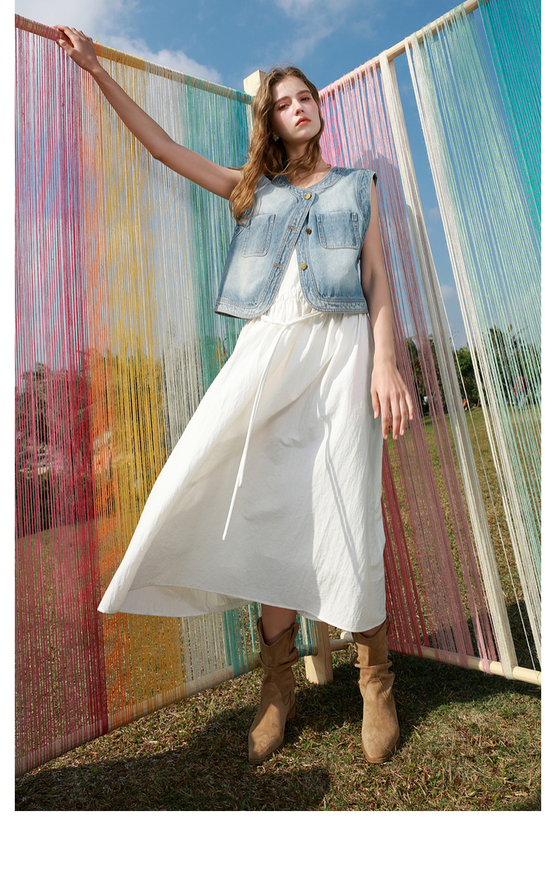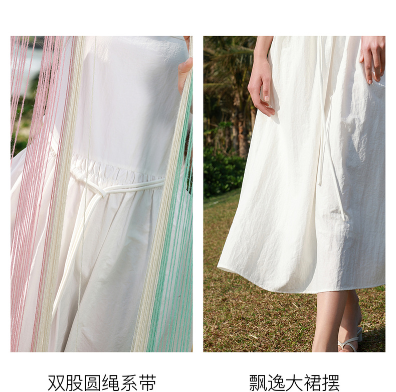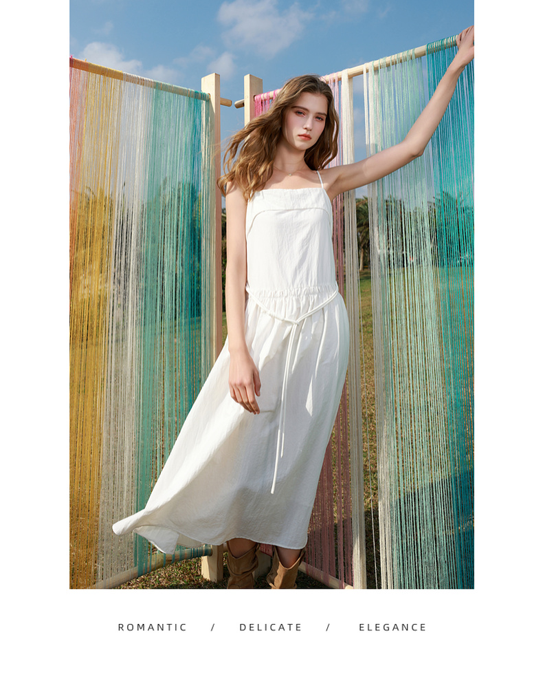 三彩2025春季新款无袖吊带裙小白裙连衣裙A字长裙清新M