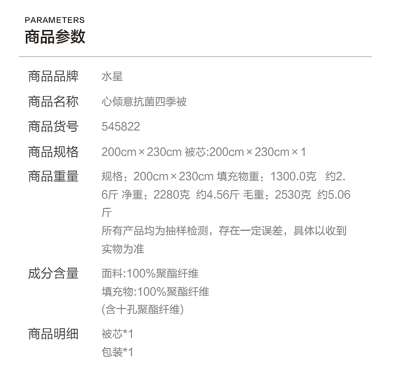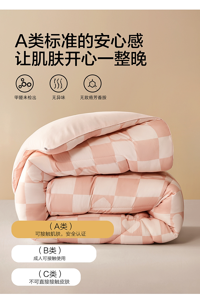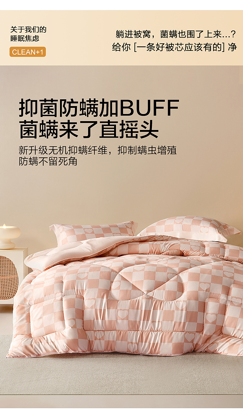 水星家纺 心倾意 十孔抗菌纤维被 新疆长绒棉舒适睡眠四季被冬被