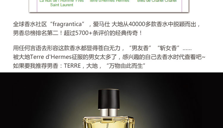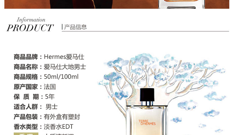 HERMES爱马仕大地合集馥郁香根草男士淡香水EDT100ml(ZT*LL)