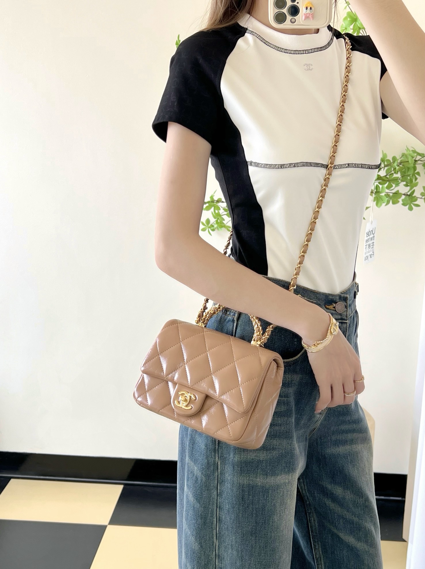全新版到货🆕𝟮𝟰𝗕秋冬系列 拧链手柄邮差包小号 奶茶色 专柜售价𝟦𝟪𝟣𝟢𝟢𝗋𝗆𝖻购入开发~ 𝖢𝗁𝖺𝗇𝖾𝟣独特链条拧转手柄设计ꫛꫀꪝ 不仅大方美观,还提供舒适的握持感 这种设计既保留小香的经典元素, 又赋予了包包新的艺术气息时尚感✨ 五金:厚镀𝟤𝟦𝗄亮金扣 皮料:𝖡𝗈𝗇𝖺𝗎𝖽𝗈亮面小羊皮 尺寸: 𝟣𝟦*𝟣𝟫*𝟪 𝖼𝗆