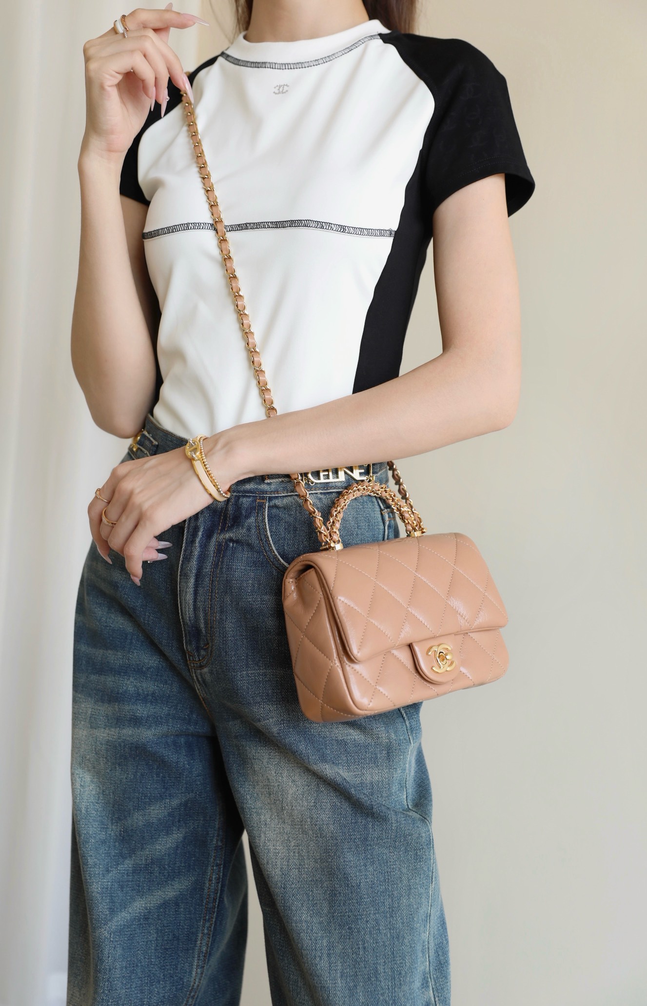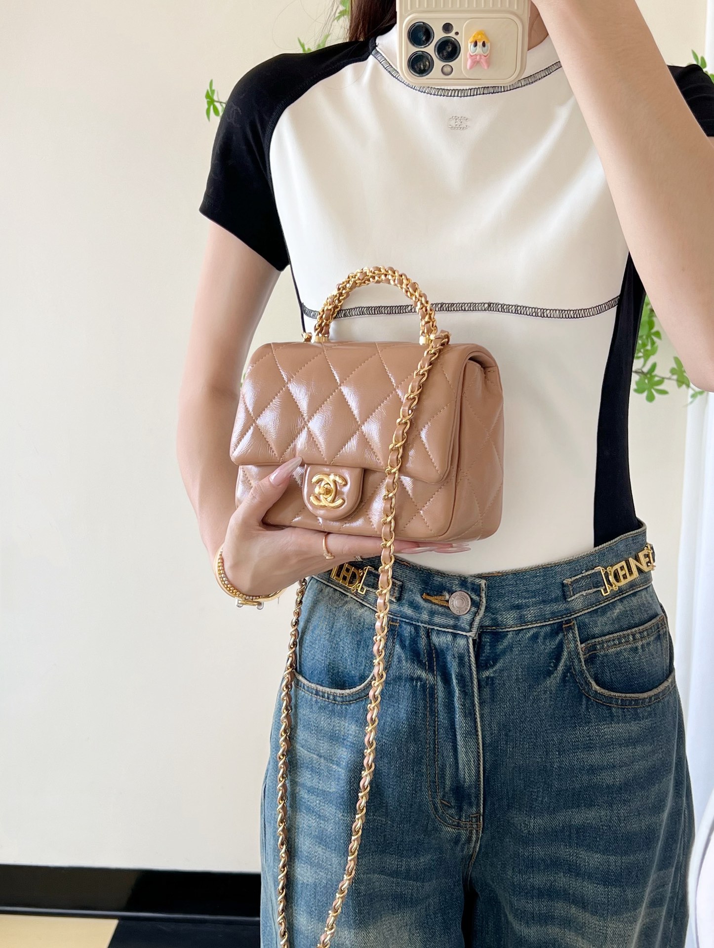 专柜售价𝟦𝟪𝟣𝟢𝟢𝗋𝗆𝖻购入开发~ 𝖢𝗁𝖺𝗇𝖾𝟣独特链条拧转手柄设计ꫛꫀꪝ 不仅大方美观,还提供舒适的握持感 这种设计既保留小香的经典元素, 又赋予了包包新的艺术气息时尚感✨ 五金:厚镀𝟤𝟦𝗄亮金扣 皮料:𝖡𝗈𝗇𝖺𝗎𝖽𝗈亮面小羊皮 尺寸: 𝟣𝟦*𝟣𝟫*𝟪 𝖼𝗆