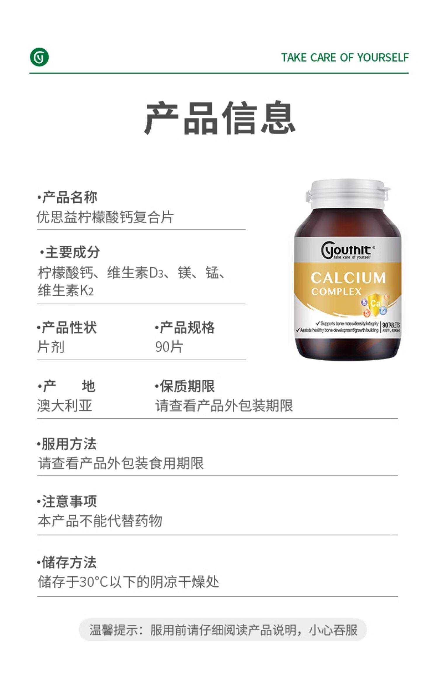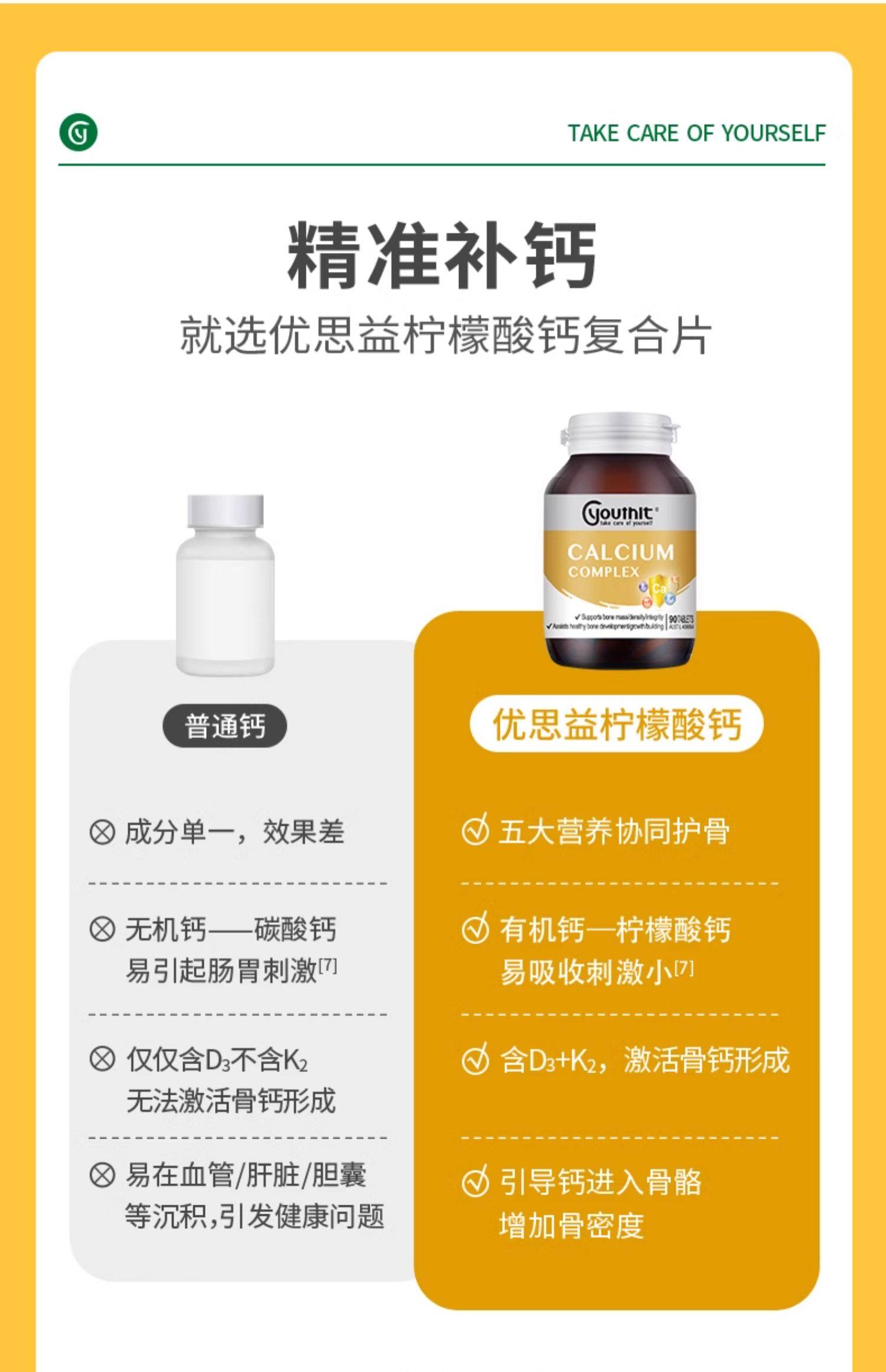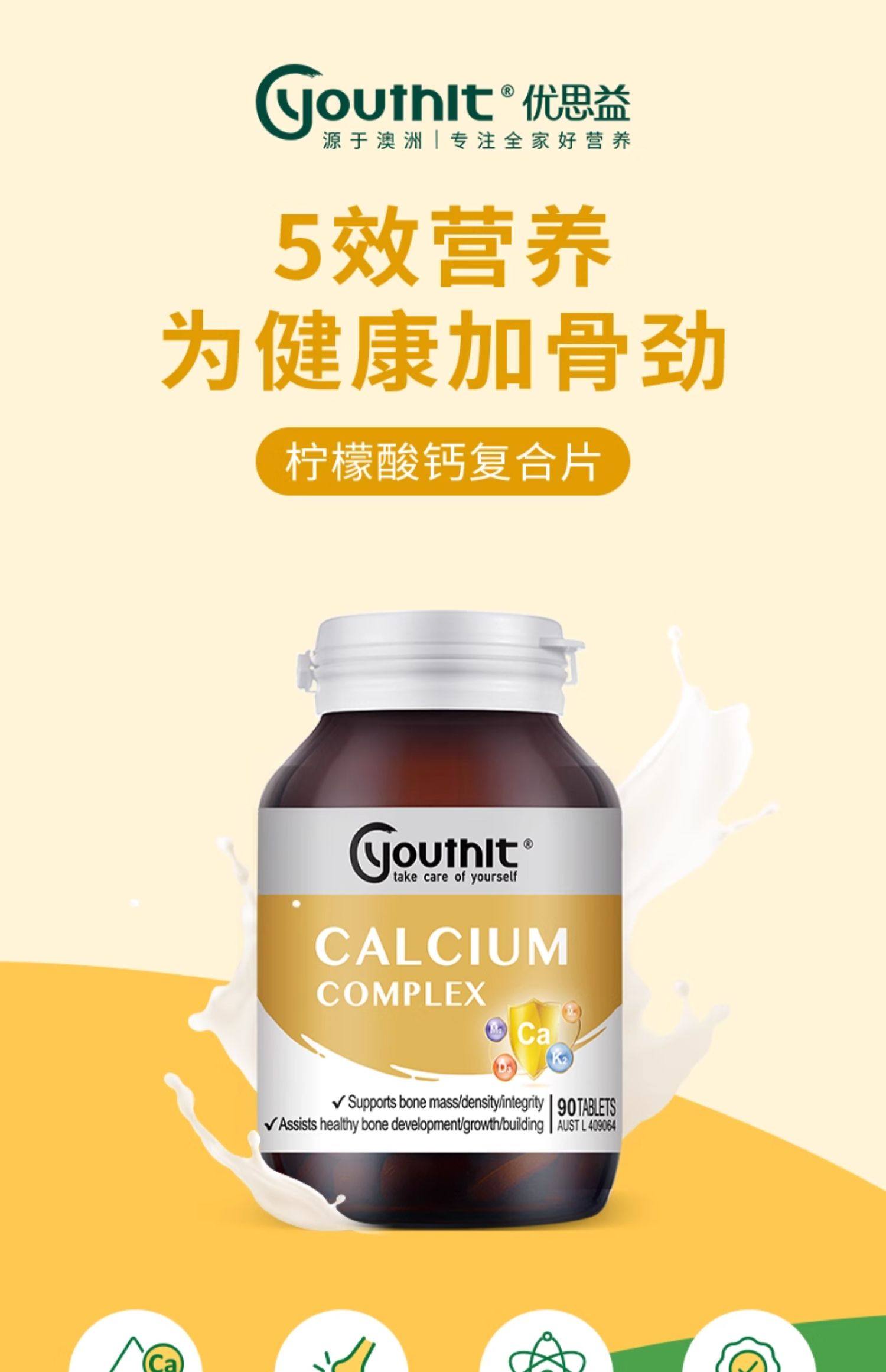 澳洲Youthit优思益柠檬酸钙复合片维生素保健品温和吸收成人90片