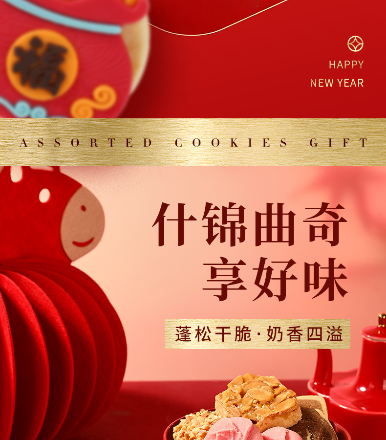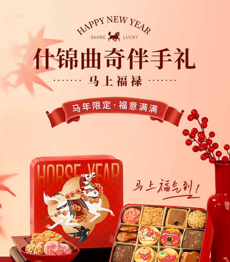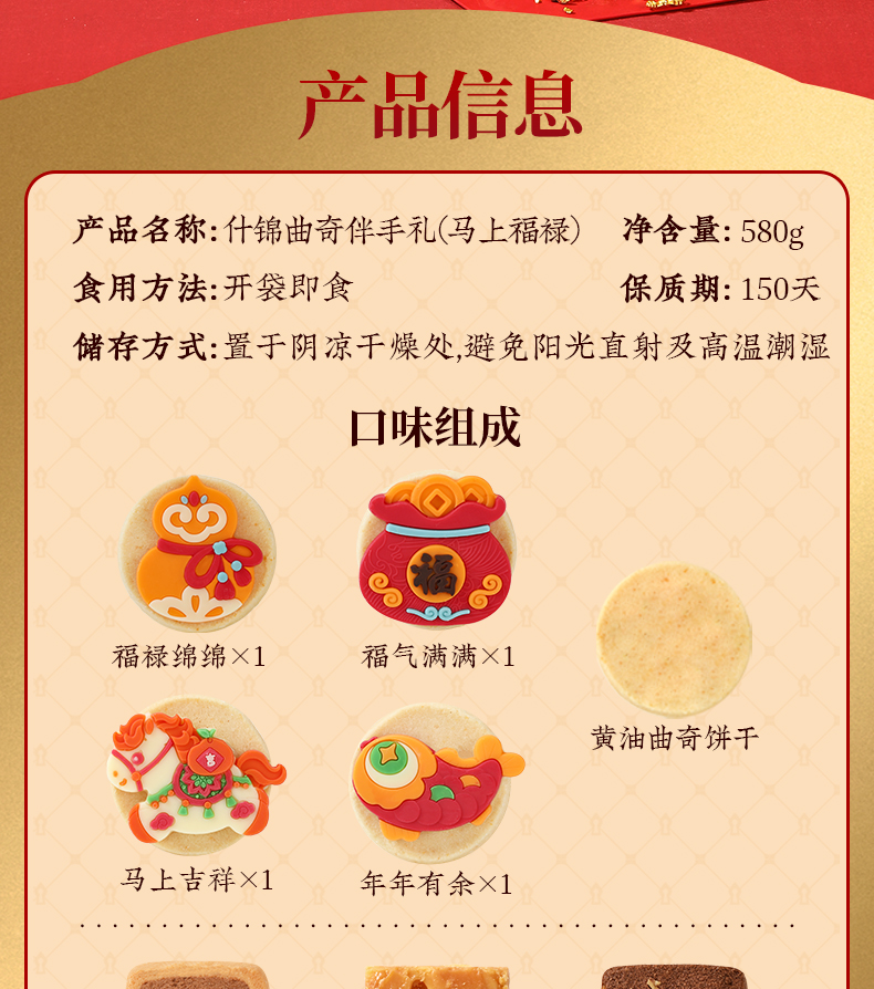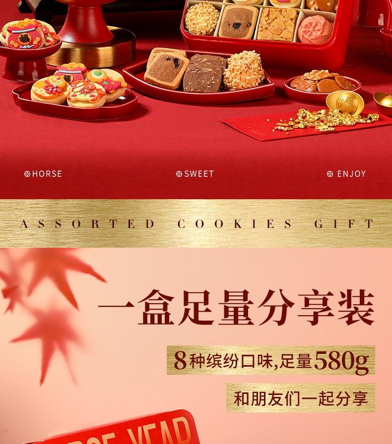 【什锦曲奇伴手礼 马上福禄】悠享时圣诞送礼盒伴手礼休闲零食礼包下午茶女生日礼物新年大礼包580g