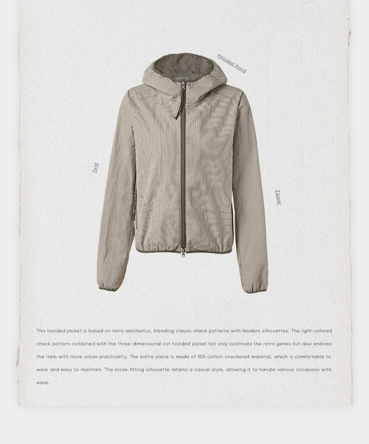 ROMI STUDIO复古格纹连帽防风 弹力收口休闲运动外套RWCAWU6303