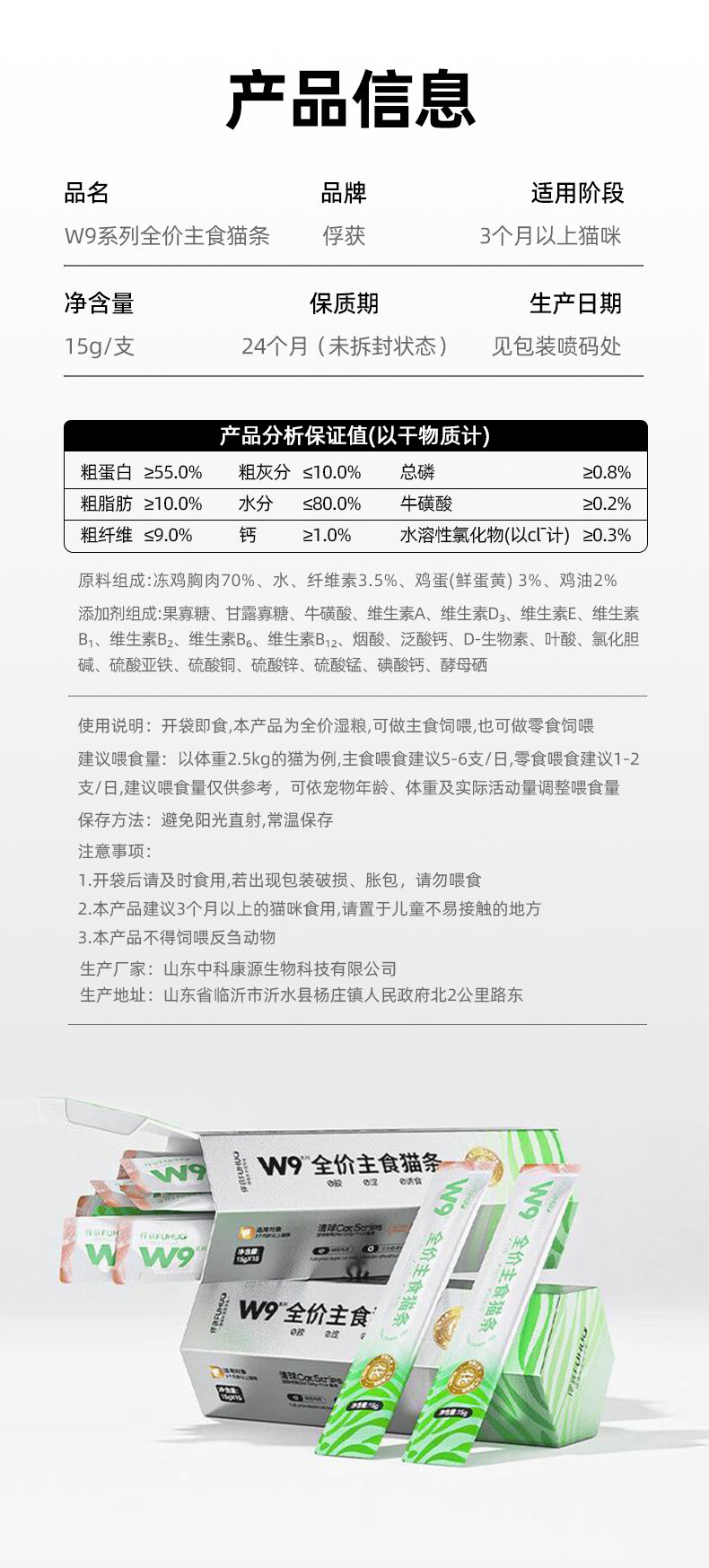 【俘获好礼】俘获W9排毛猫条主食猫条猫咪幼猫专用鱼油防掉毛猫条助排毛球
