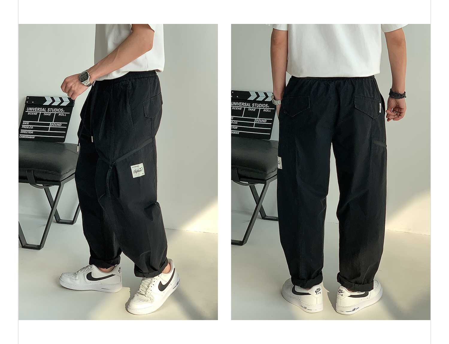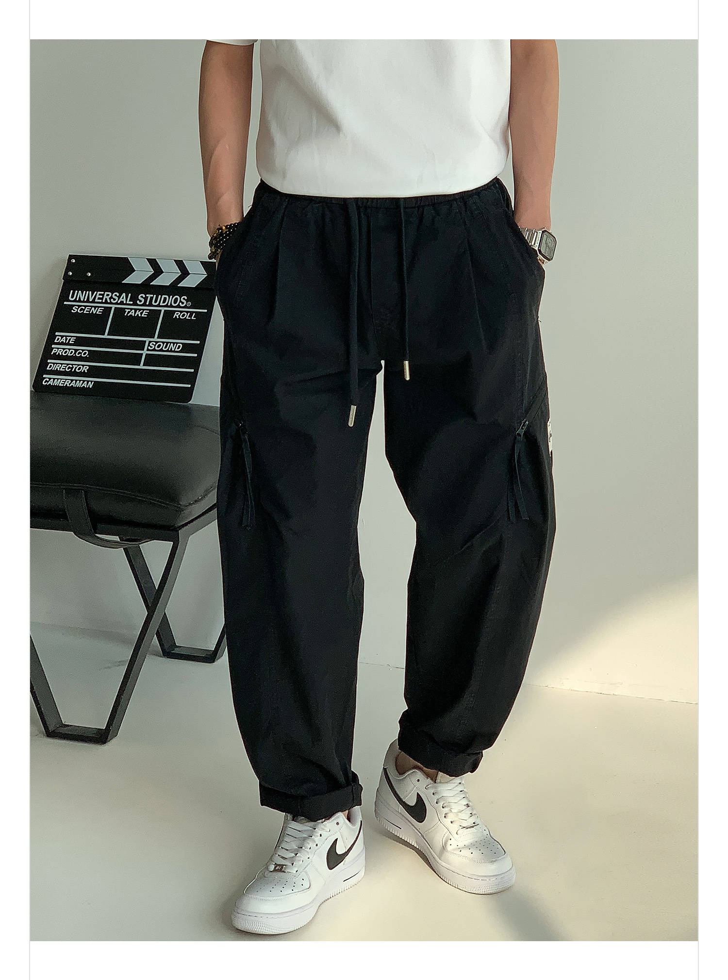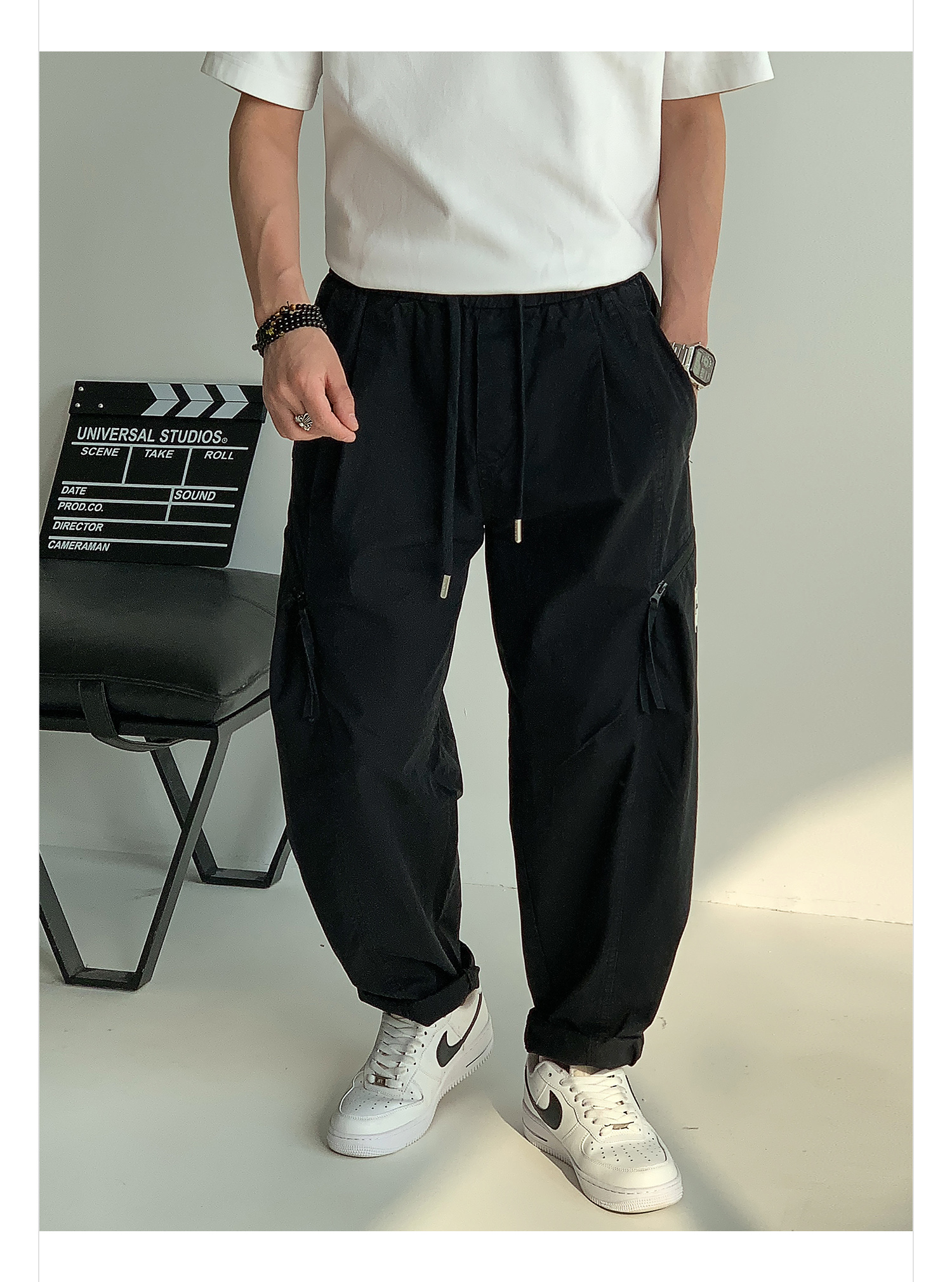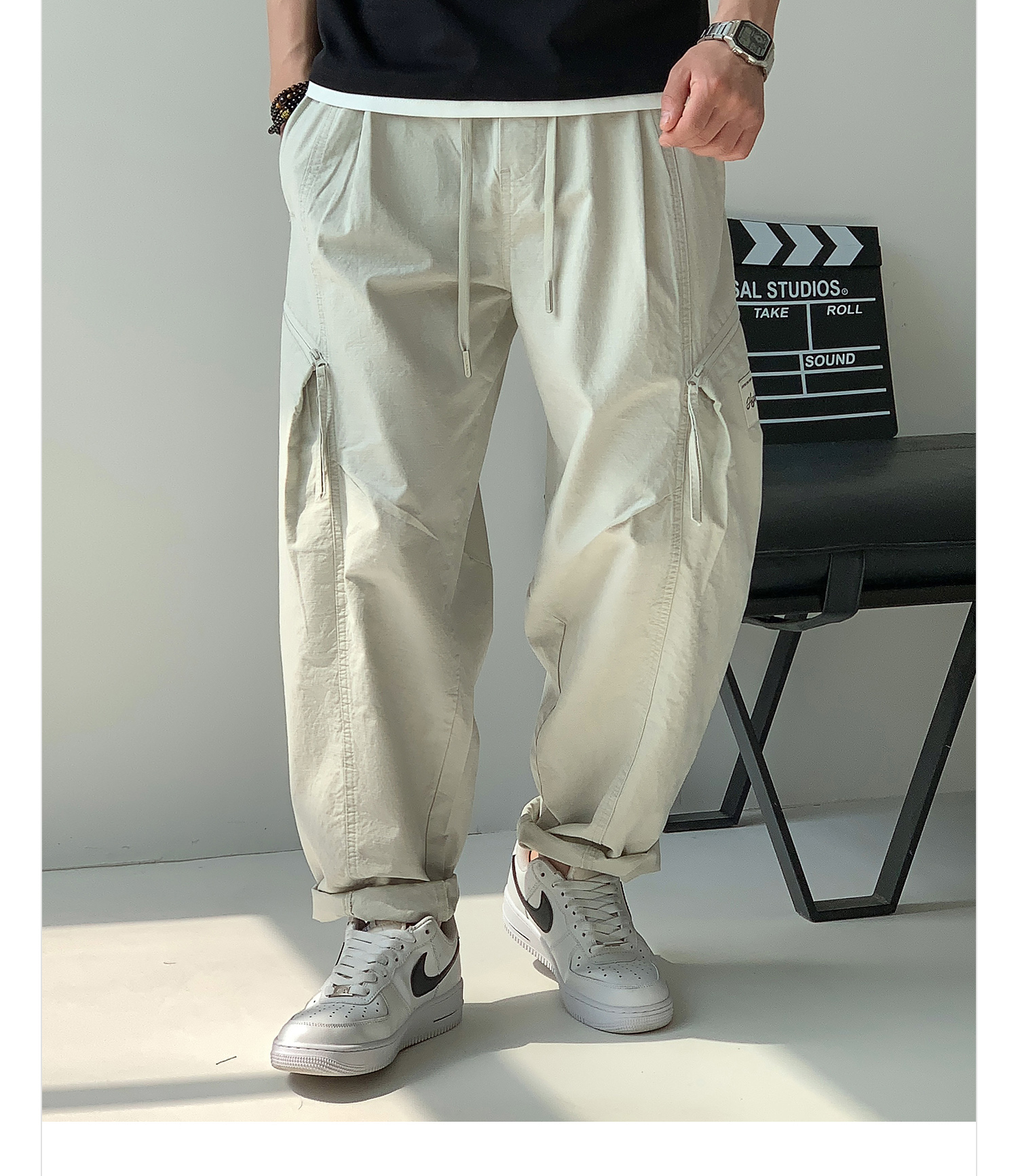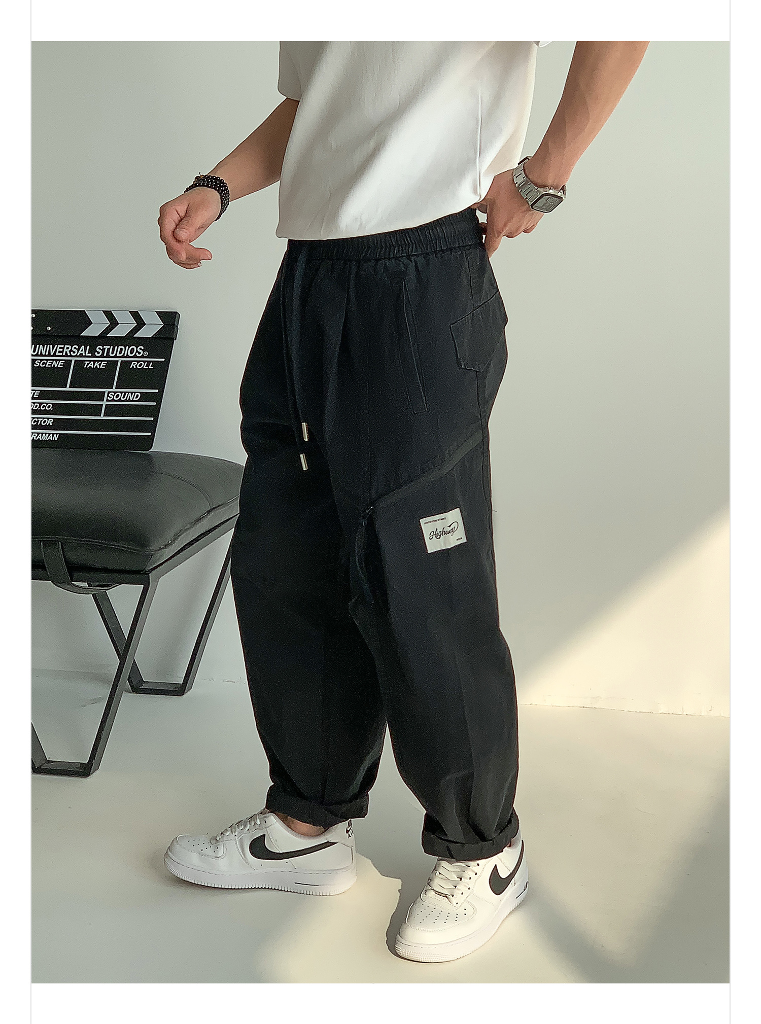 徐太浪松紧腰抽绳休闲裤男2025新款春秋宽松直筒贴标纯棉裤子长裤