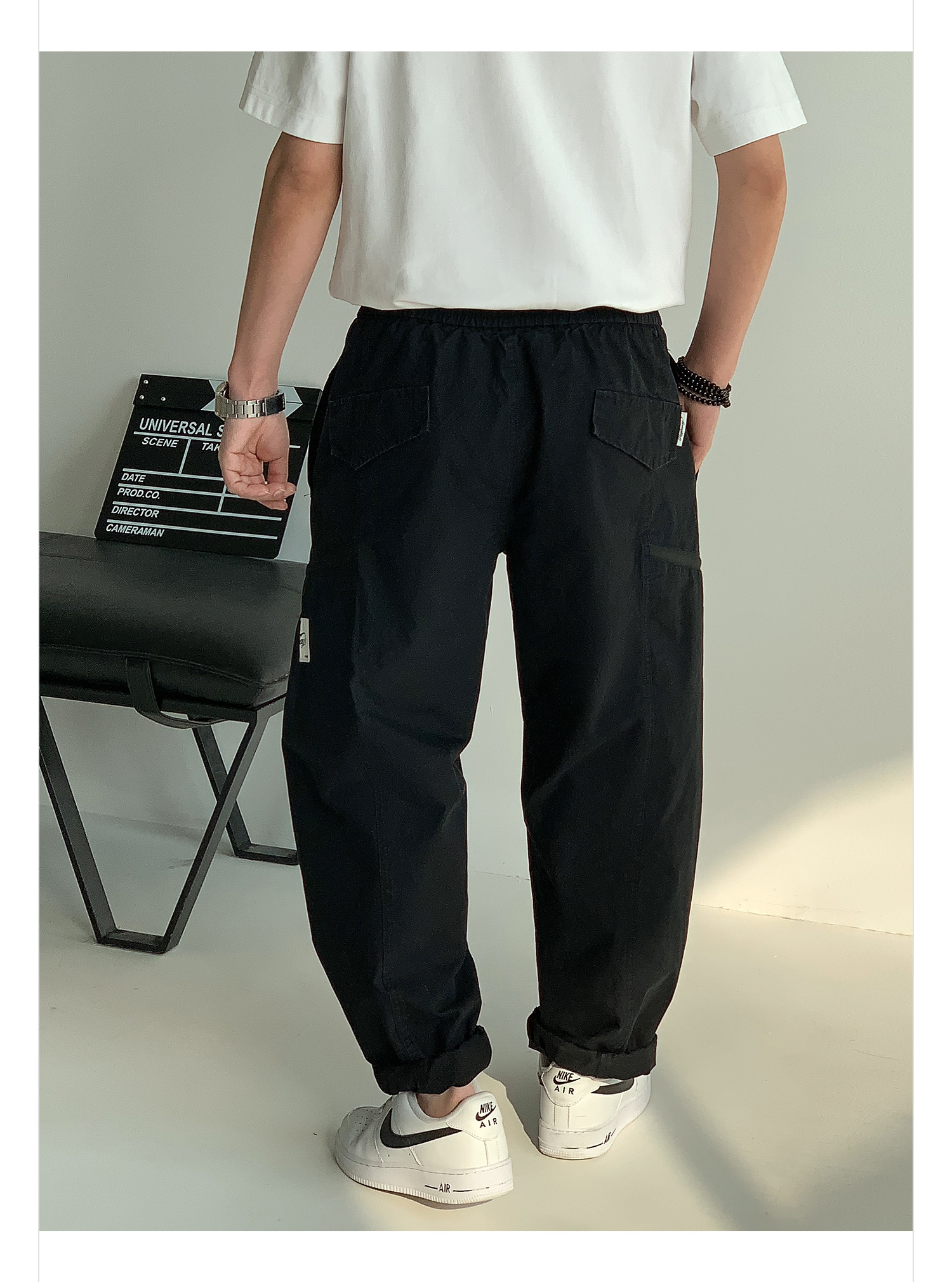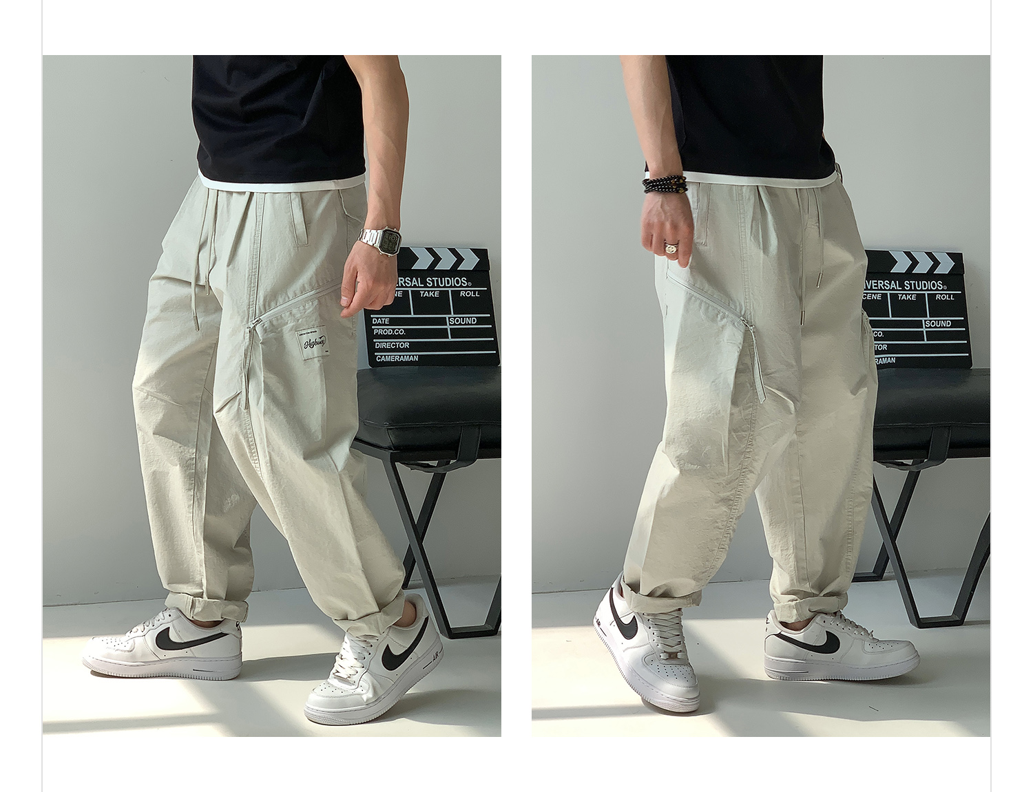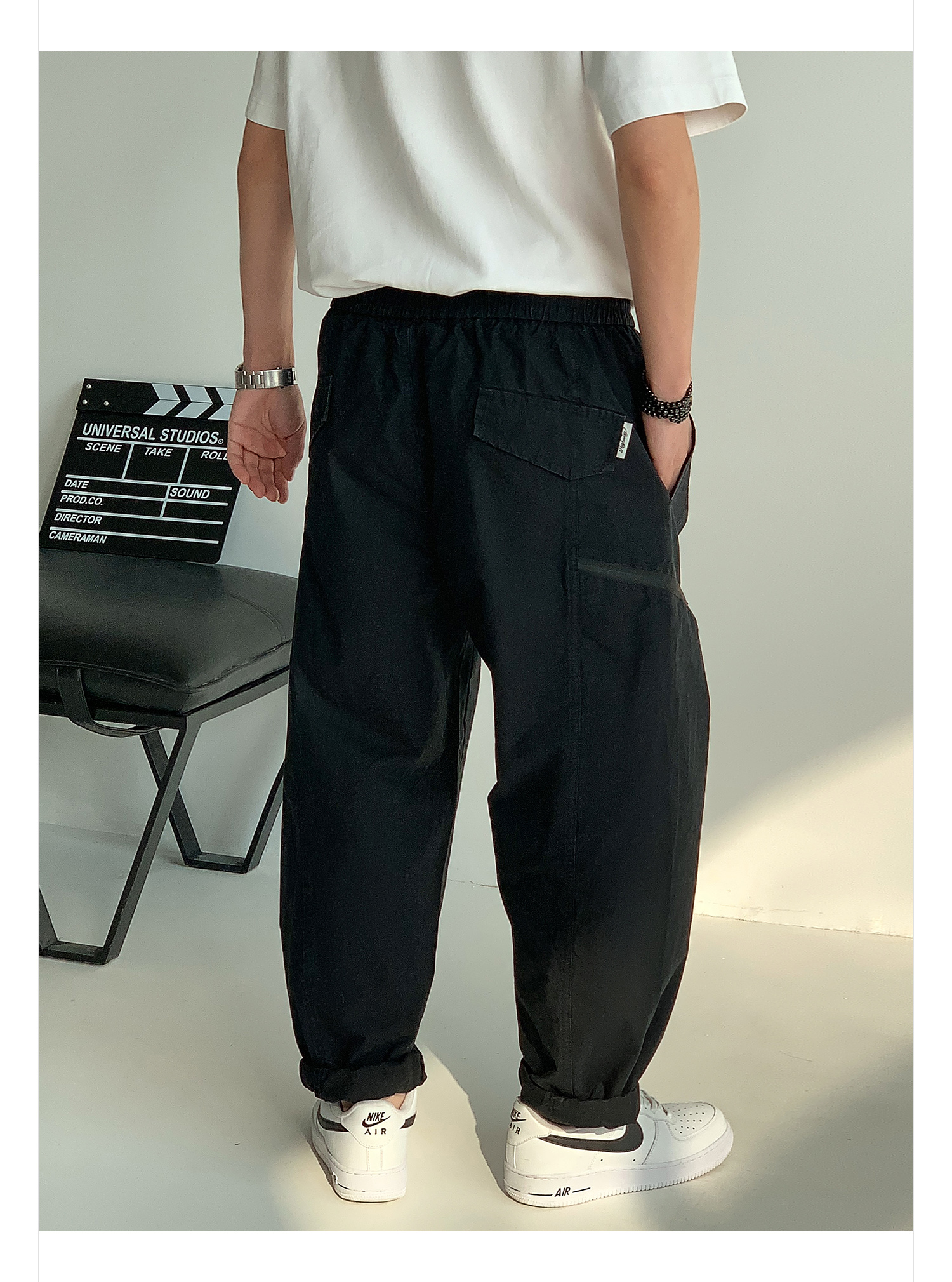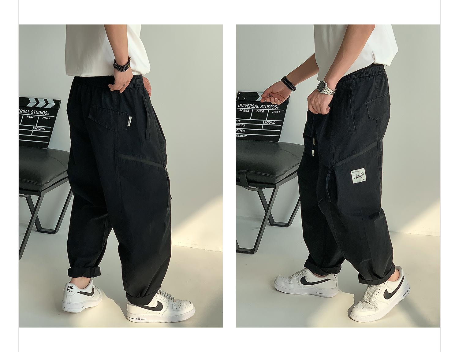 徐太浪松紧腰抽绳休闲裤男2025新款春秋宽松直筒贴标纯棉裤子长裤