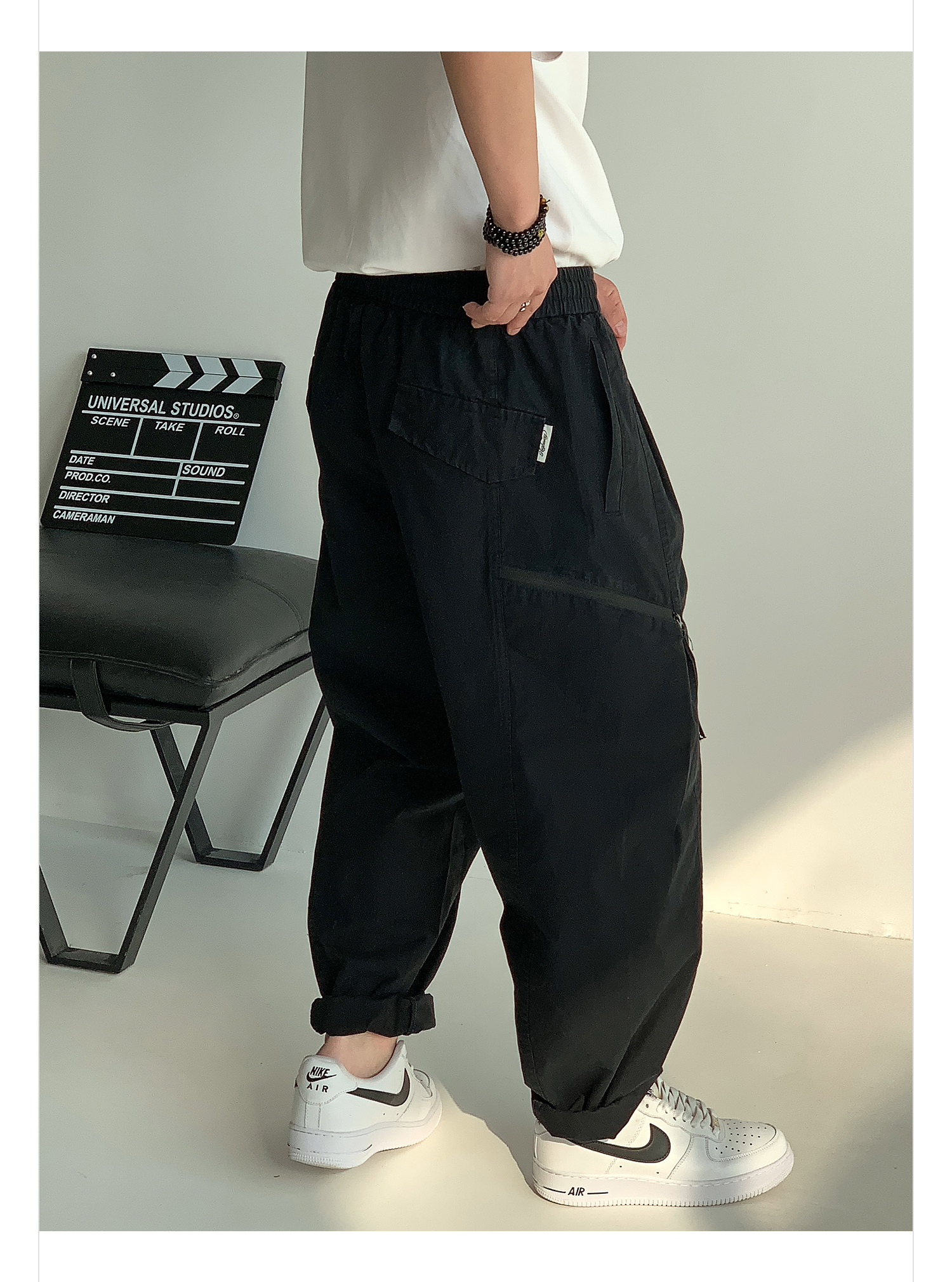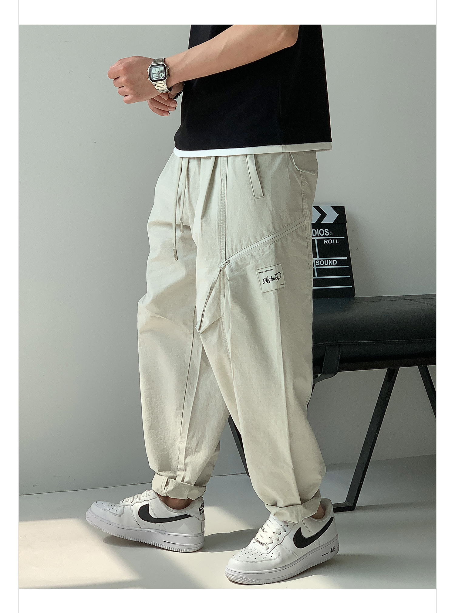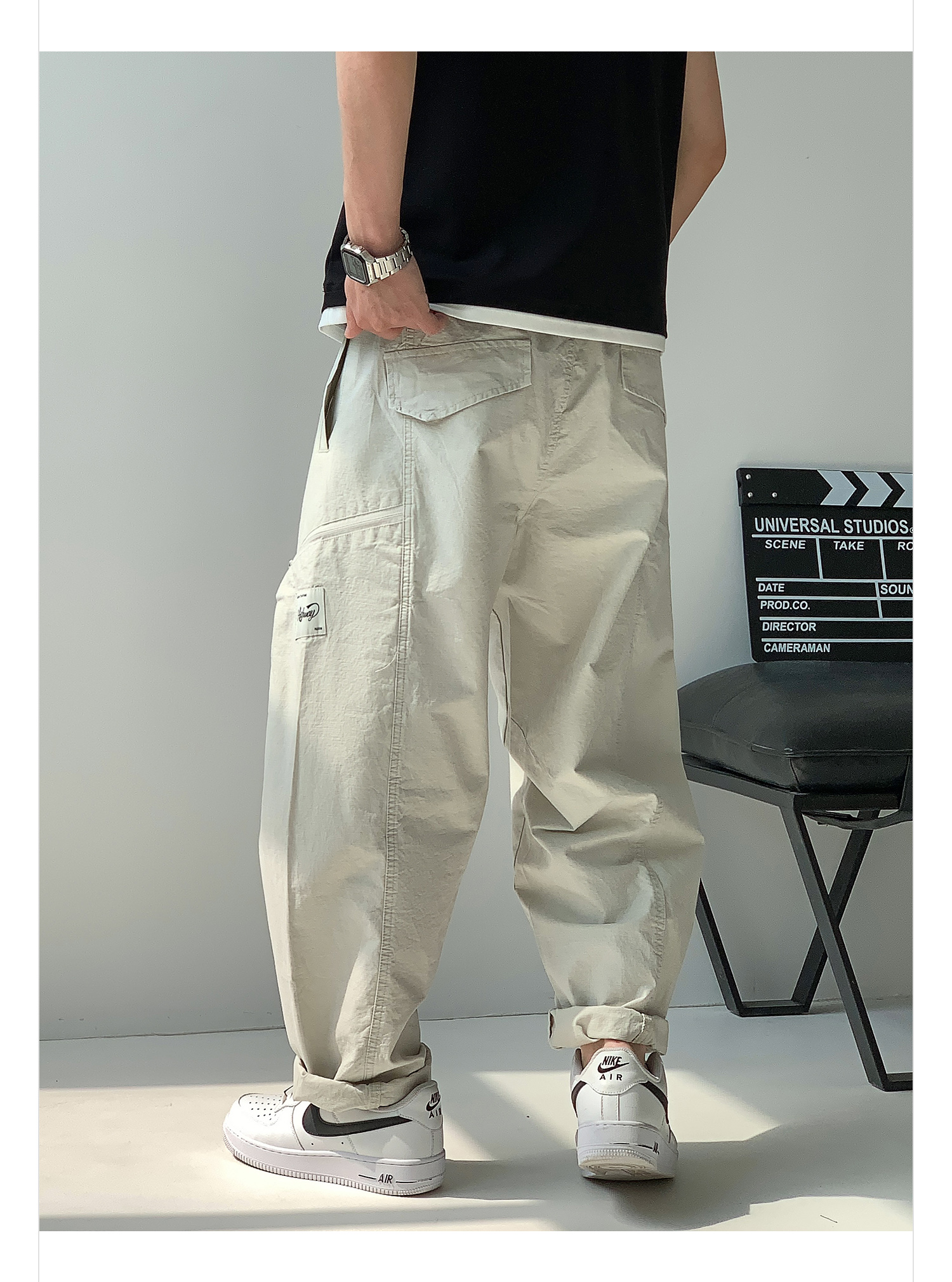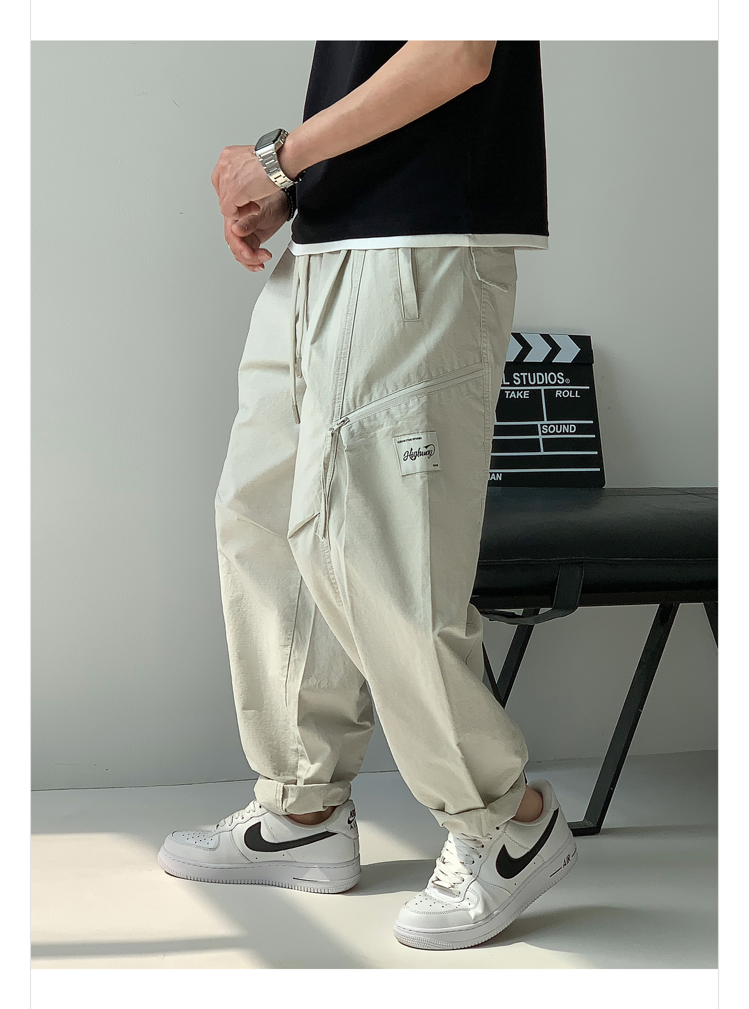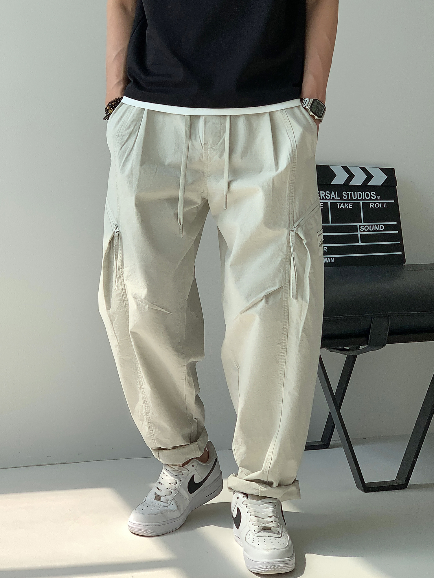 徐太浪松紧腰抽绳休闲裤男2025新款春秋宽松直筒贴标纯棉裤子长裤