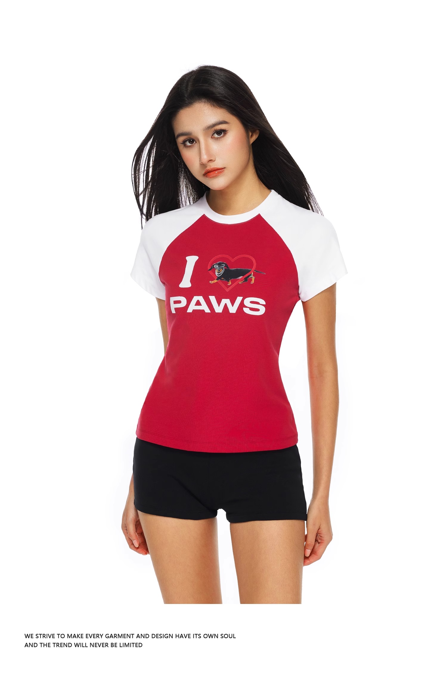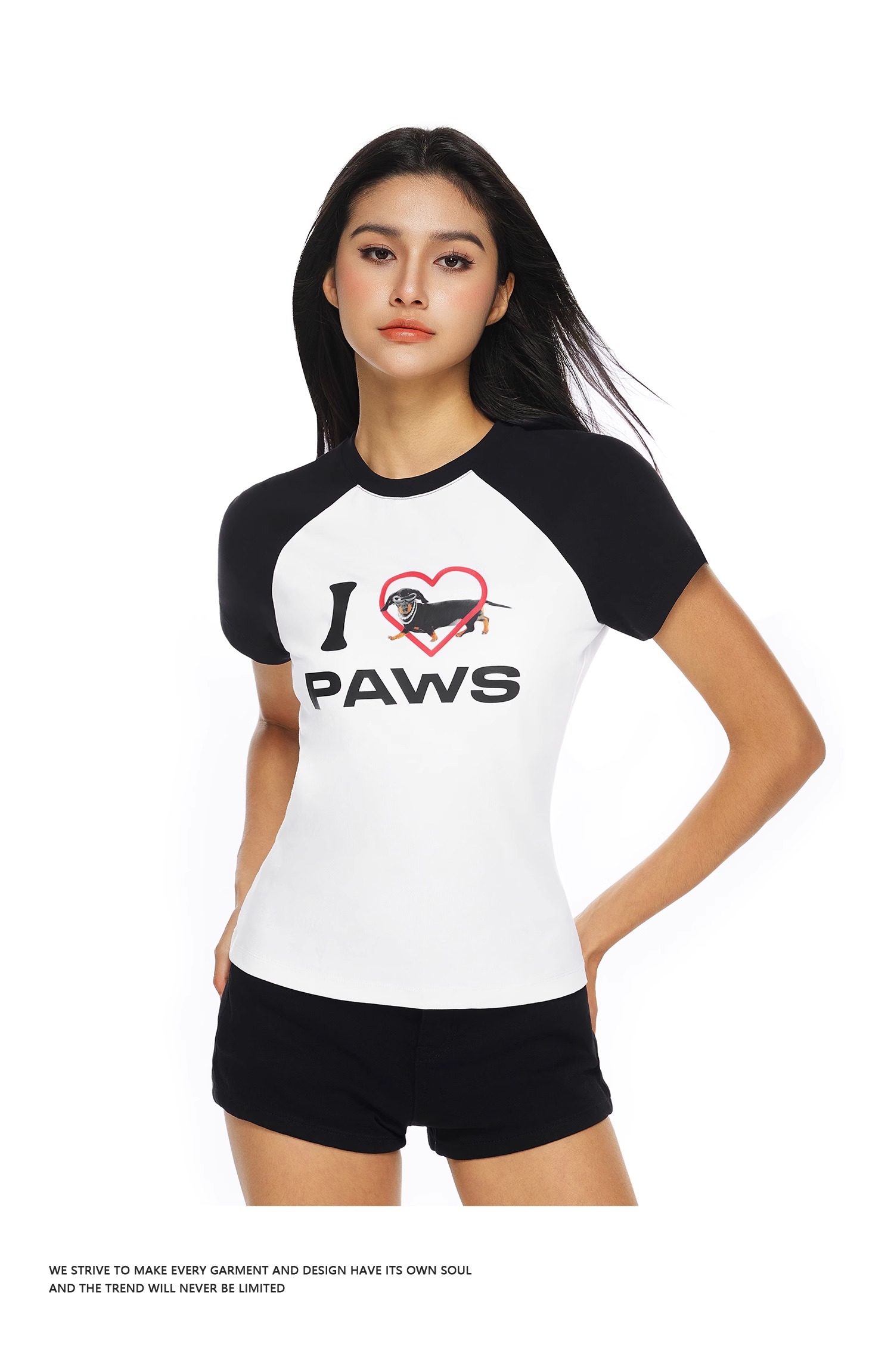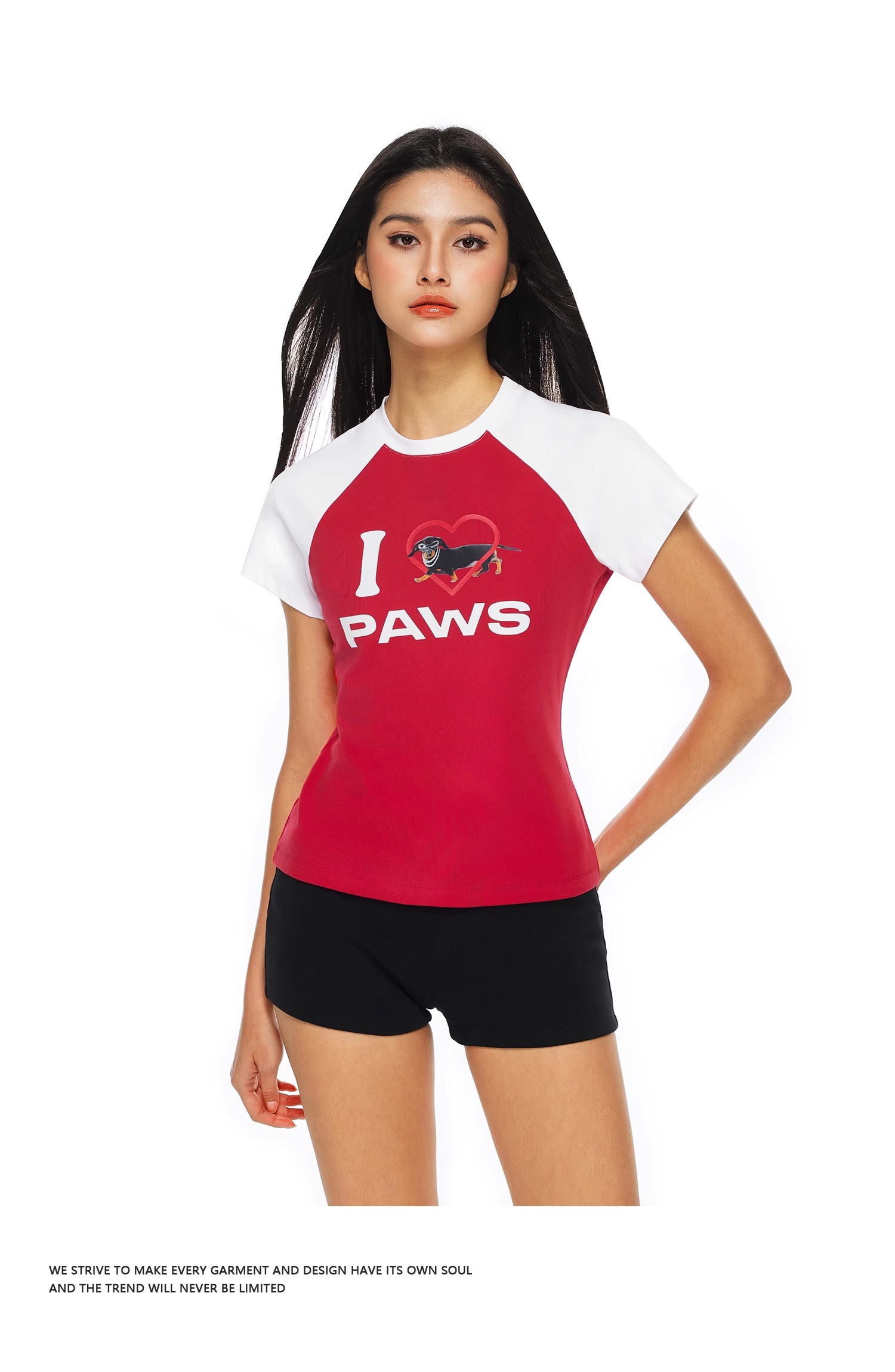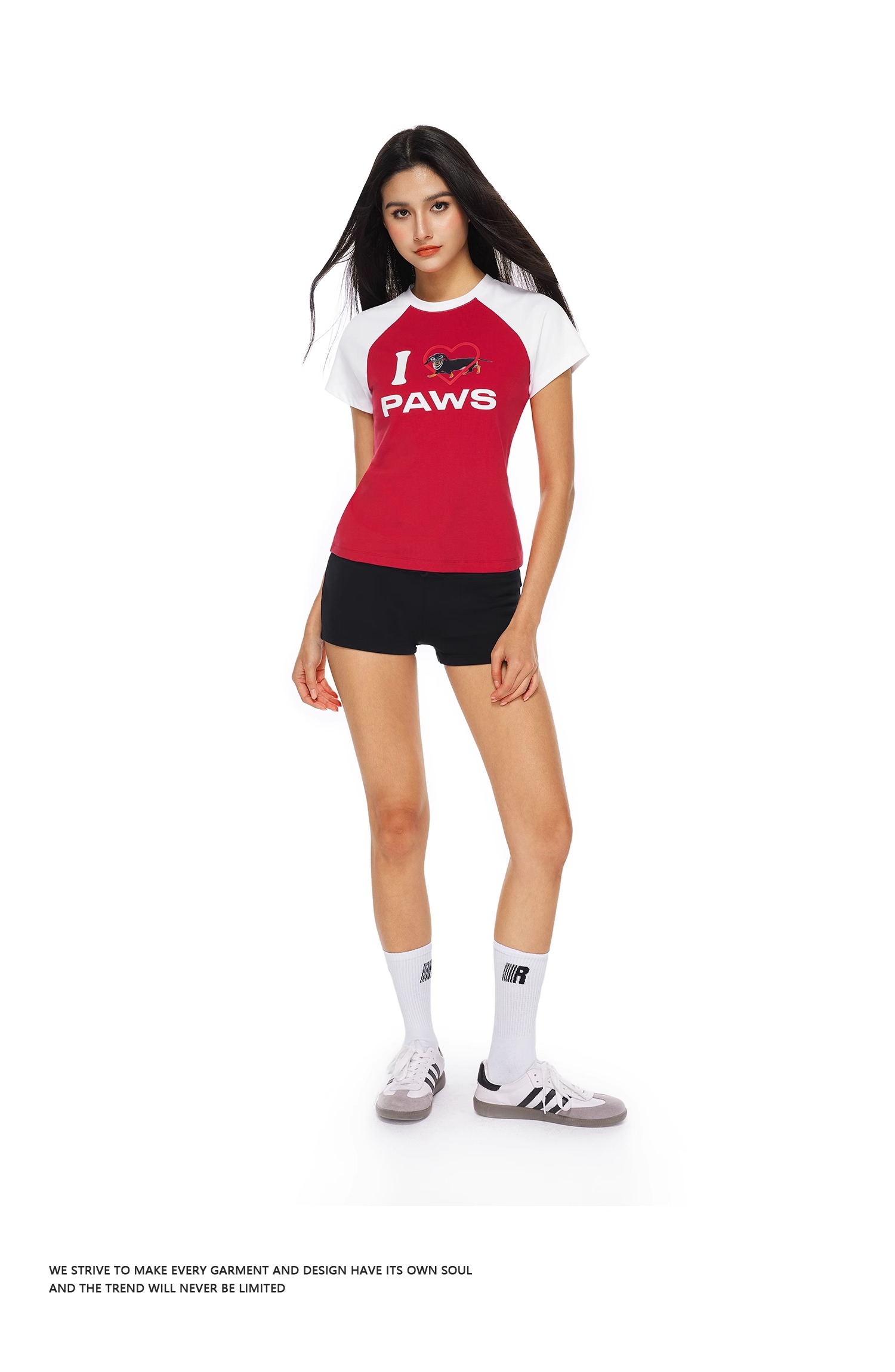 FDR官方店 腊肠狗插肩撞色短袖t恤女夏季修身显瘦短款上衣体恤