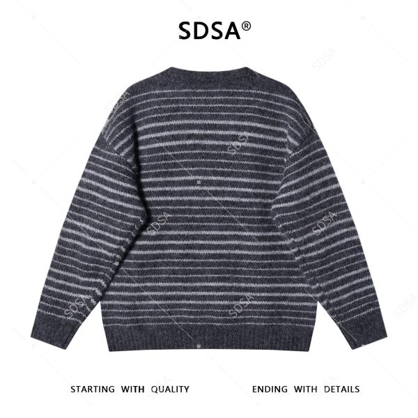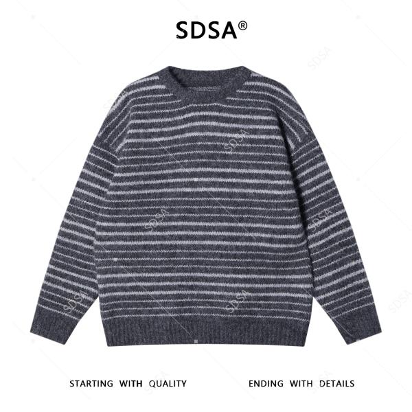 SDSA男士秋冬新款痞帅男装潮牌简约撞色条纹圆领针织衫毛衣百搭