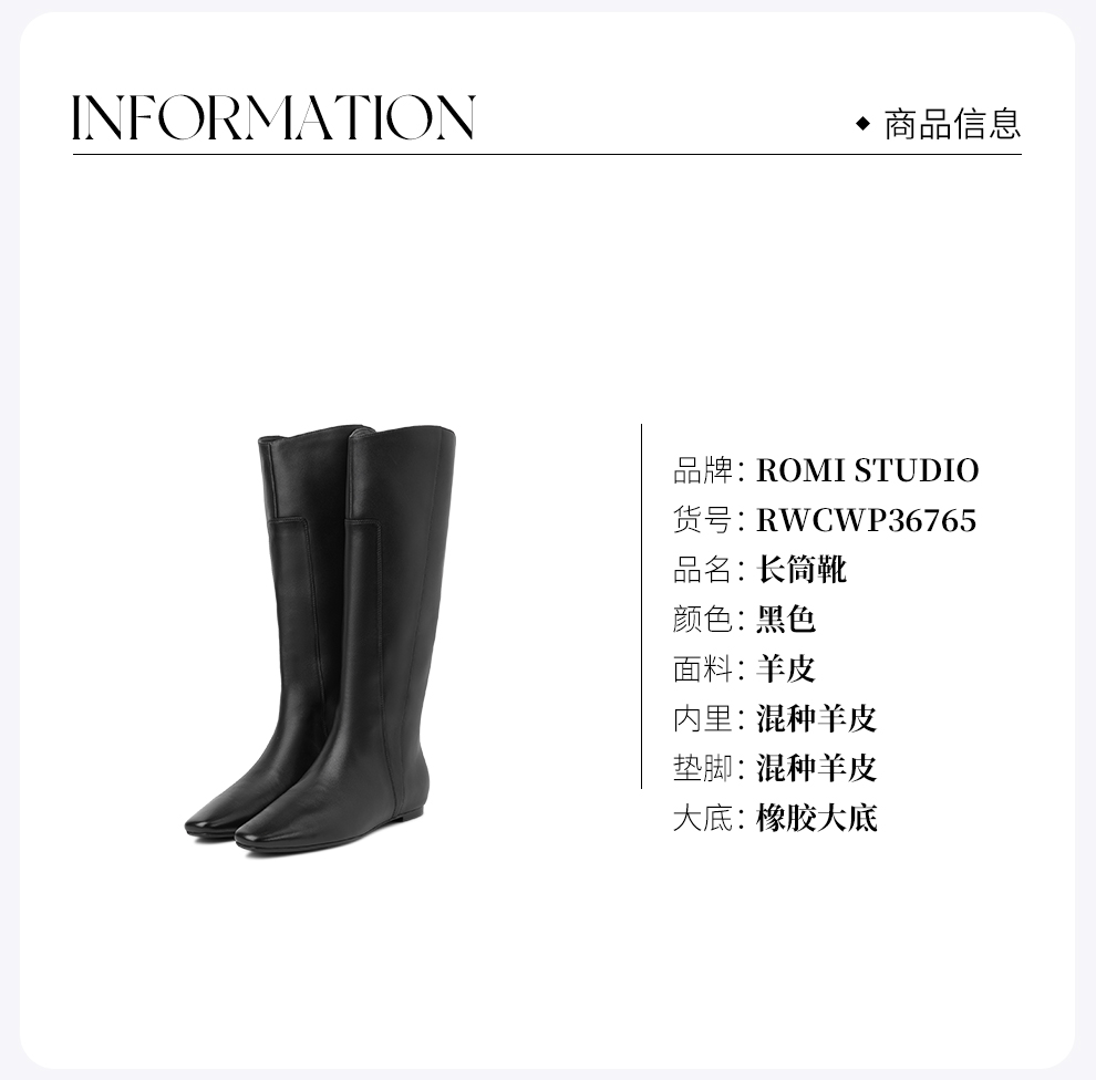 ROMI STUDIO“简约复古”羊皮舒适柔软不及膝方头高筒靴 RWCWP36765