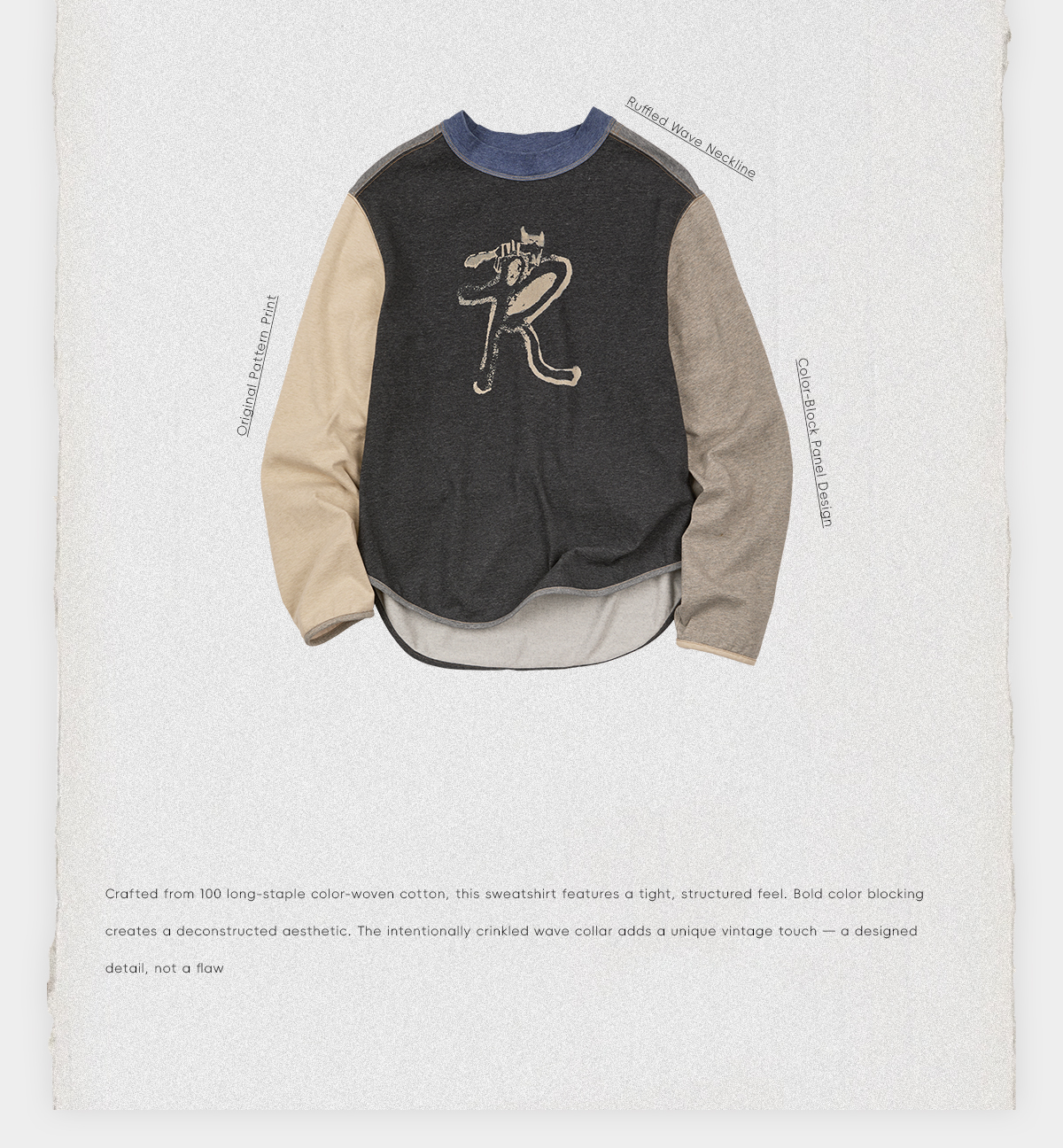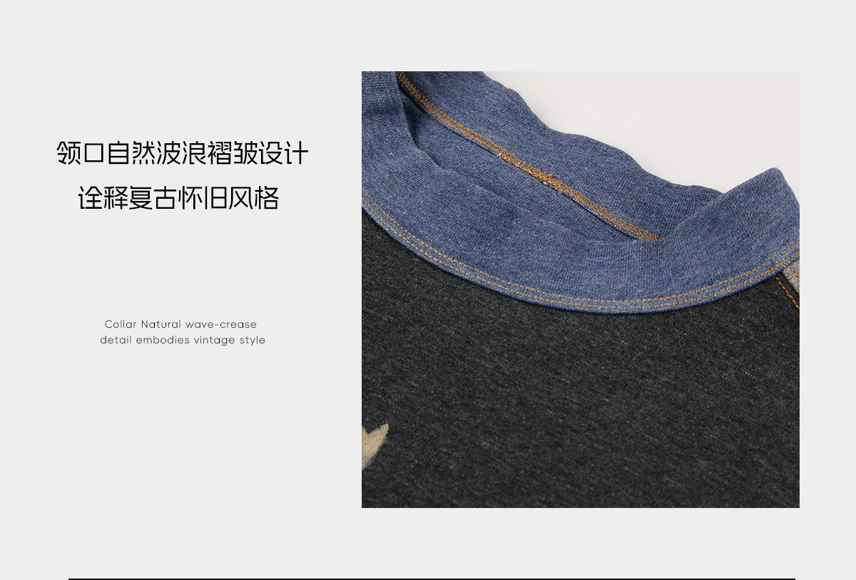 ROMI STUDIO"美式复古"色纺花纱撞色印花圆领套头卫衣 RWCASY6510