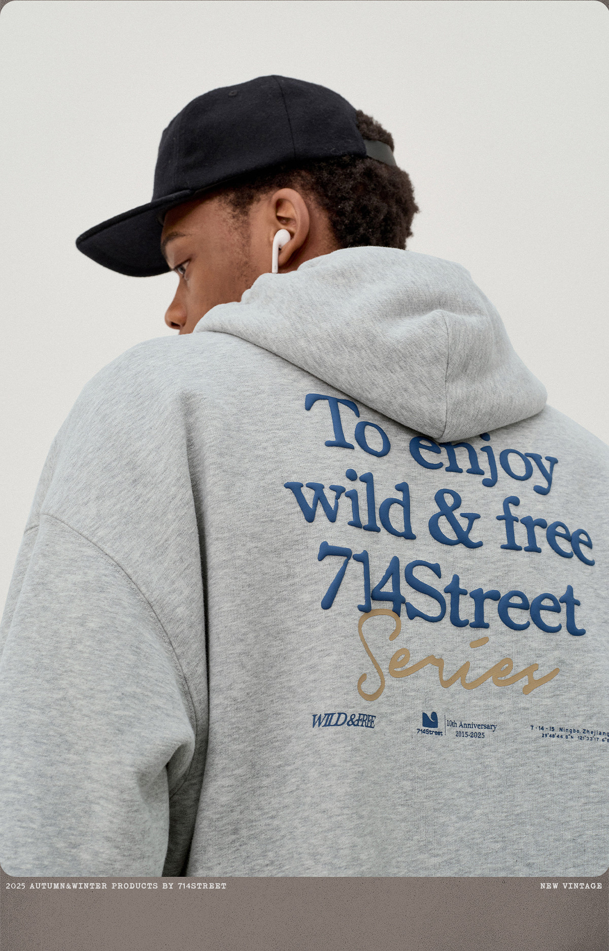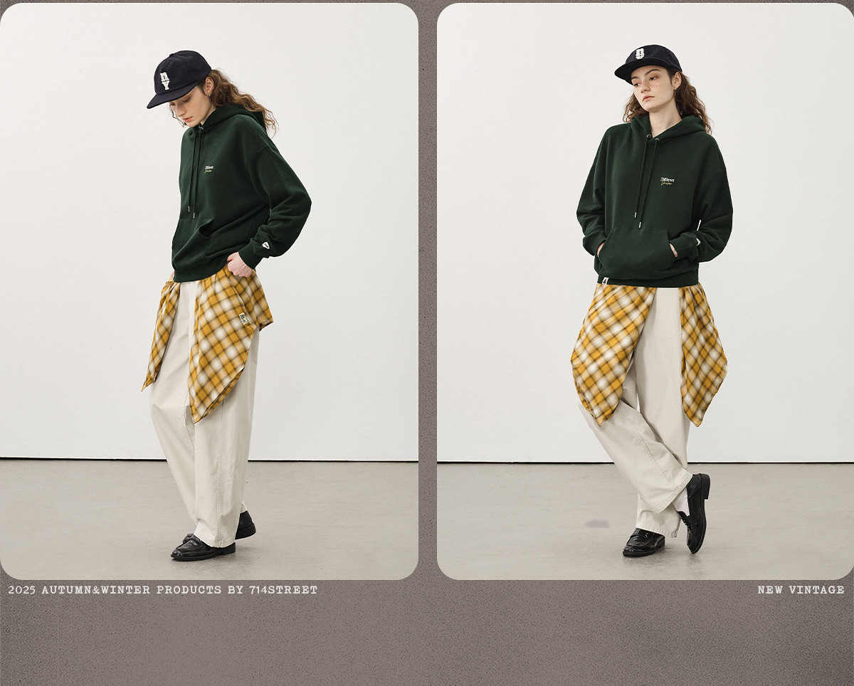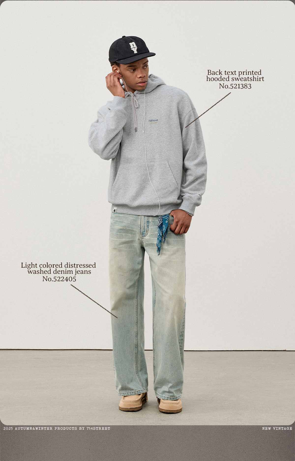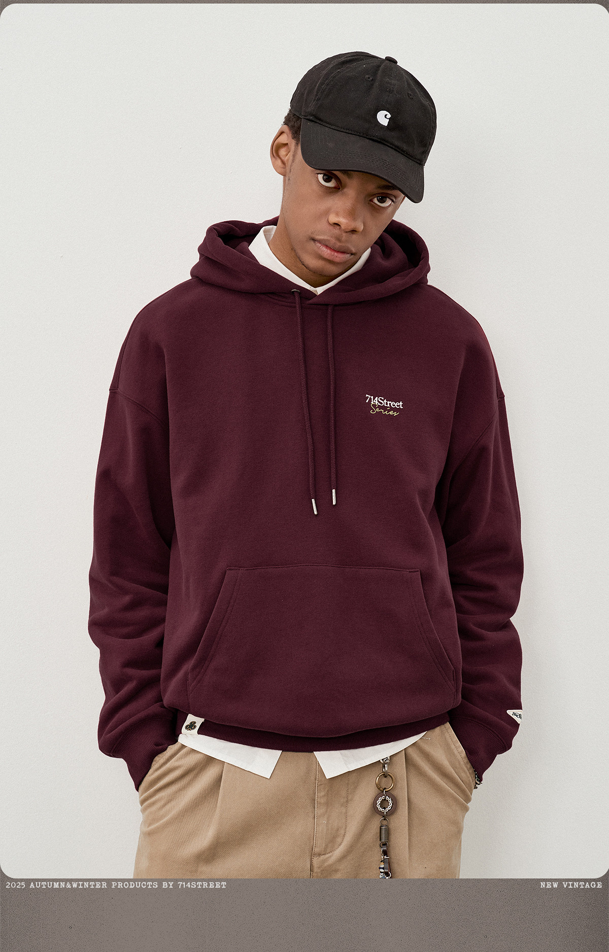 714street美式复古印花加绒连帽卫衣男2025秋冬款情侣装宽松帽衫