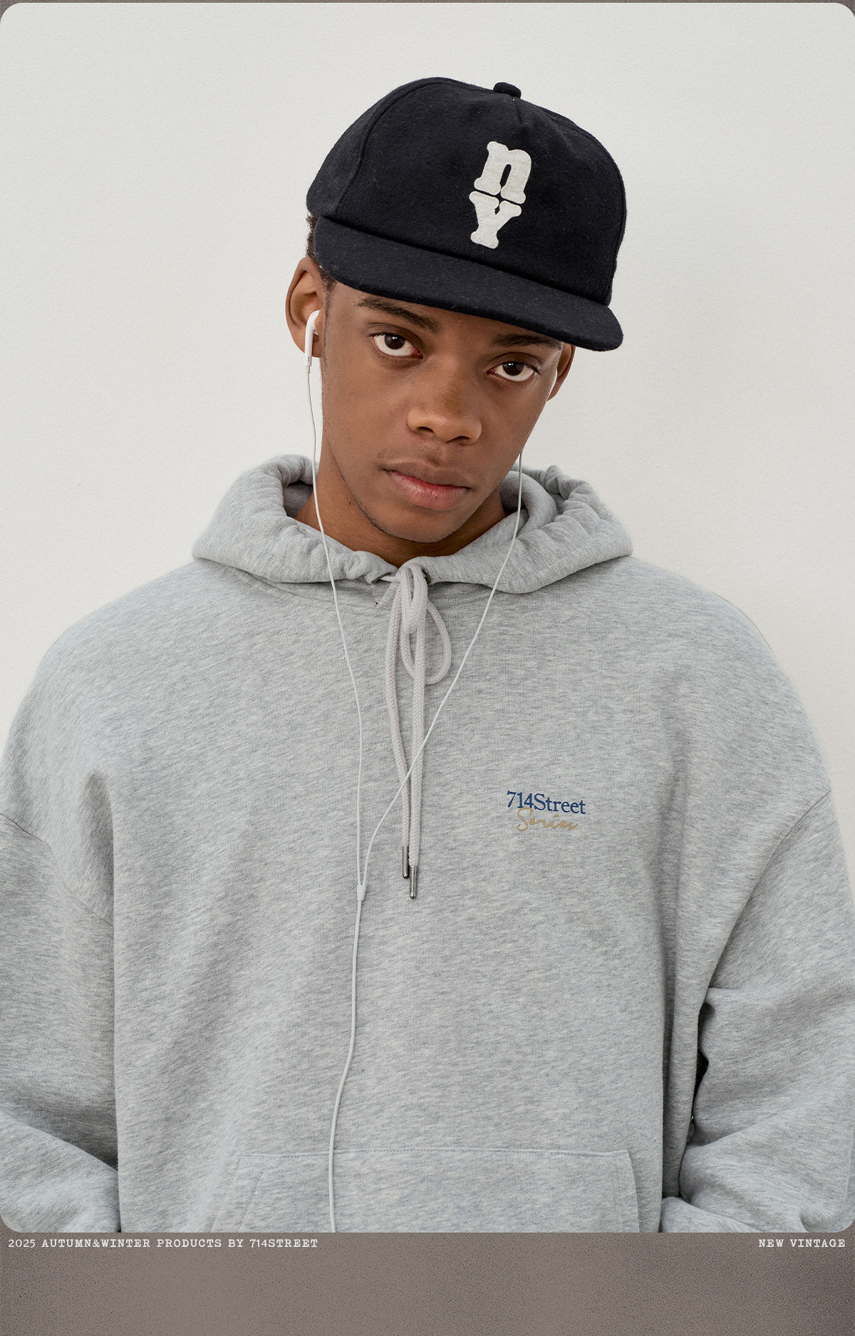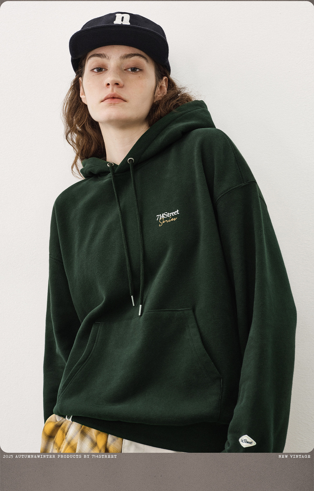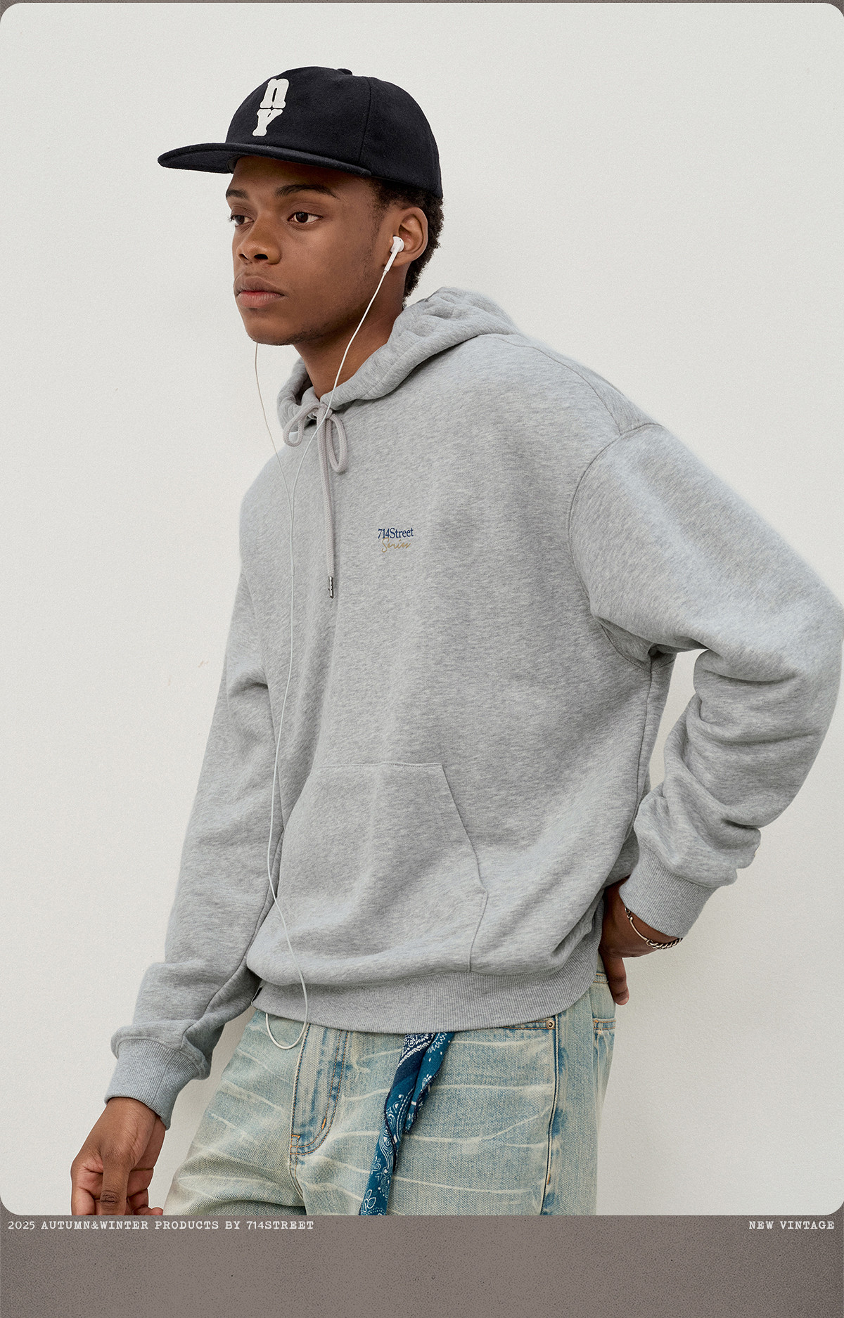 714street美式复古印花加绒连帽卫衣男2025秋冬款情侣装宽松帽衫