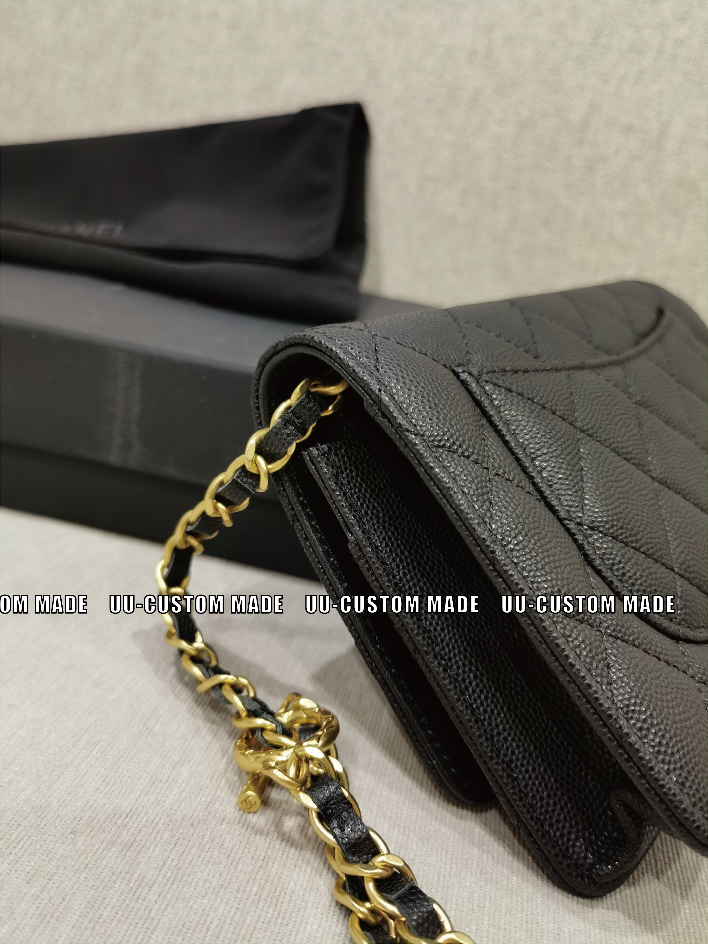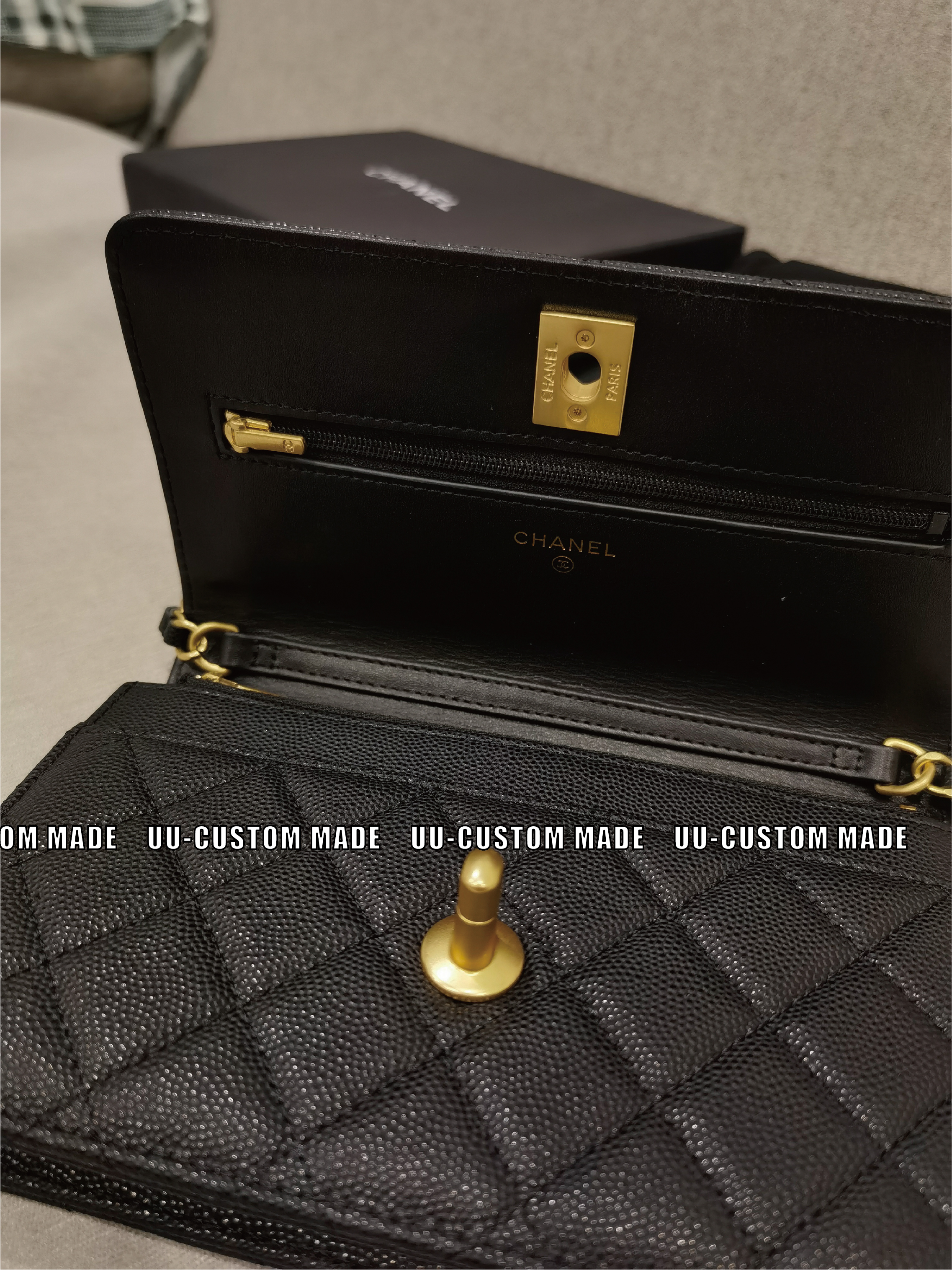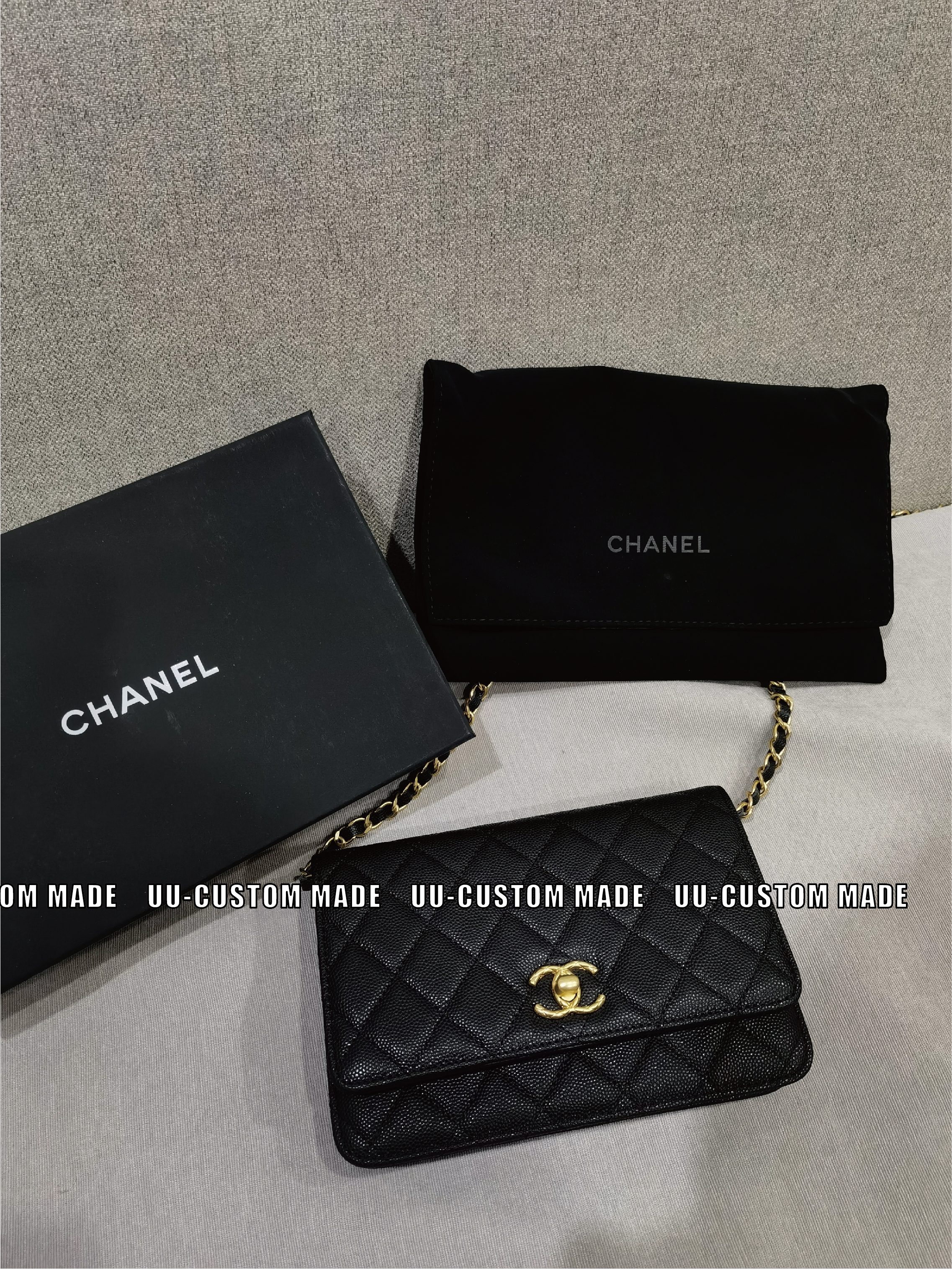 鱼籽酱原版小牛皮,高端订制厚真金电镀加做旧工艺五金件。简约大方耐看,又有设计感。链条长短可调,很实用。有菱格纹的双C五金吊坠非常出彩!全套专柜同级包装。小号:长17高10.5厚4cm。大号:长19高12.5厚4