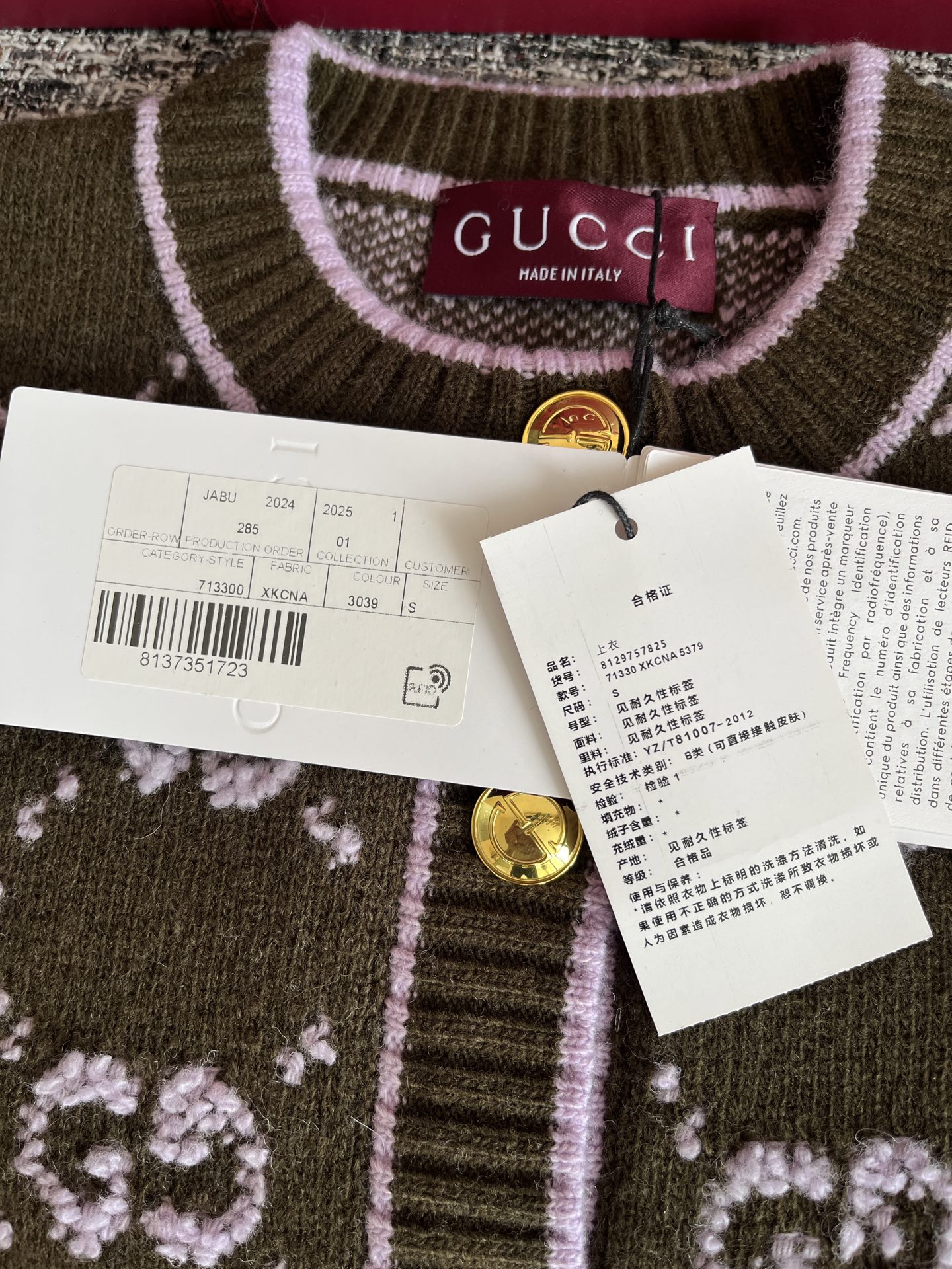Gucci古驰 25秋冬新款针织外套🐮17000购买Zp拆解打造,订织订染美利奴进口面料🐮真正用到100%羊毛纱线织布做到对版出货💪工艺放大看细节除还原度接近98以上 做工也无敌了🔥真正做到1:1还原 直接闭着眼购买👀码数:S M L