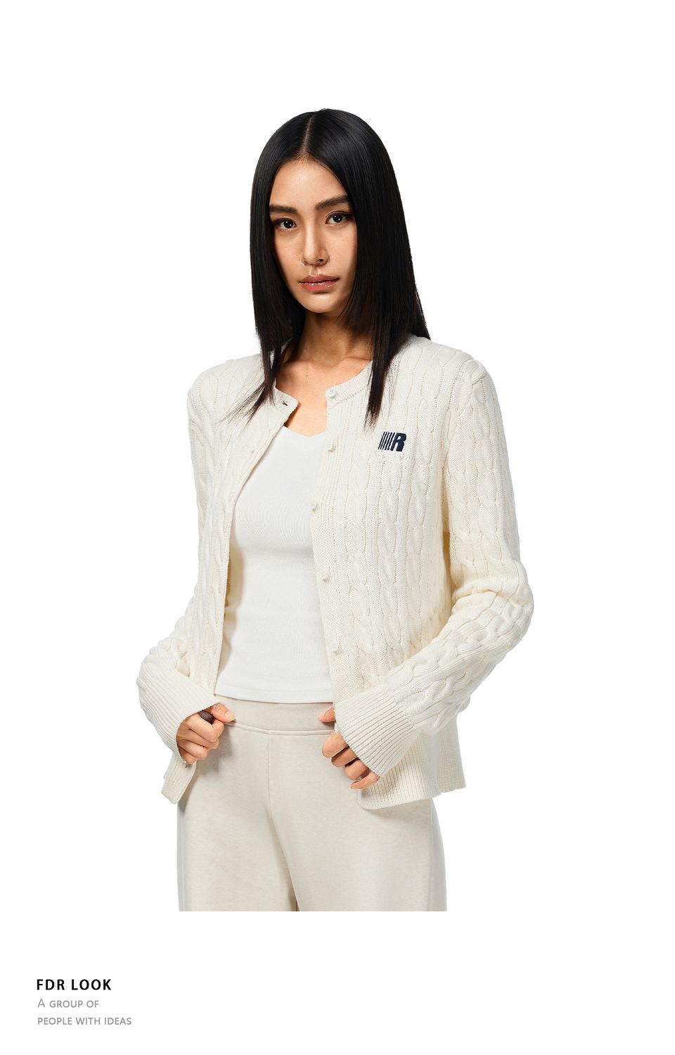 FDR 麻花纹针织开衫慵懒风修身显瘦毛衣
