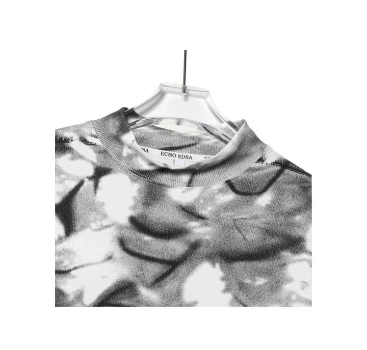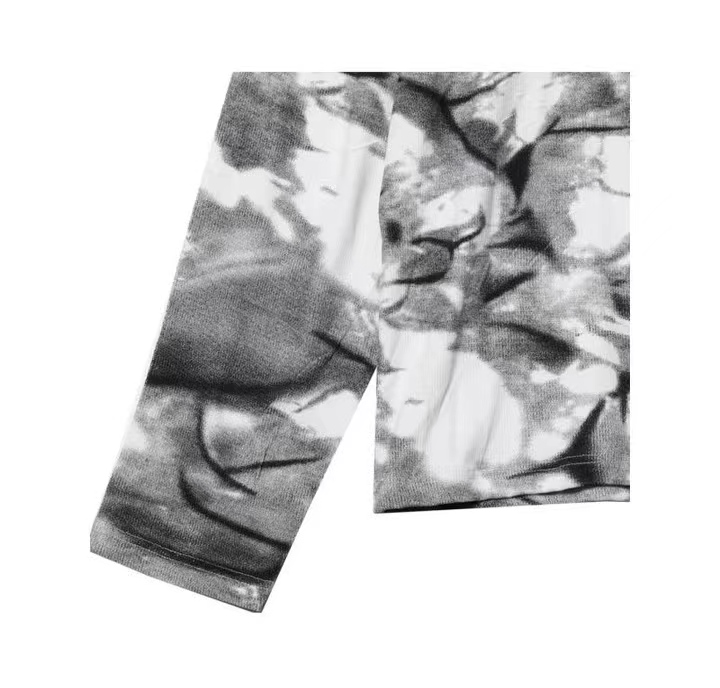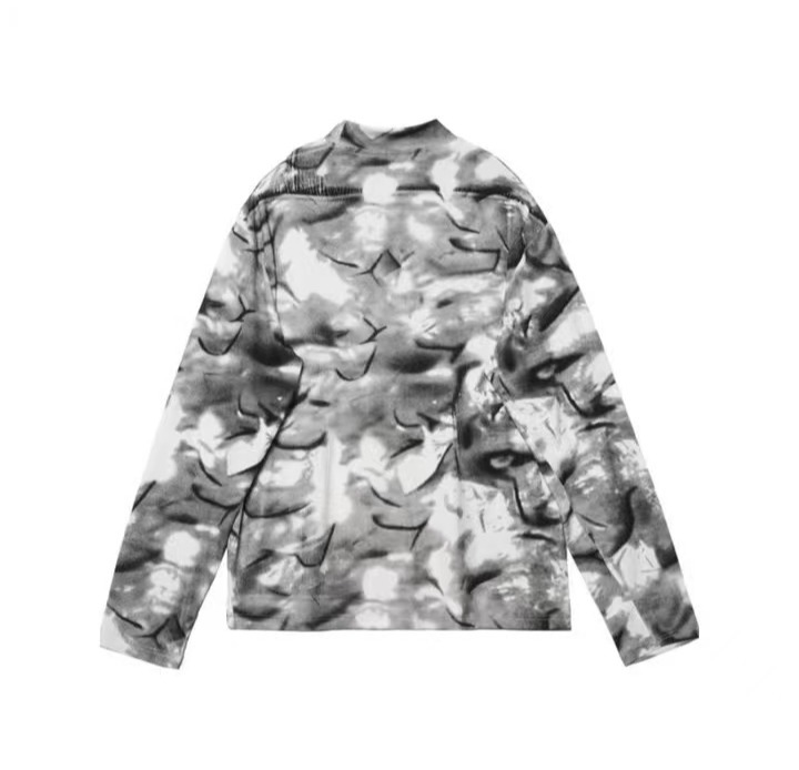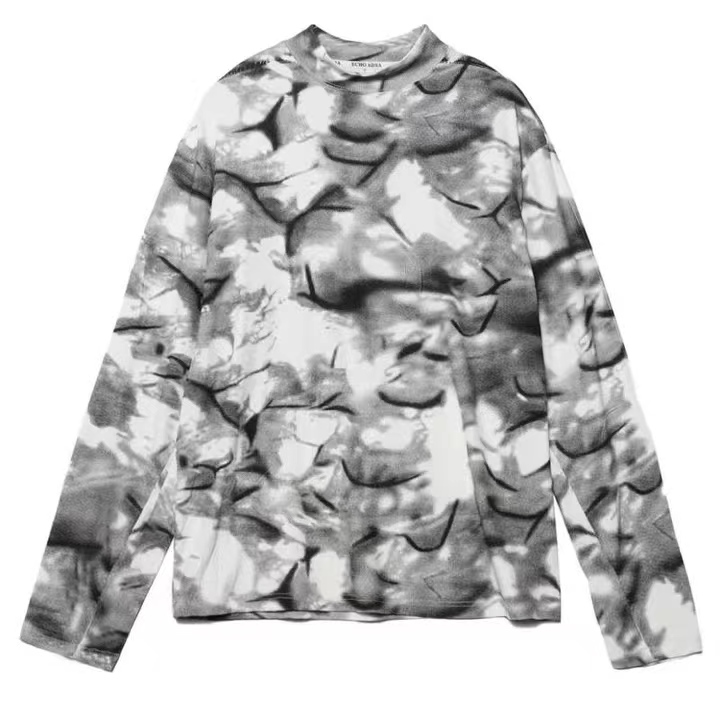 T423秋冬新款渐变水墨印染圆领长袖打底衫宽松休闲百搭潮流T恤