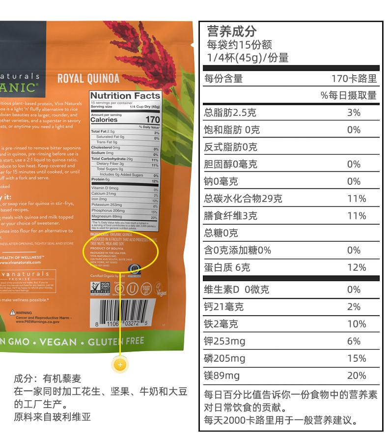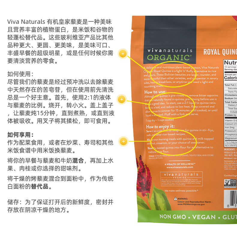 viva美国进口玻利维亚高原有机藜麦米680g无糖轻食五谷杂粮原味