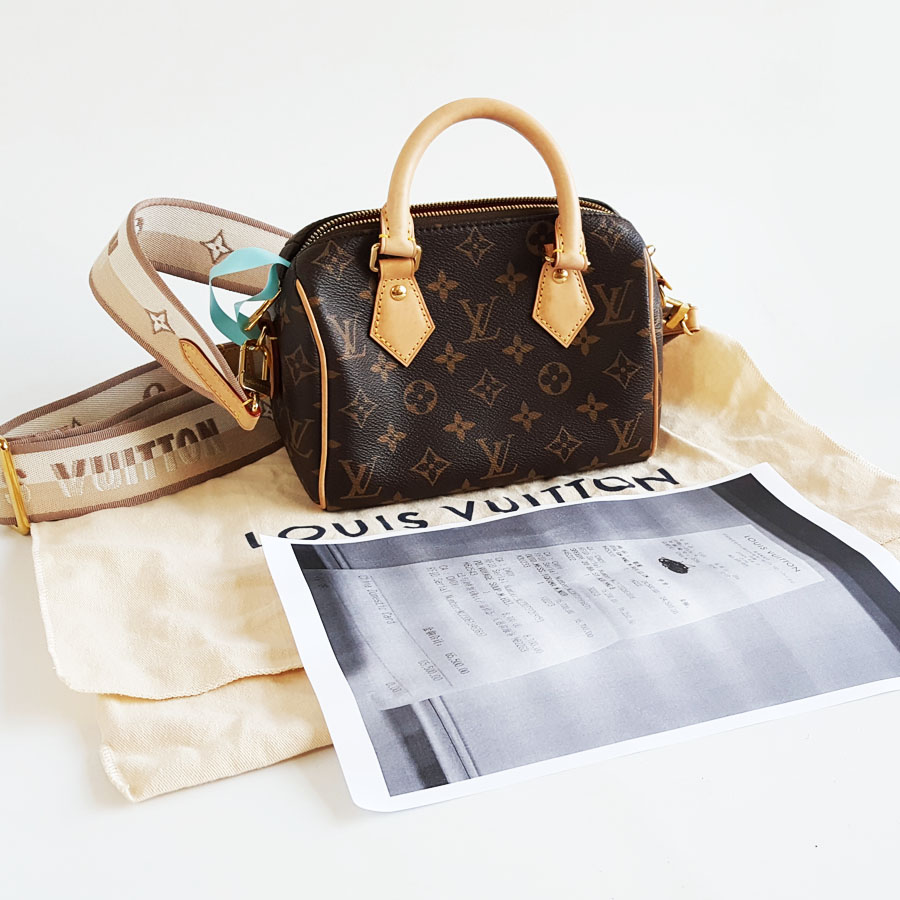 款式 | 老花奶茶色肩带Speedy 20手提单肩包 |
