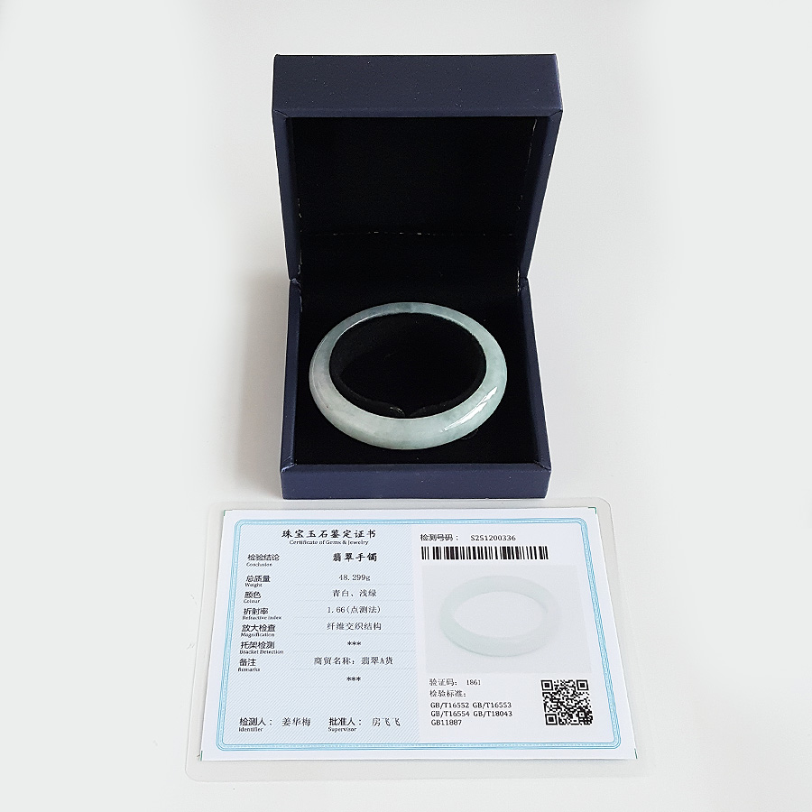 名称 | 天然细腻青白渐变糯种55号贵妃翡翠手镯 |