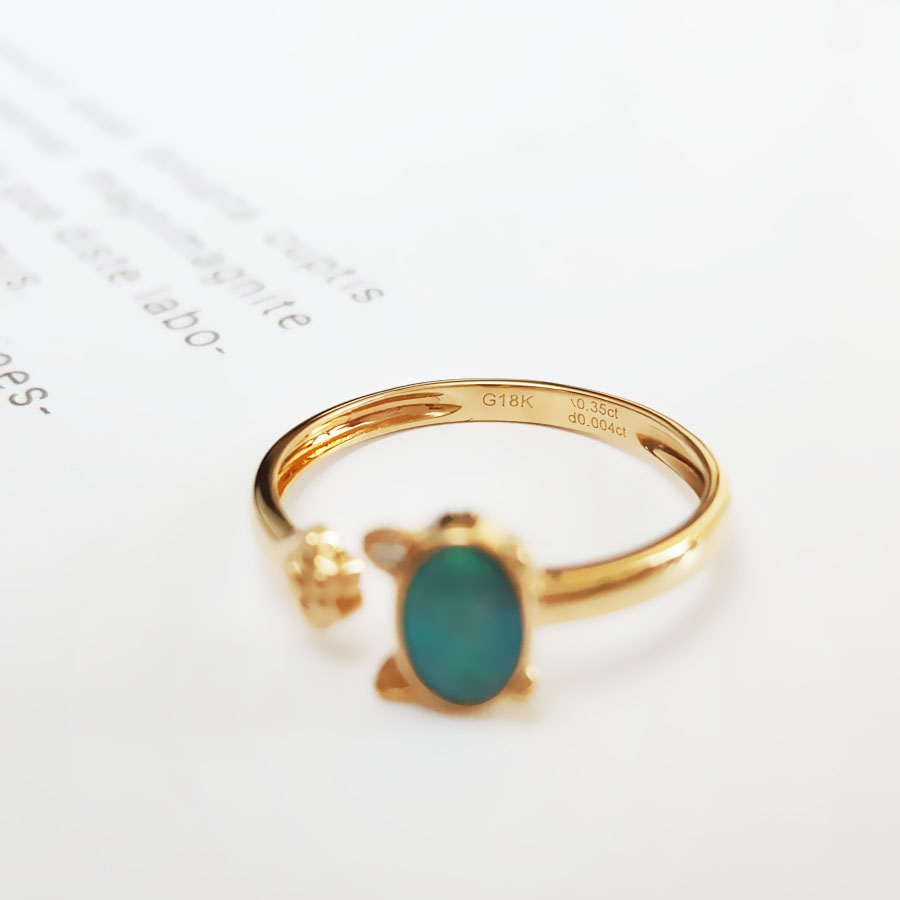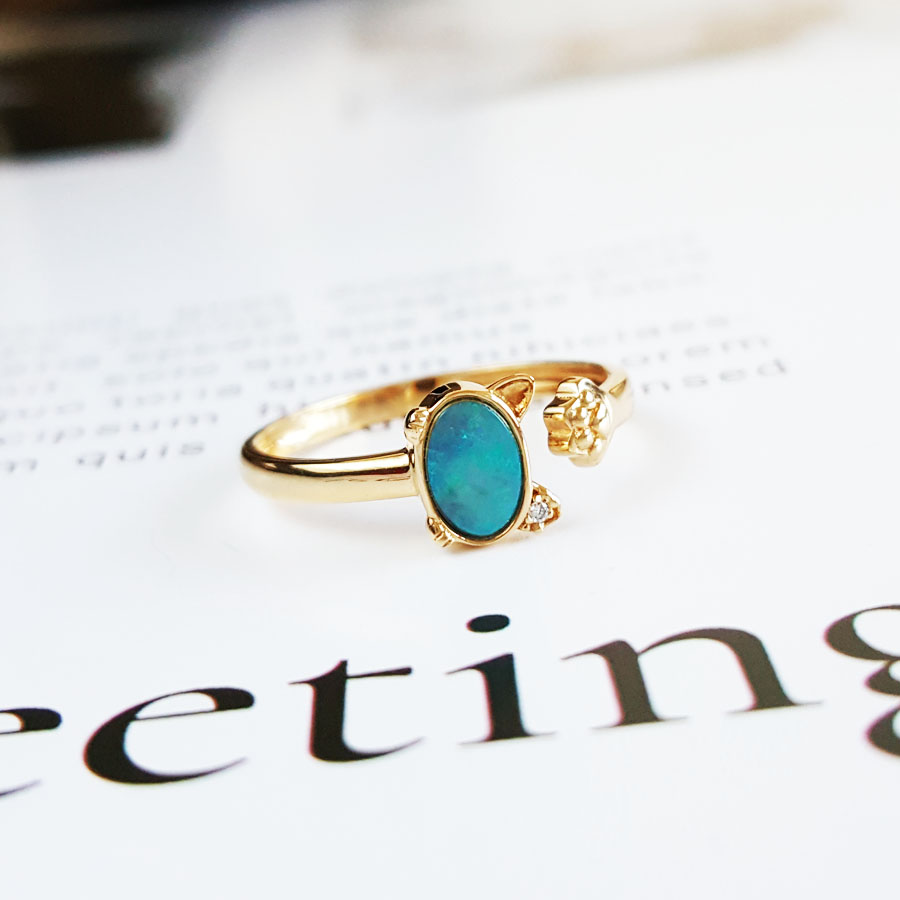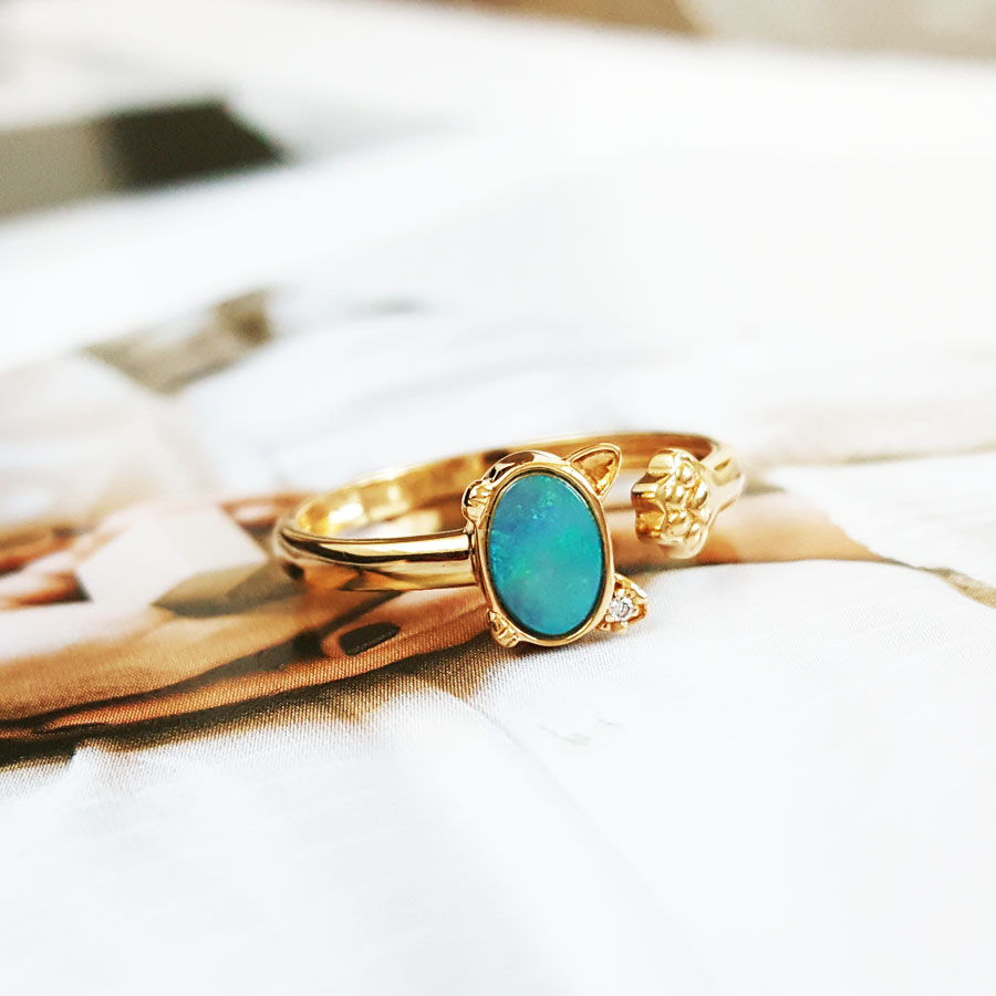 名称 | AU750黄金镶钻镶天然约0.35克拉欧泊猫咪造型开口戒指 |