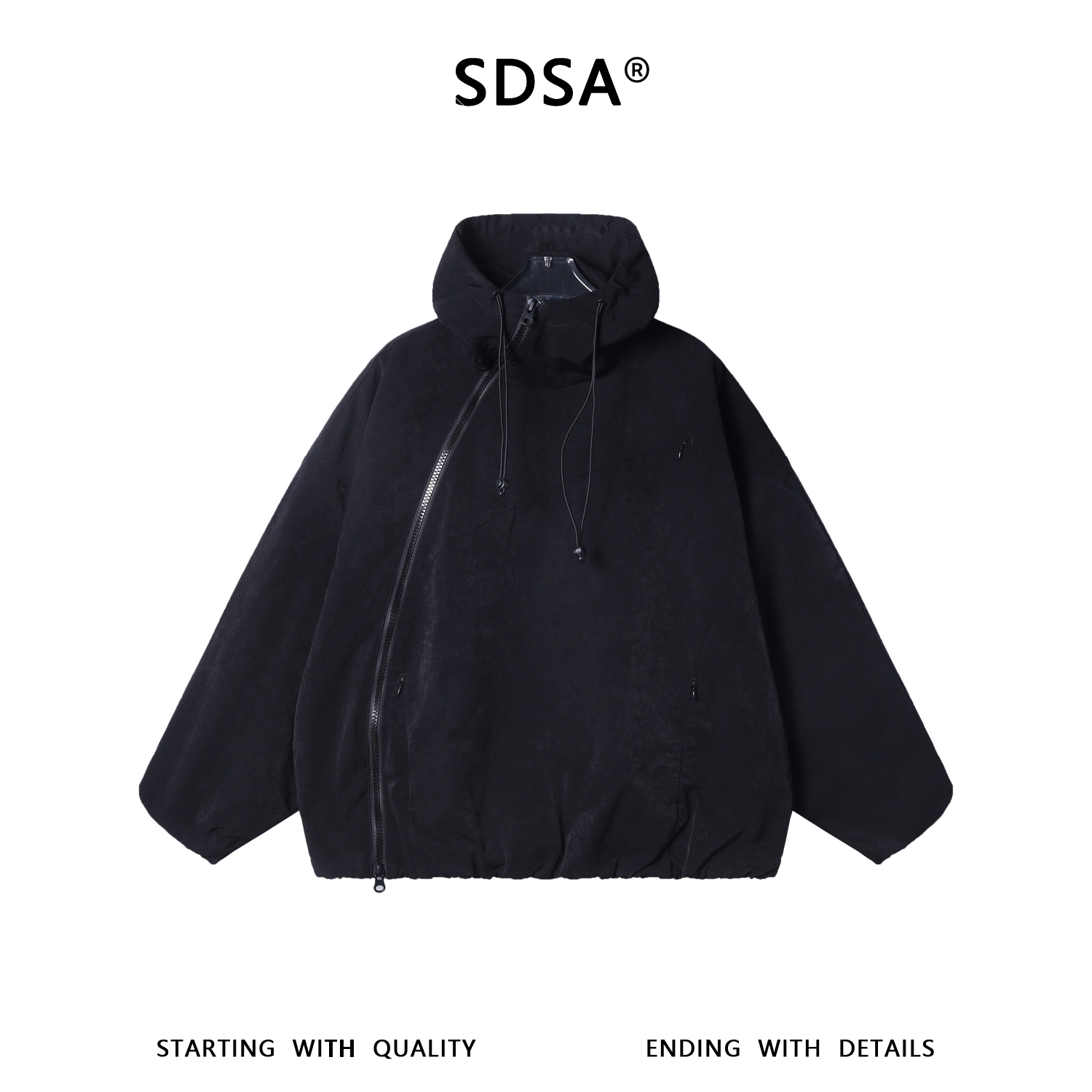 W2770SDSA男士秋冬新款痞帅男装韩版纯色斜拉链设计连帽夹克外套百搭