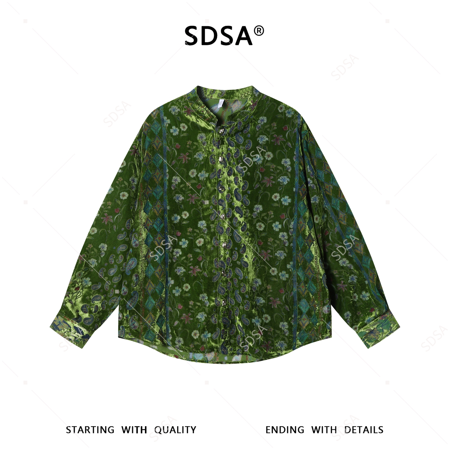 26CS61SDSA男装2026新款高贵轻奢痞帅风植绒花卉立领长袖衬衫百搭宽松