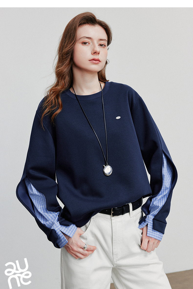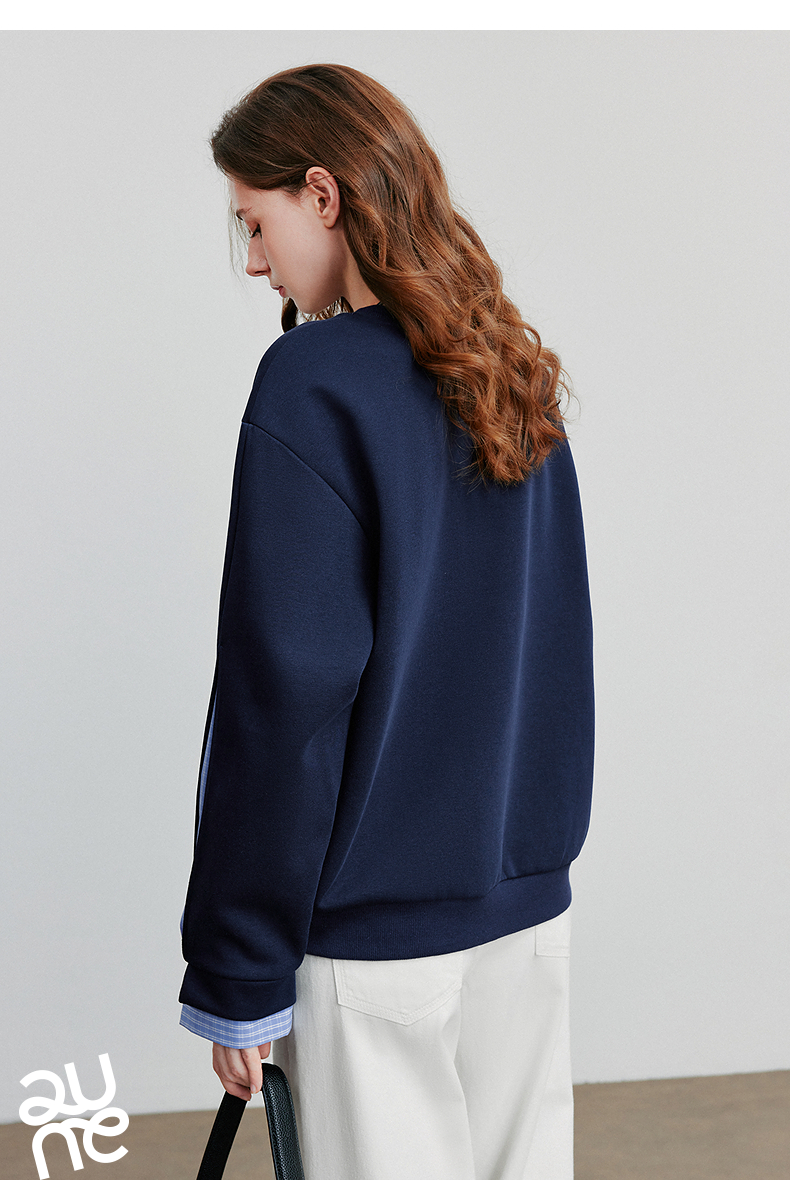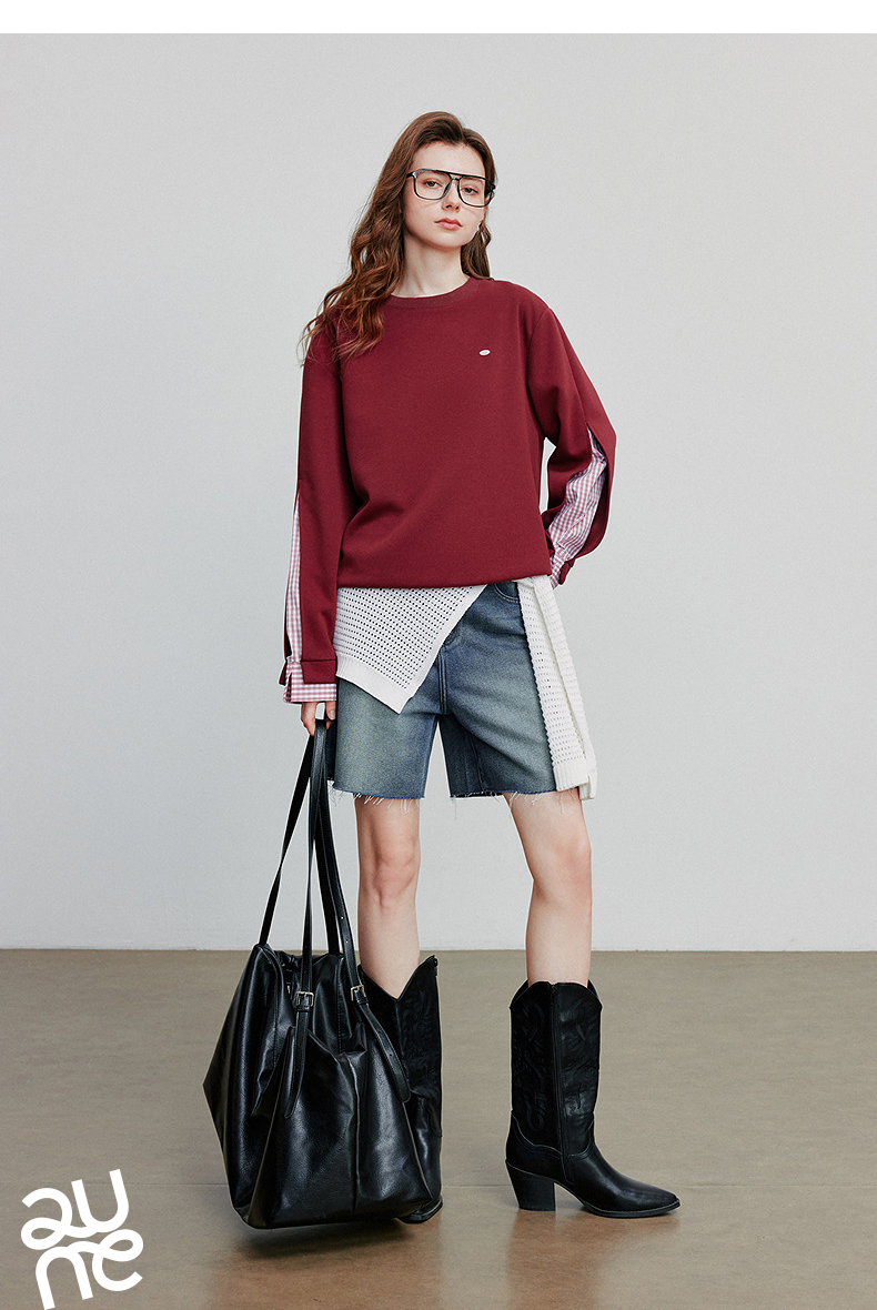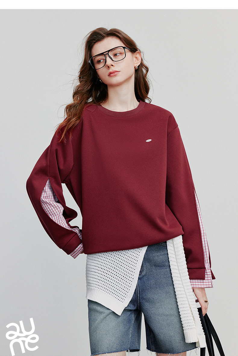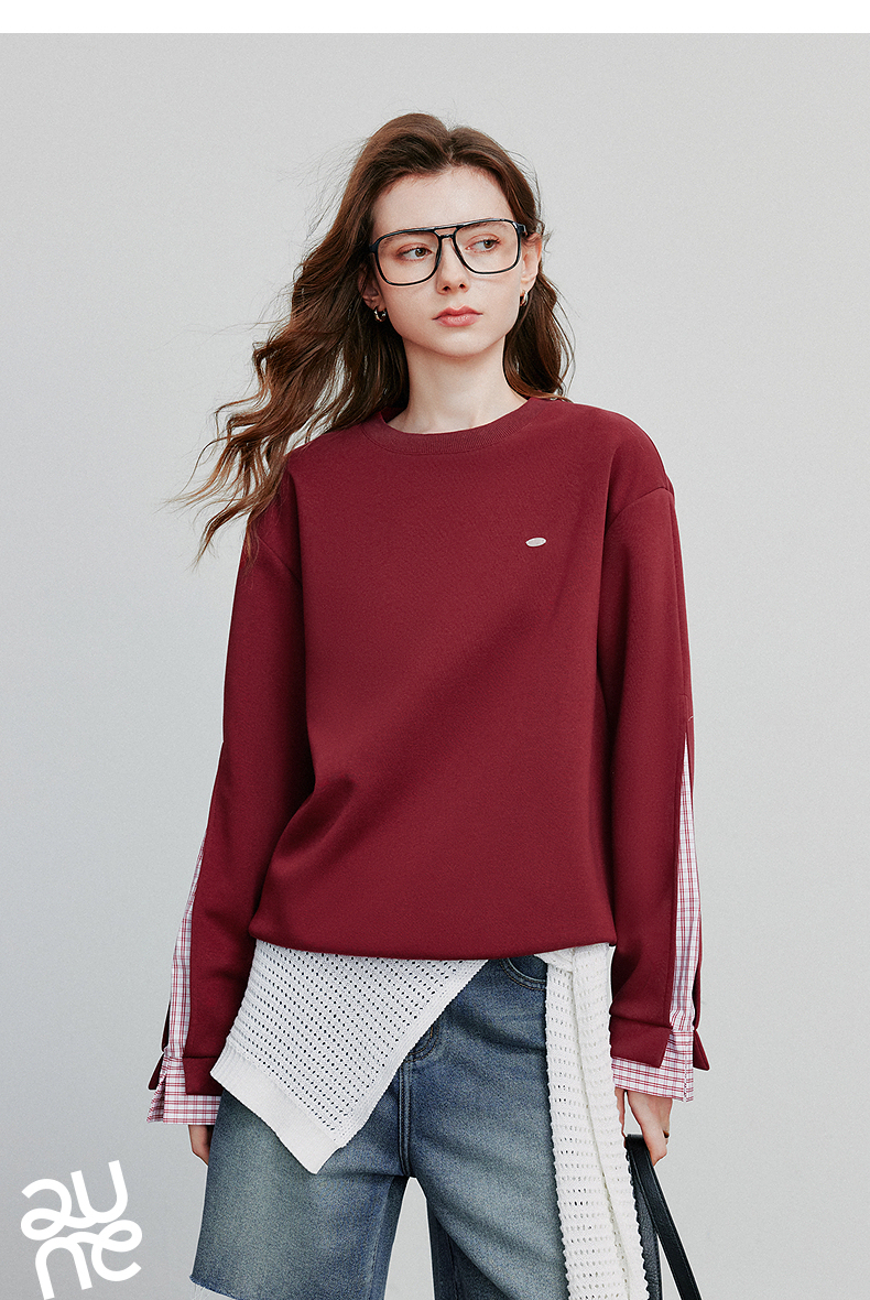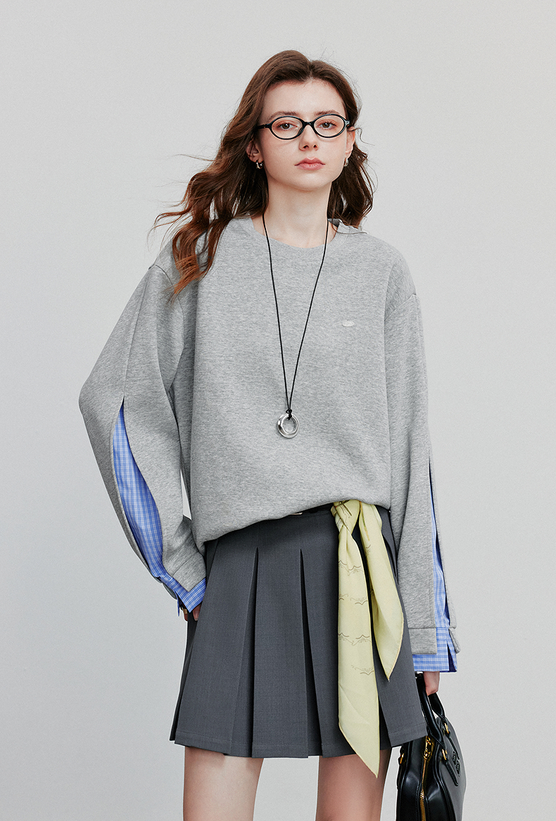 初语 拼接设计感卫衣女2025秋冬新款宽松休闲松弛感上衣长袖