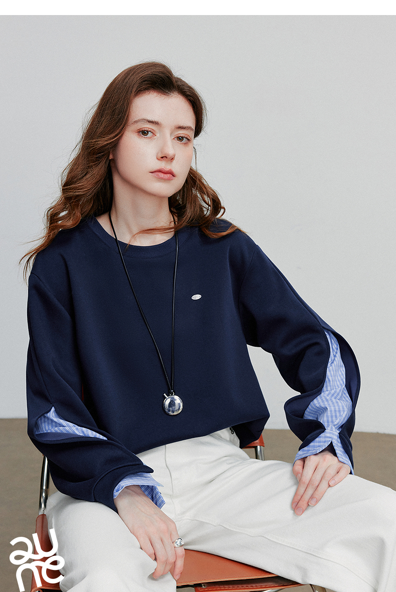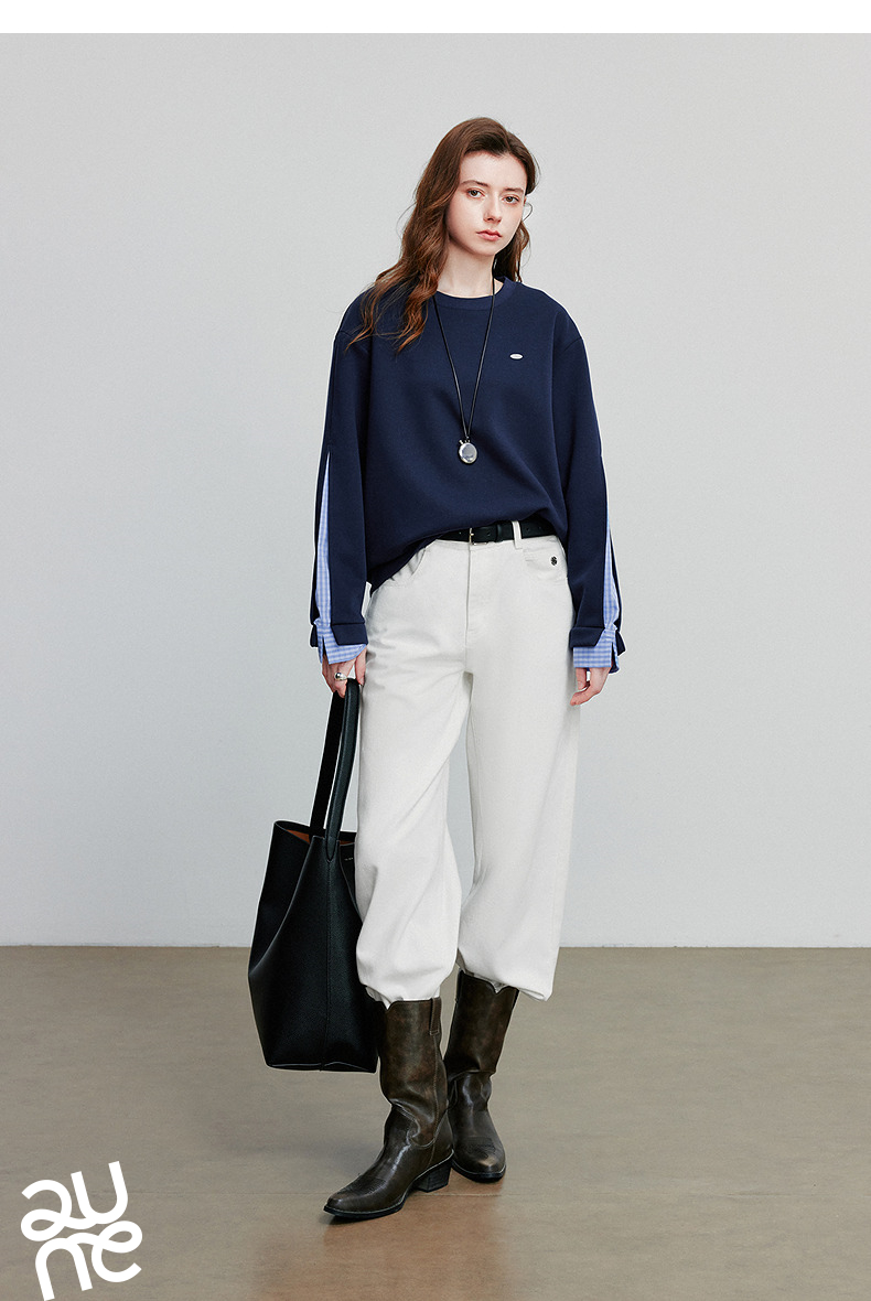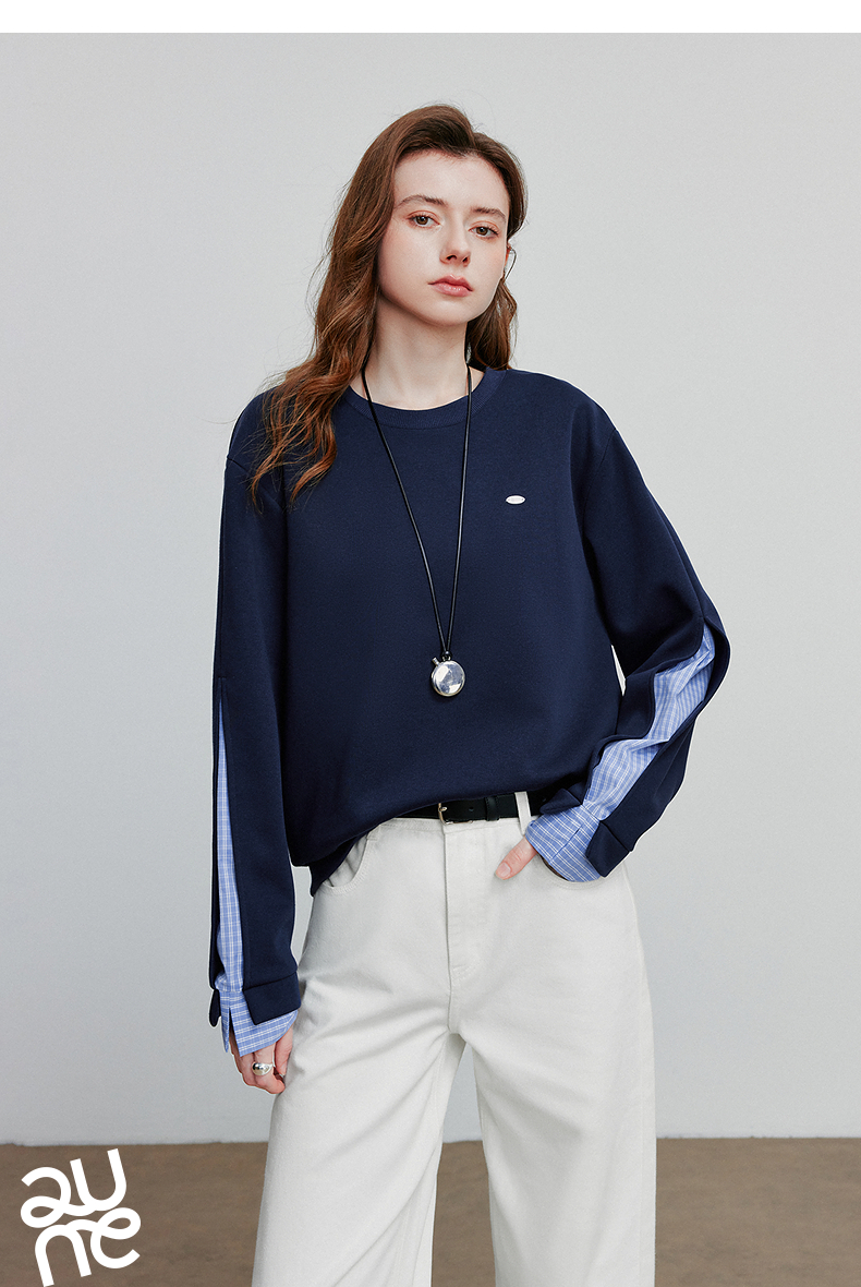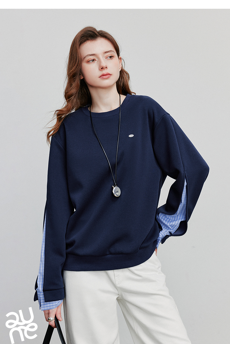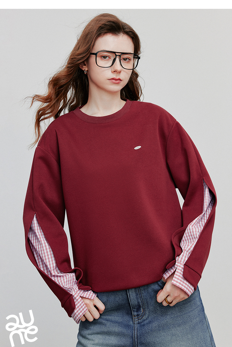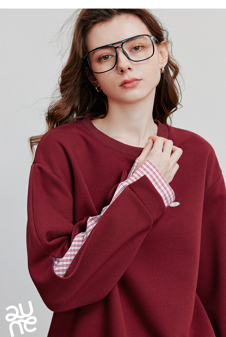 初语 拼接设计感卫衣女2025秋冬新款宽松休闲松弛感上衣长袖