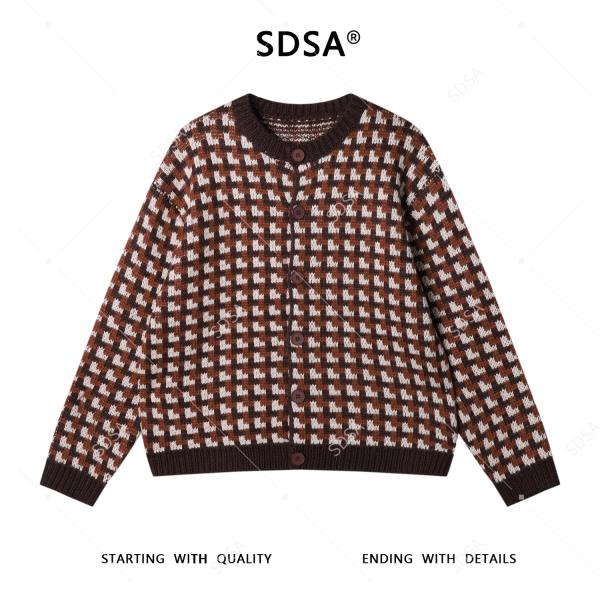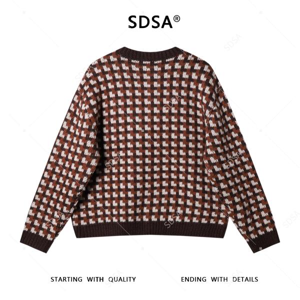 72593SDSA男士秋冬新款痞帅男装时尚撞色方块纽扣圆领针织衫百搭毛衣