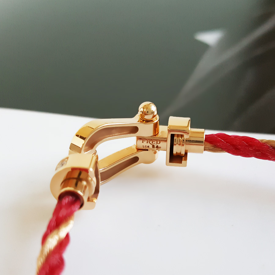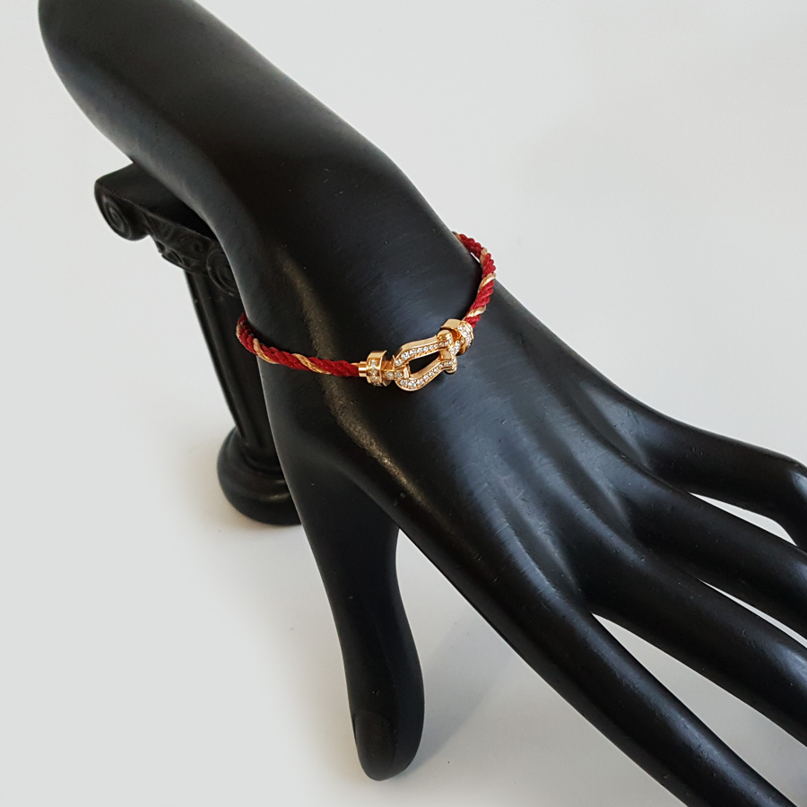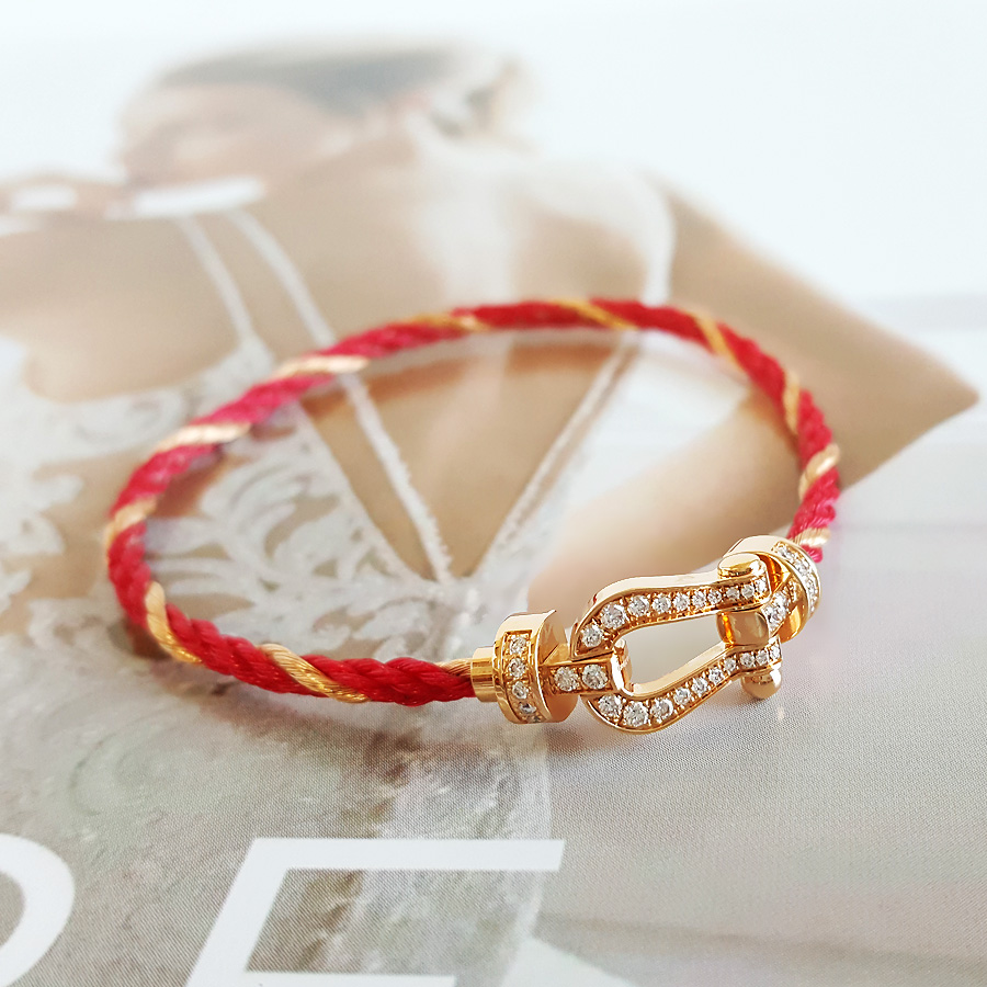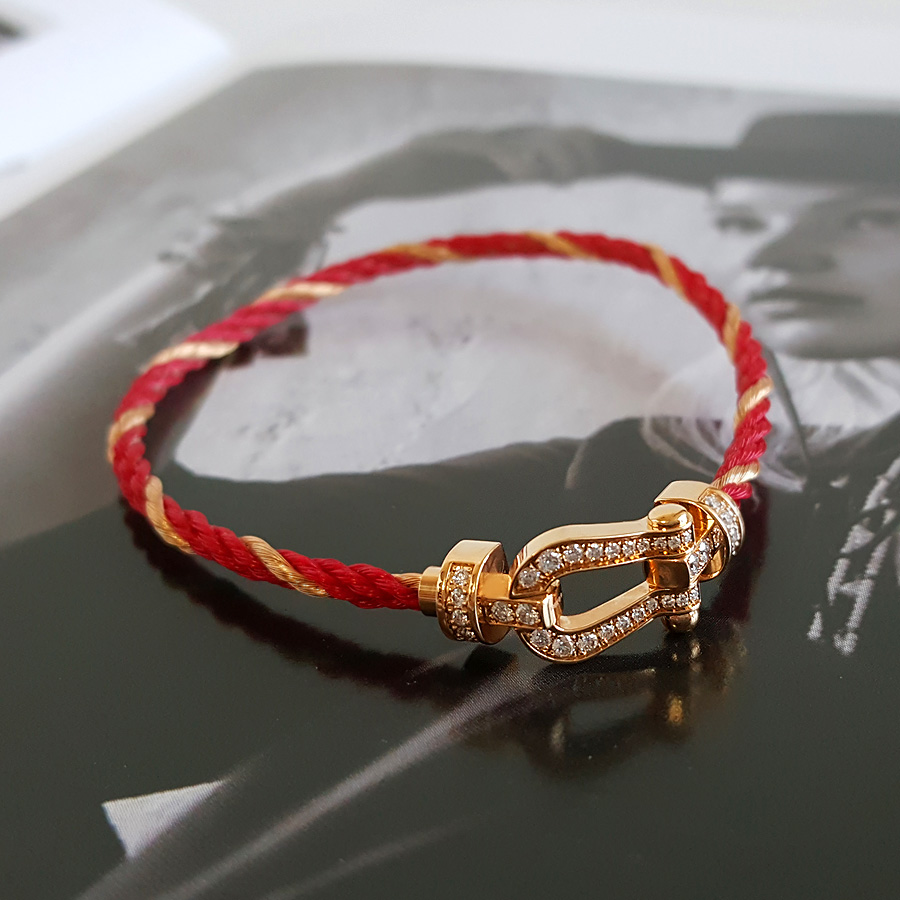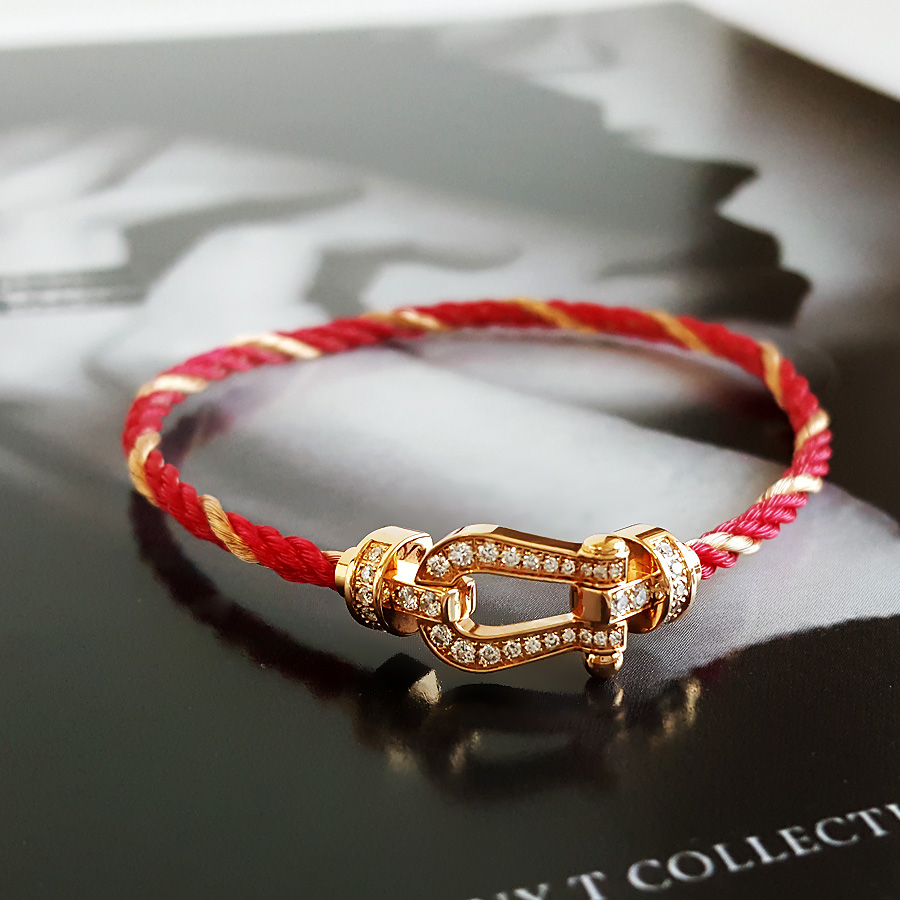 【95新FRED斐登Force 10系列中号玫瑰金满钻force 10马蹄扣手链链扣尺寸约20*10mm。玫瑰金链绳16号中性款 031125TJ22