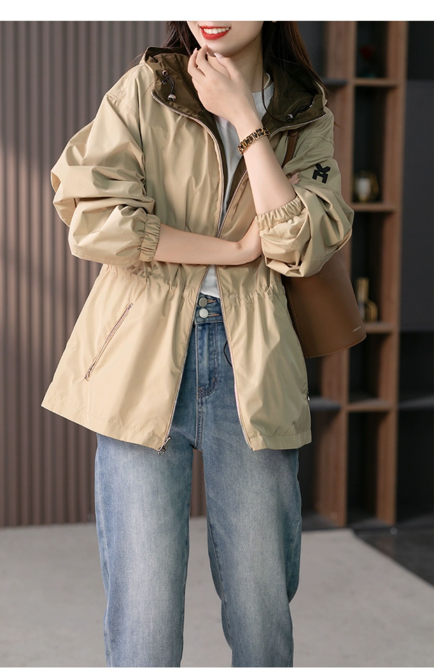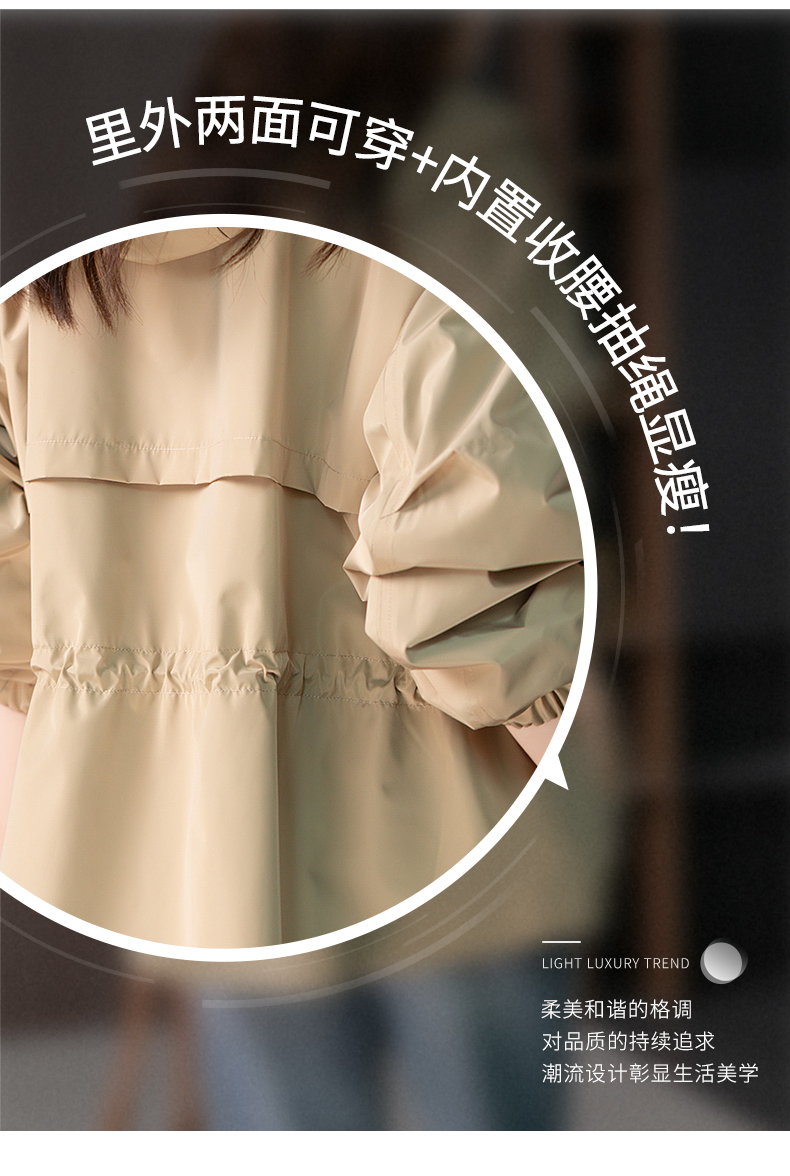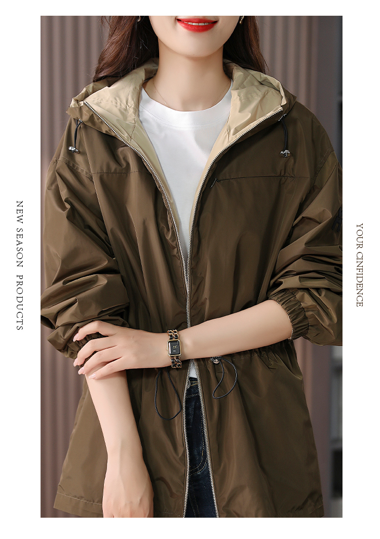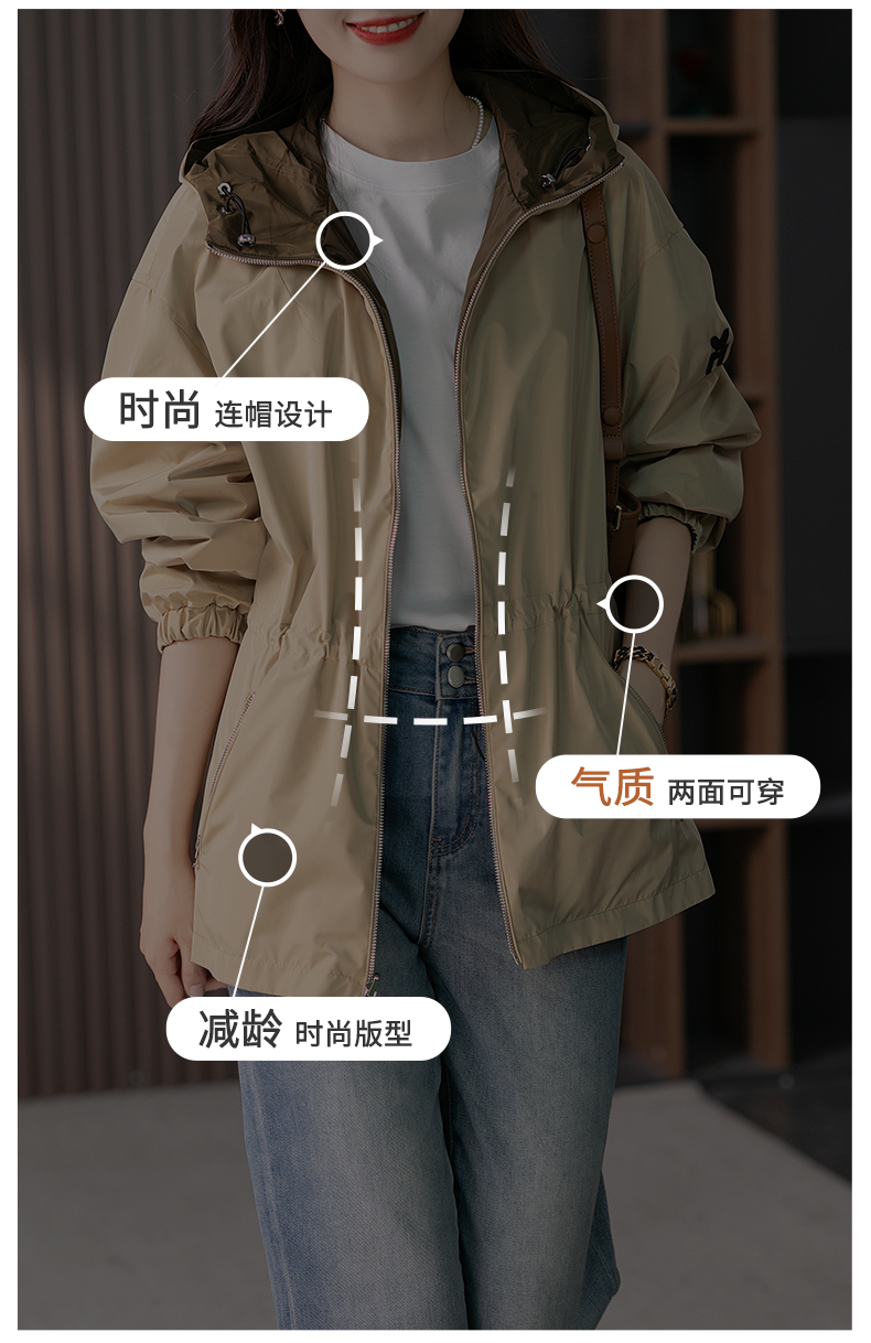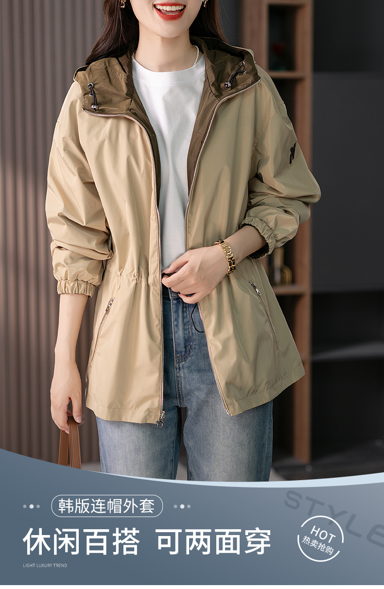 YX【定制18天】设计感两面穿短外套女宽松2023夏季新款韩版收腰显瘦连帽风衣