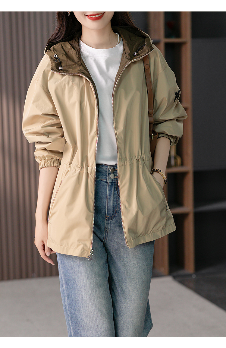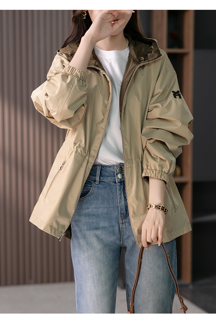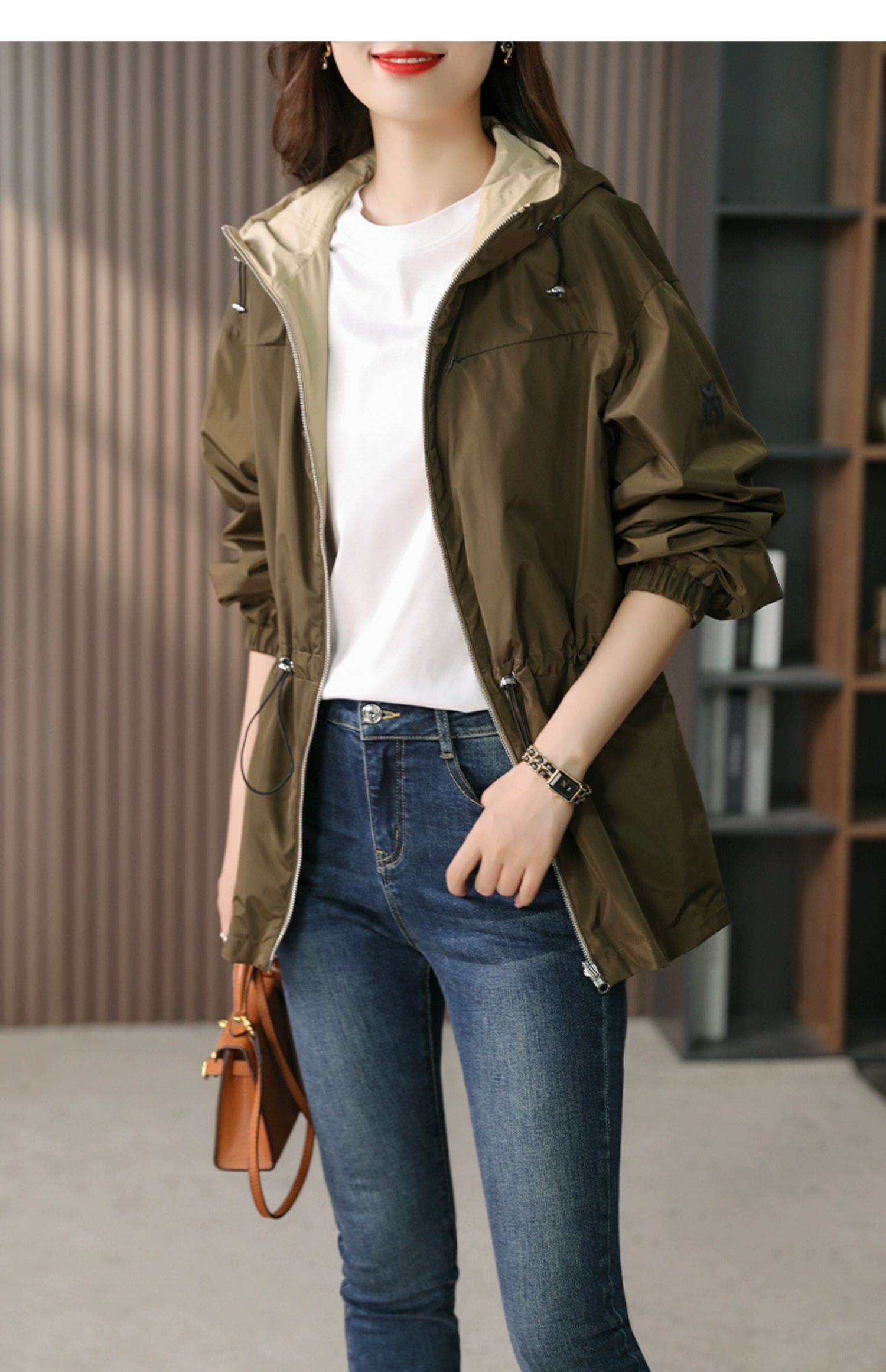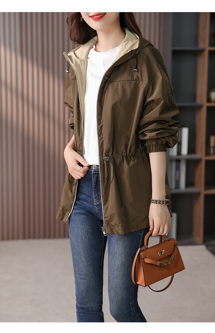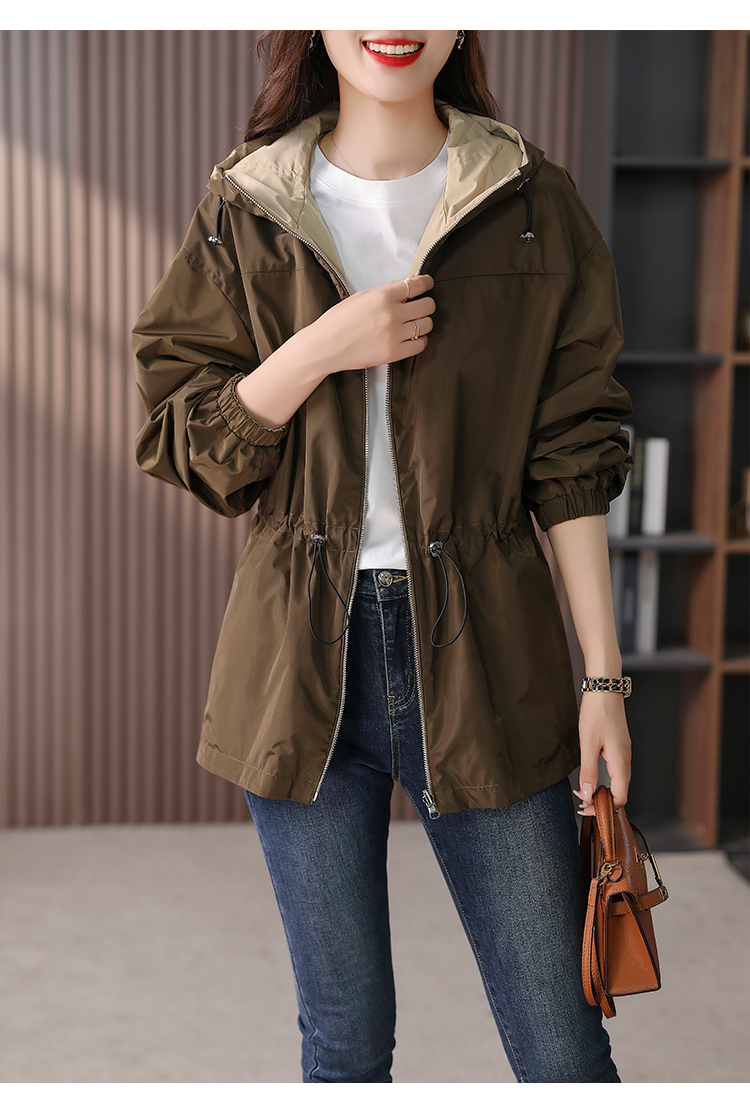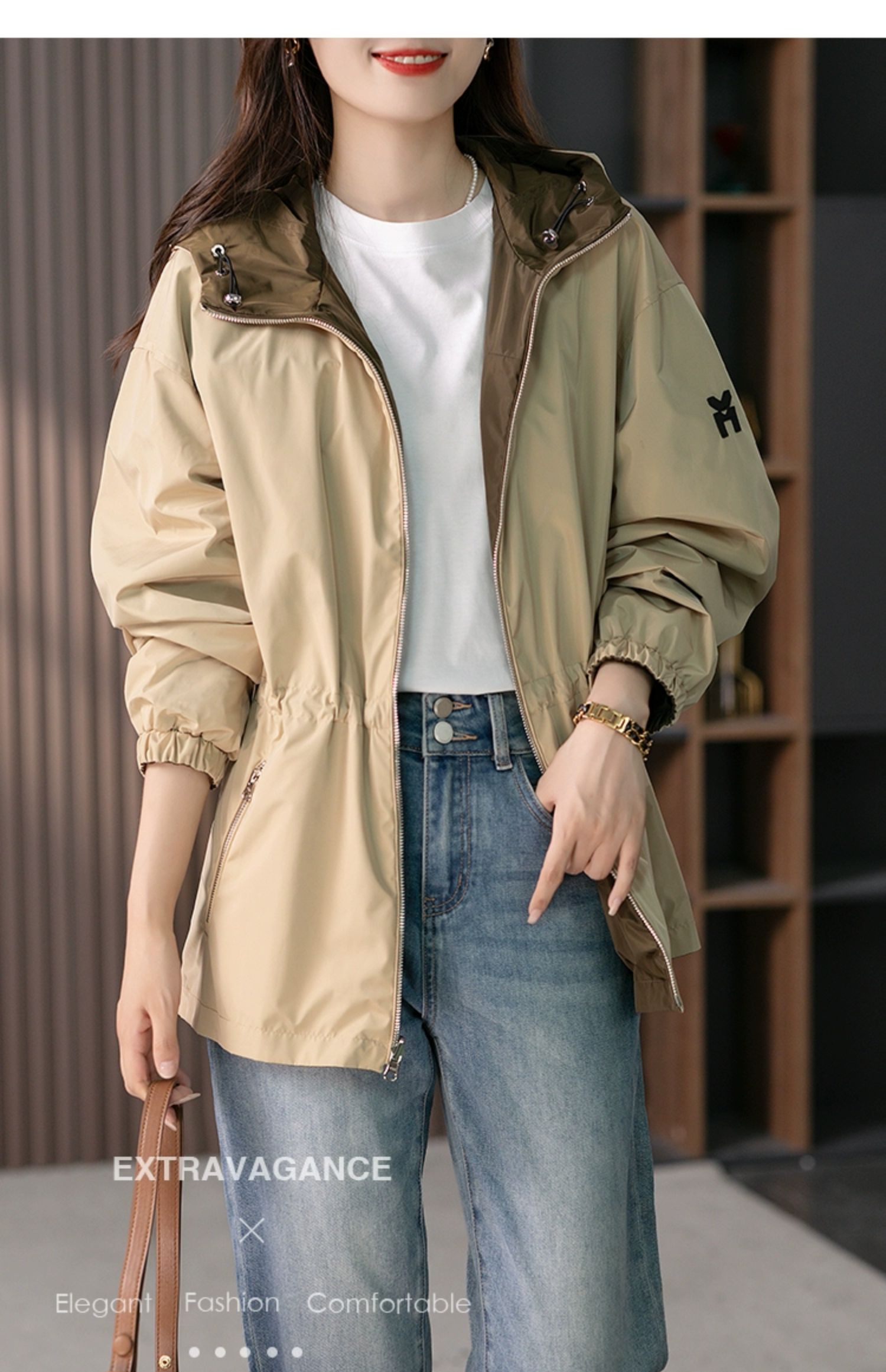 YX【定制18天】设计感两面穿短外套女宽松2023夏季新款韩版收腰显瘦连帽风衣