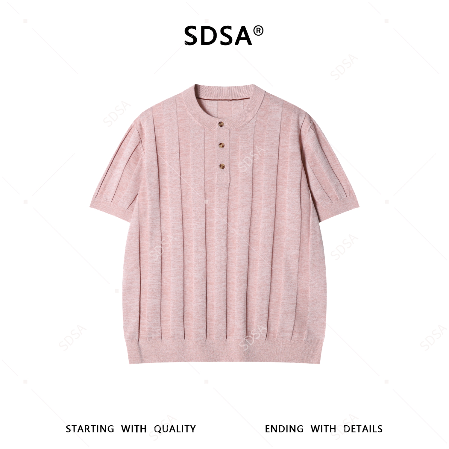 99012SDSA男装2026新款高贵轻奢韩系竖条纹亨利领针织短袖T恤百搭透气