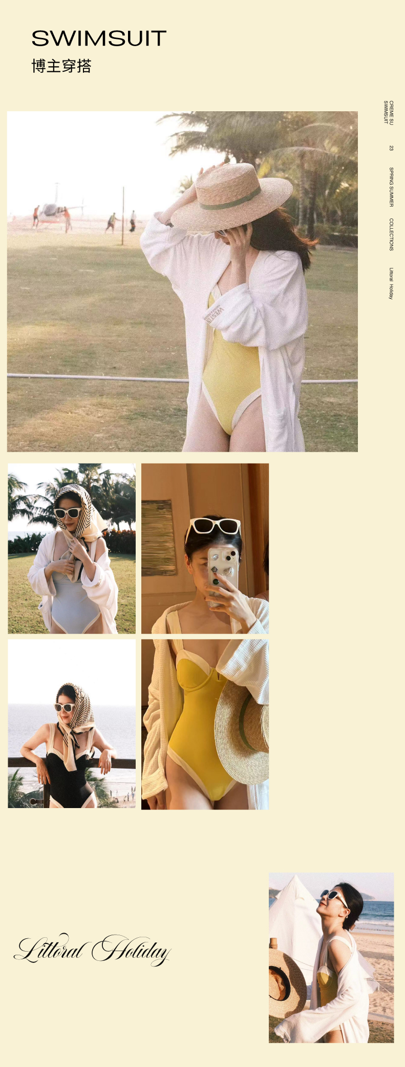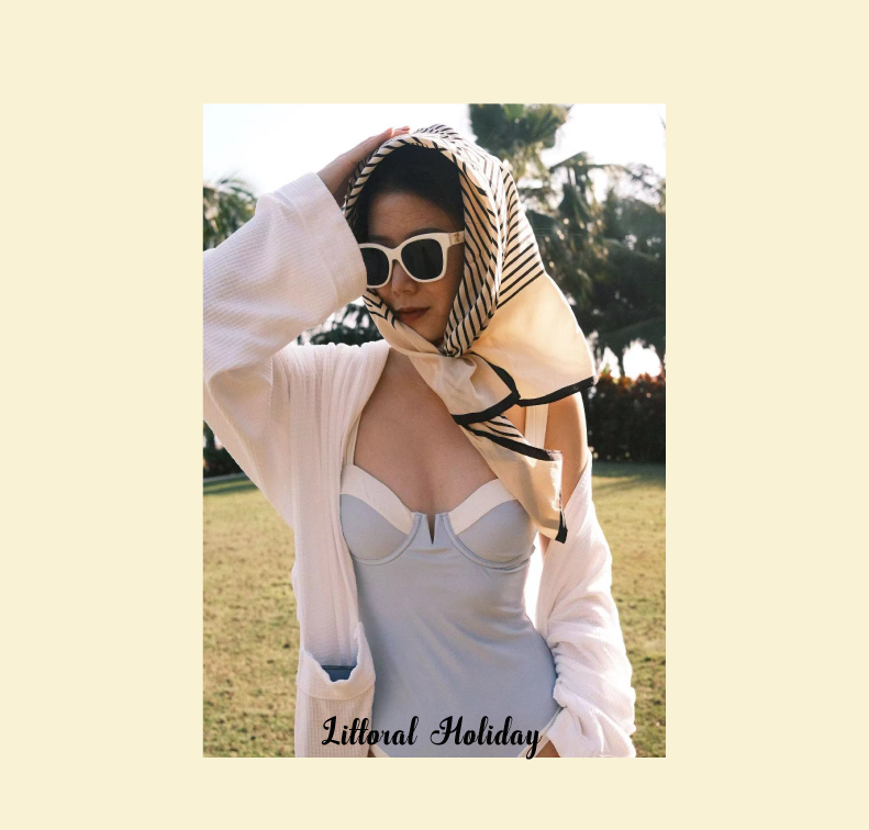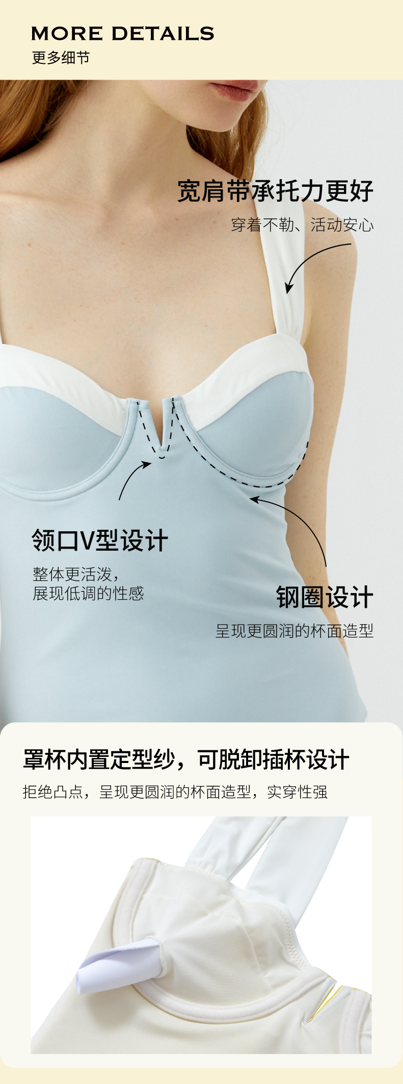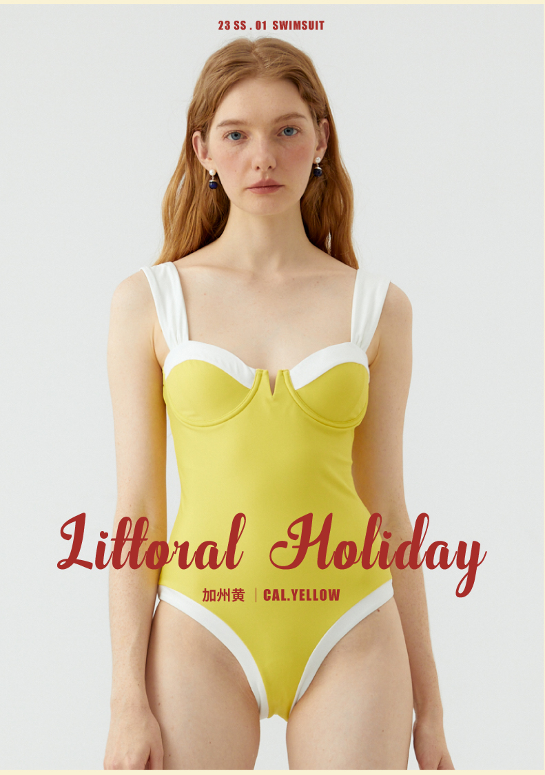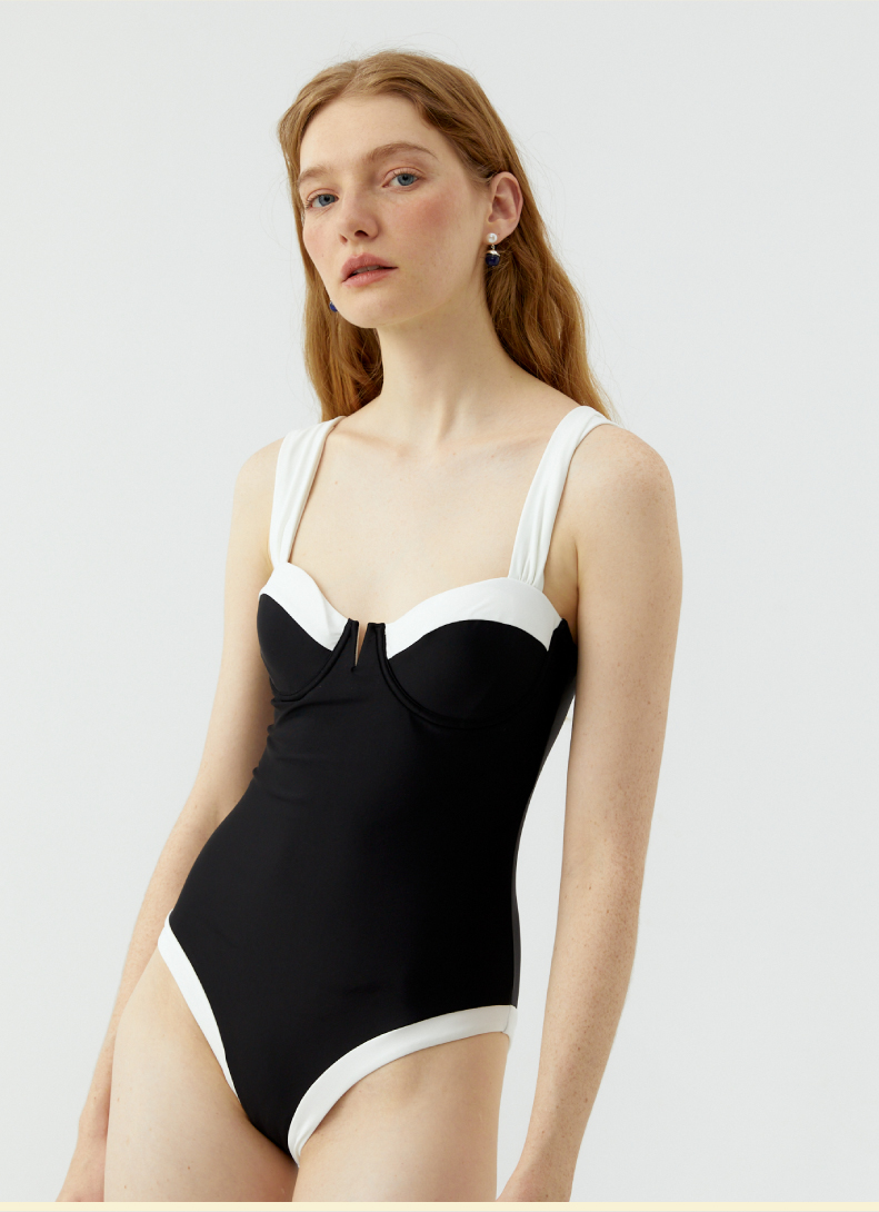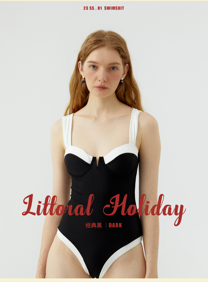 【赫本复古】CremeSu海滨假期系列复古连体泳衣女撞色性感泳衣显瘦温泉